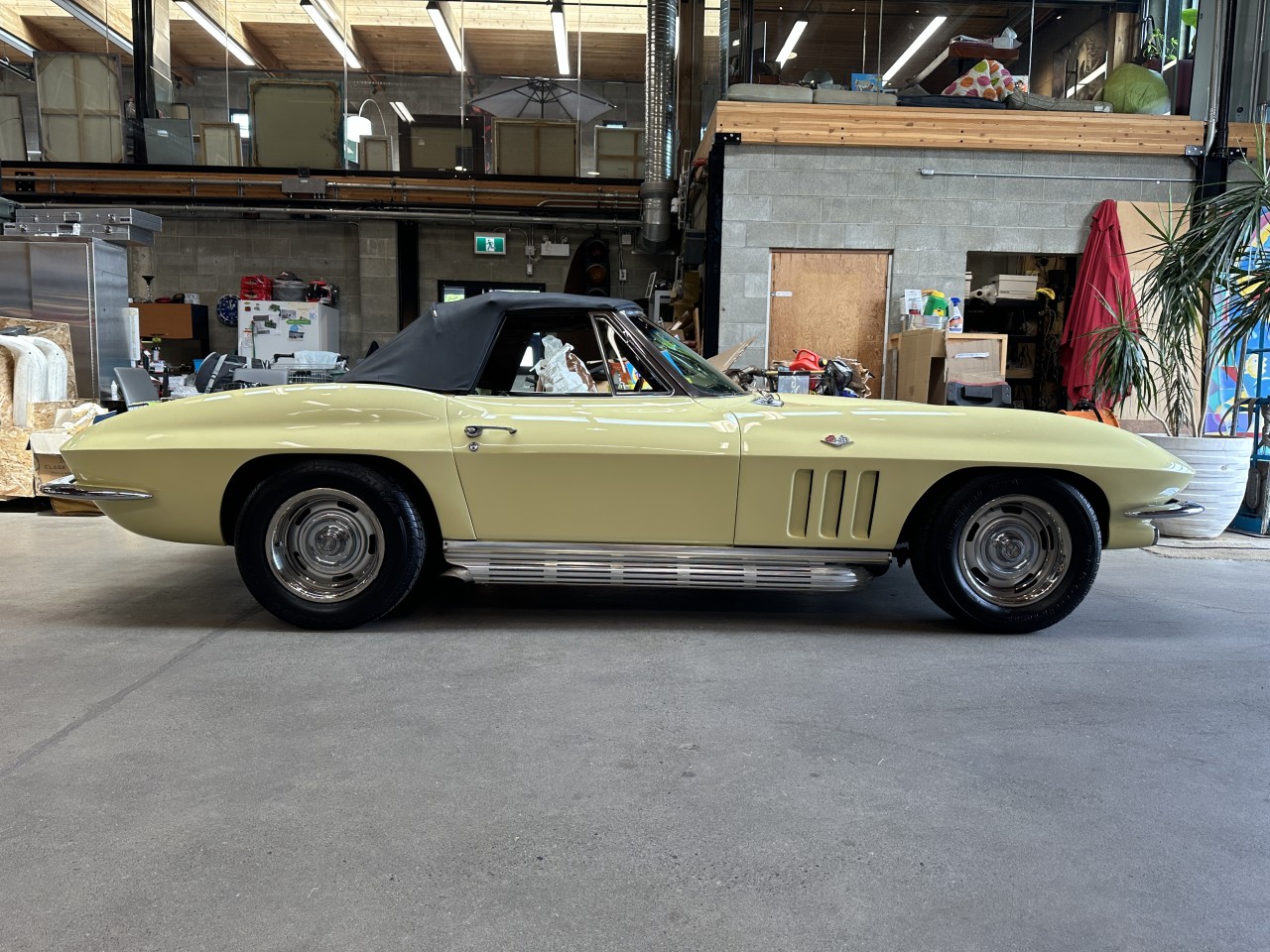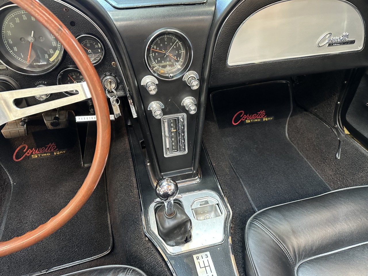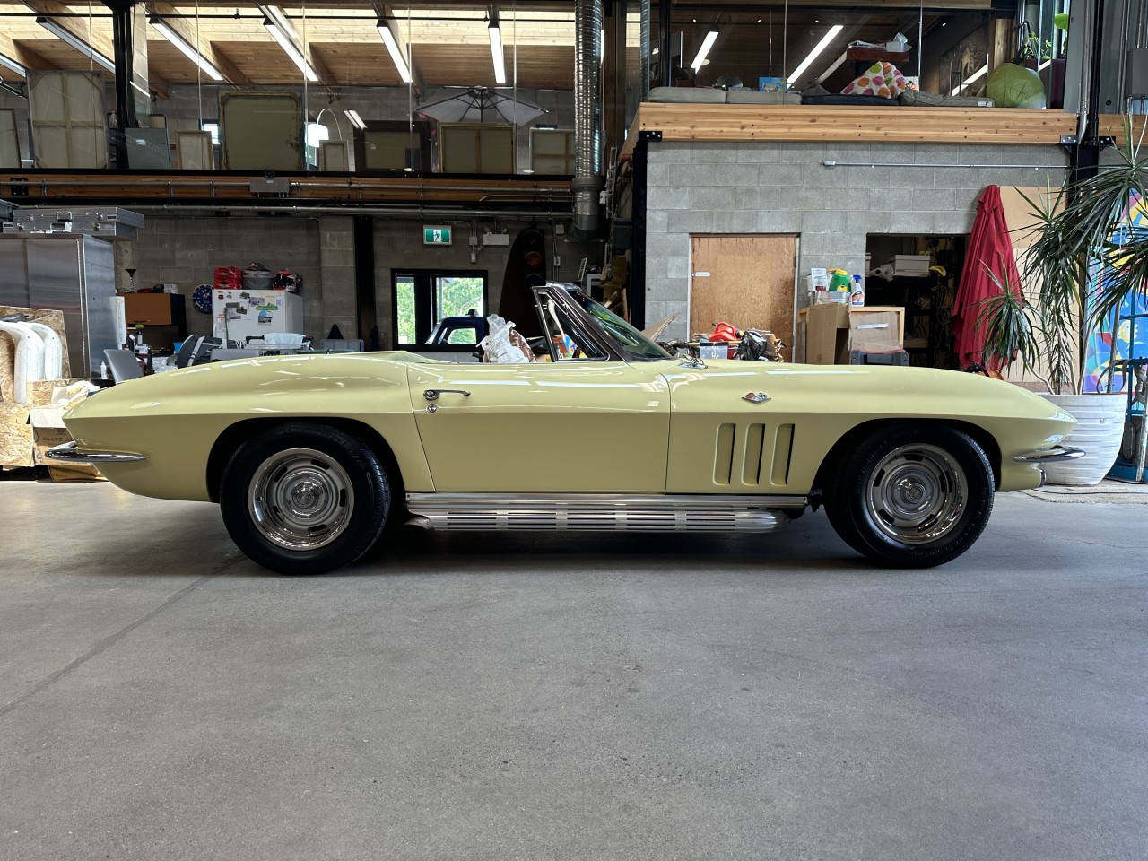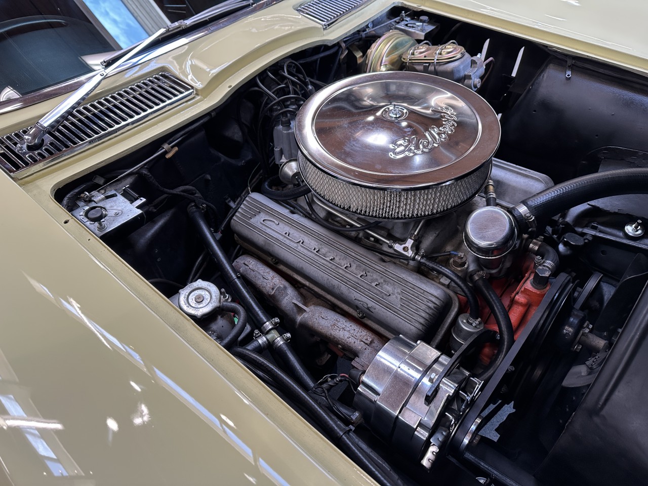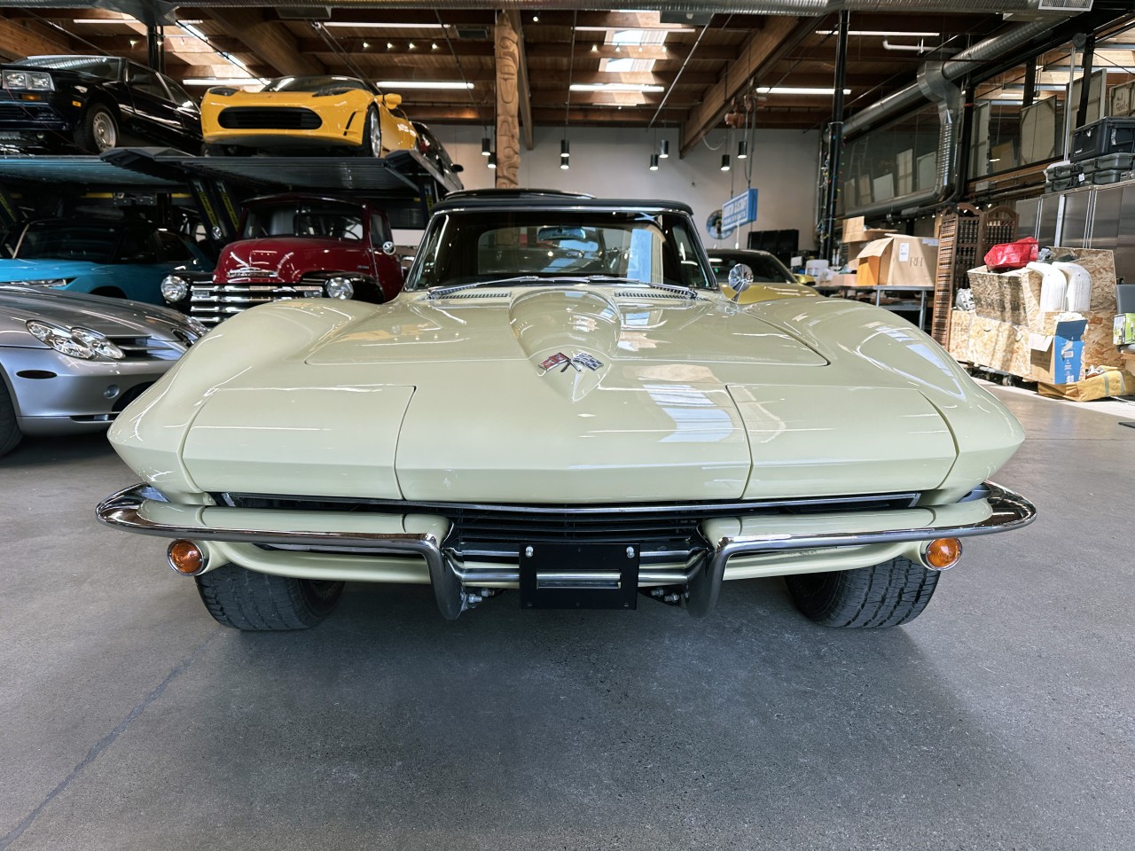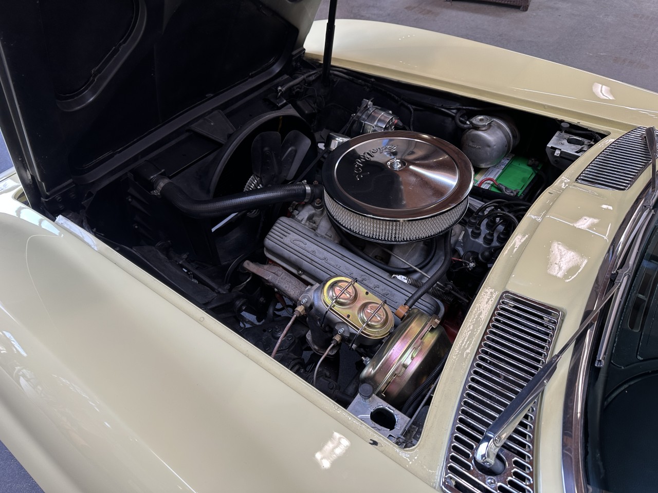 1965 Chevrolet Corvette Convertible 327/365 4-Speed. Numbers matching car. 28,000 Miles, 5 Digit ODO. Well equipped with Black leather seats, Delco AM / FM radio, Three spoke steering wheel, Power windows, Black convertible top, Side mounted exhaust system, Flip up headlights, 15" Rally-style wheels. 327Ci V8 mated to a 4 speed manual transmission rated new at 365hp / 350lb-ft. Well maintained and just serviced. Leasing and financing available. All trades accepted.