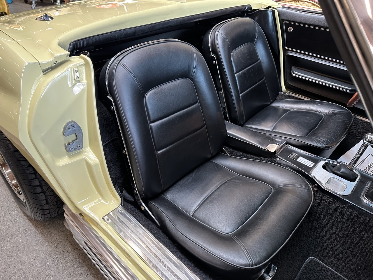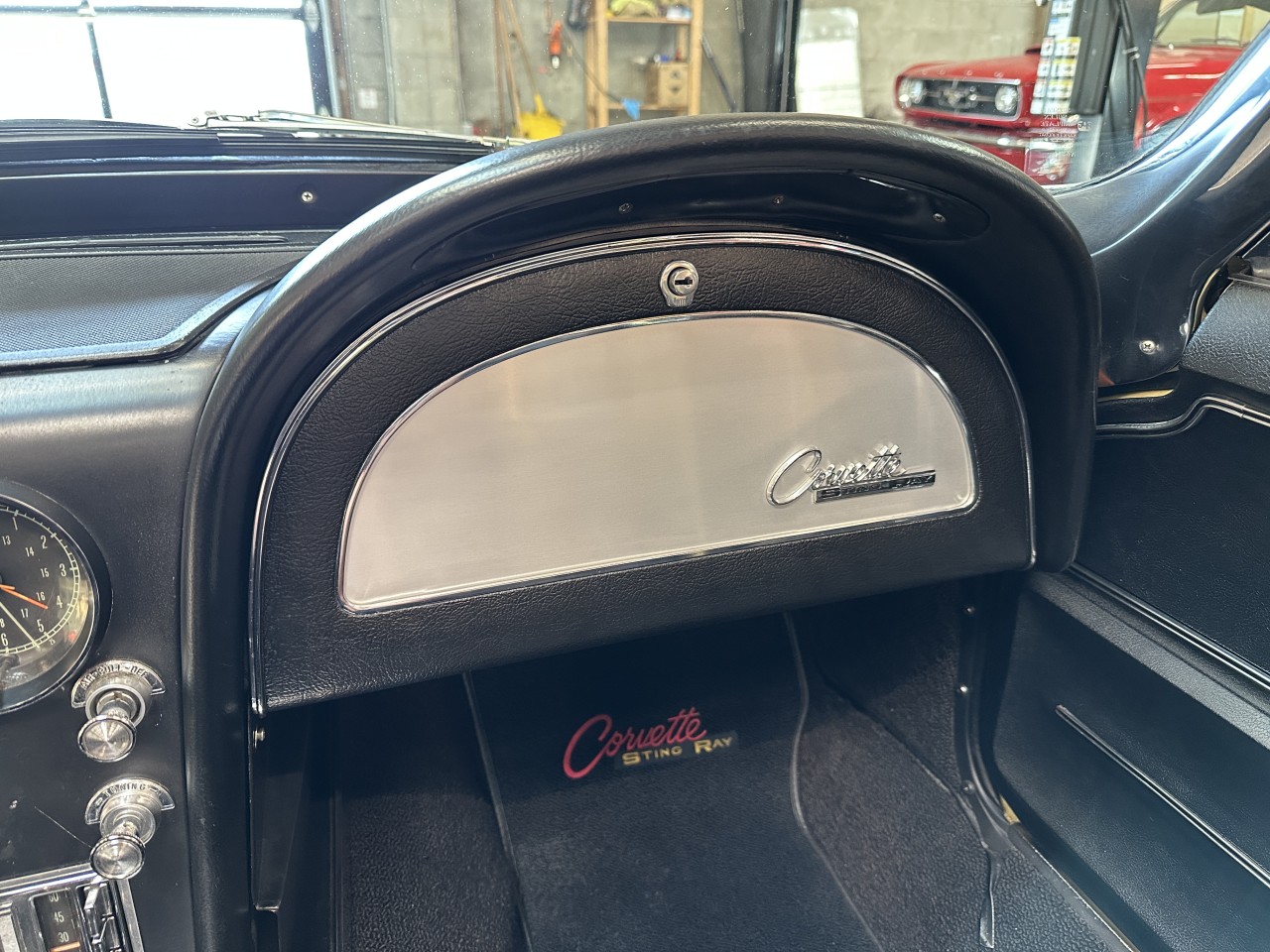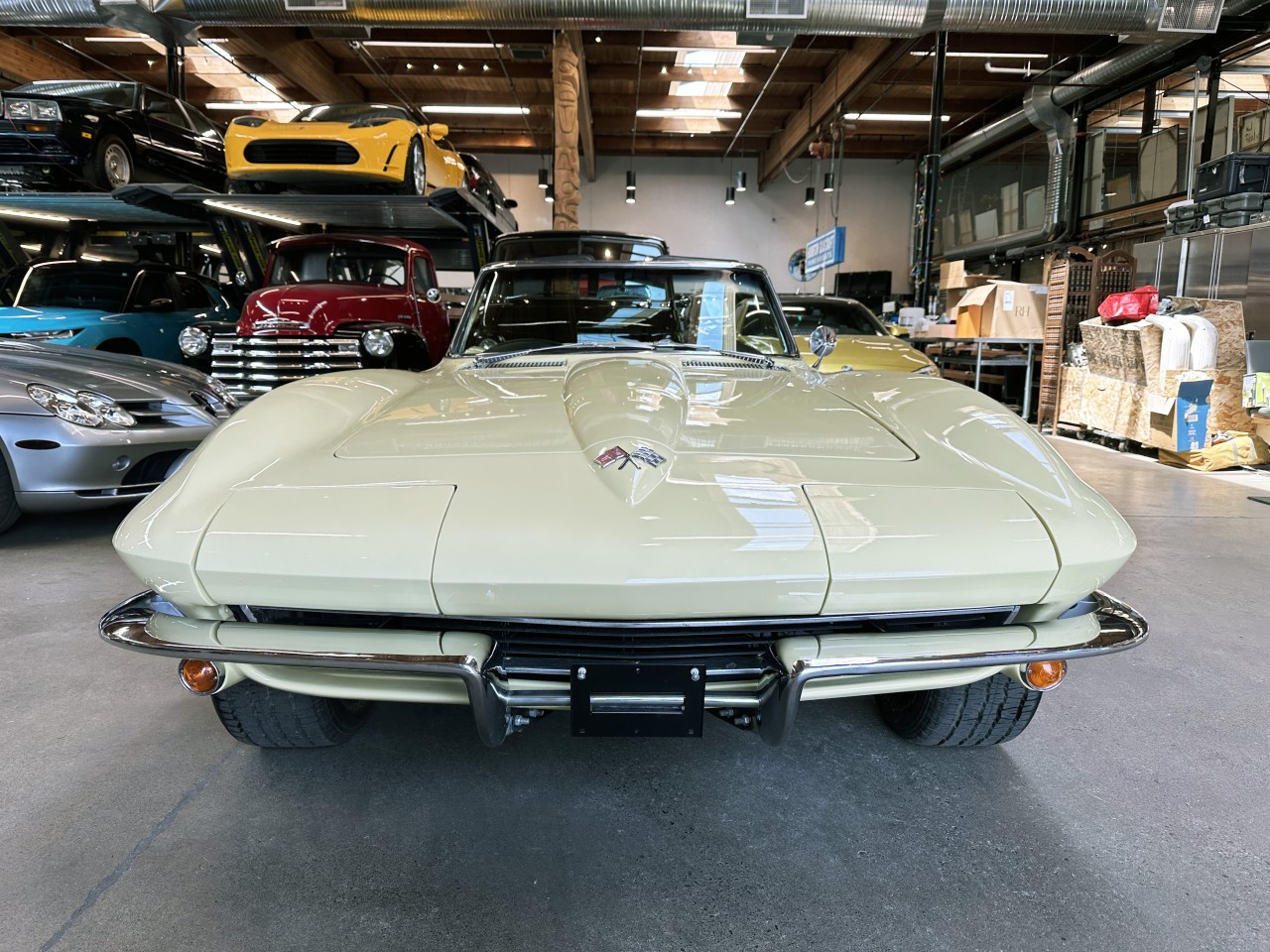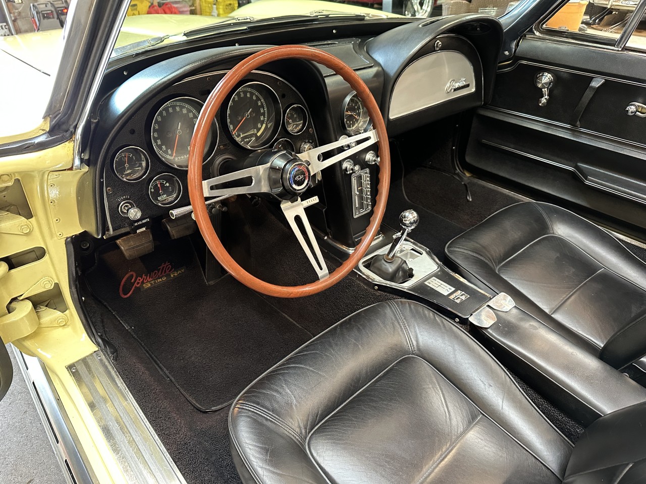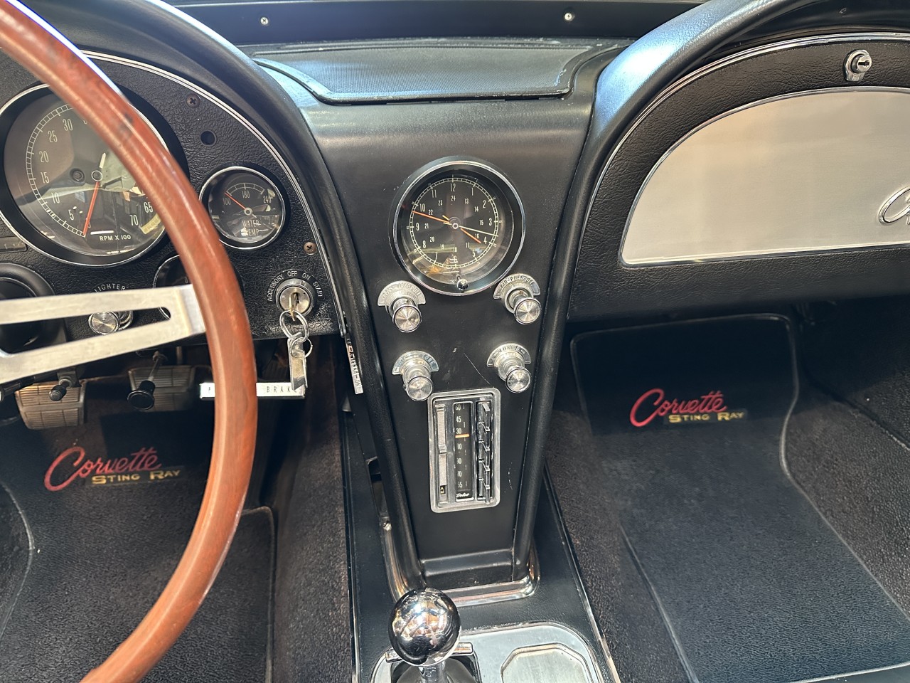 1965 Chevrolet Corvette Convertible 327/365 4-Speed. Numbers matching car. 28,000 Miles, 5 Digit ODO. Well equipped with Black leather seats, Delco AM / FM radio, Three spoke steering wheel, Power windows, Black convertible top, Side mounted exhaust system, Flip up headlights, 15" Rally-style wheels. 327Ci V8 mated to a 4 speed manual transmission rated new at 365hp / 350lb-ft. Well maintained and just serviced. Leasing and financing available. All trades accepted.