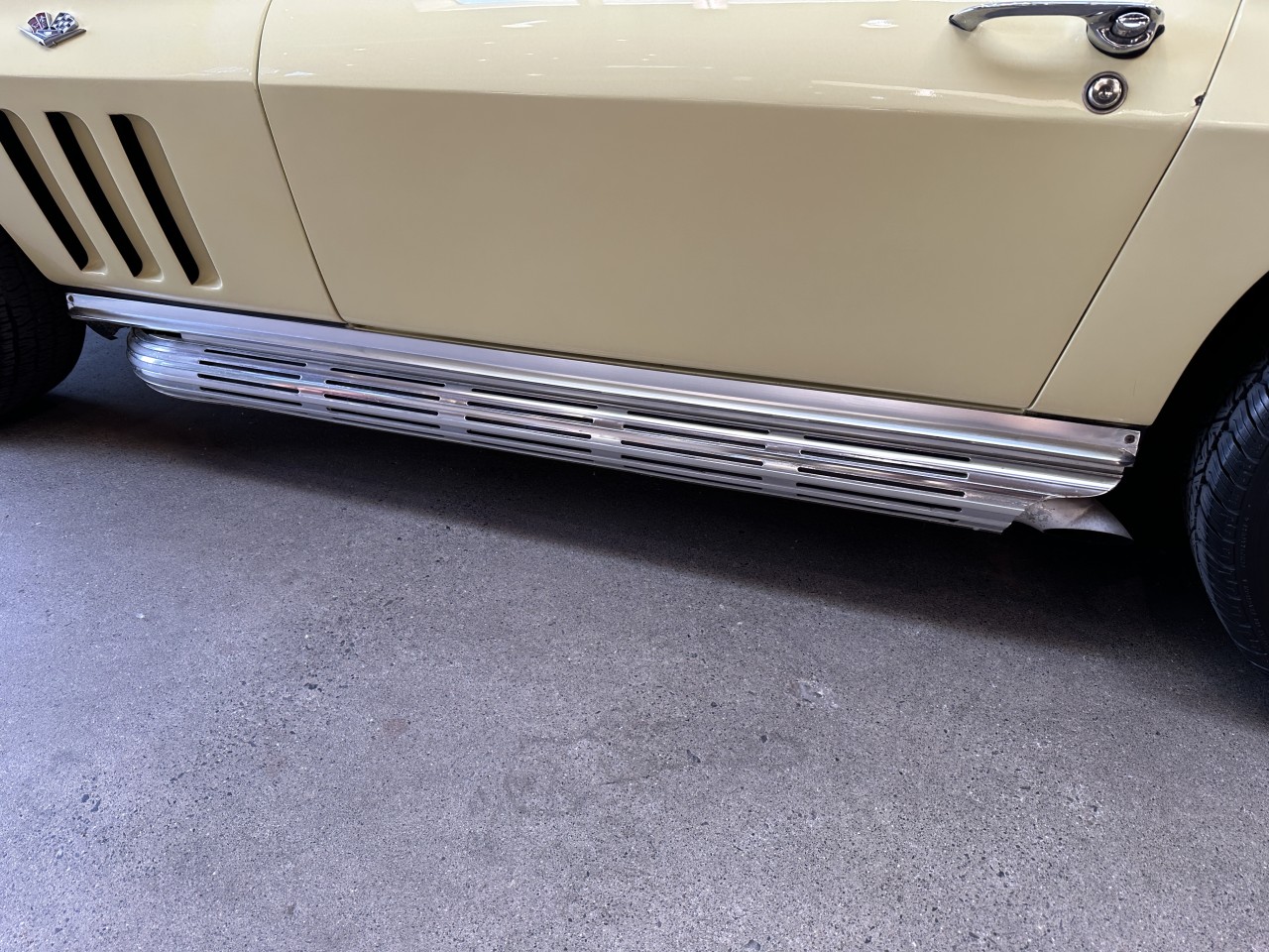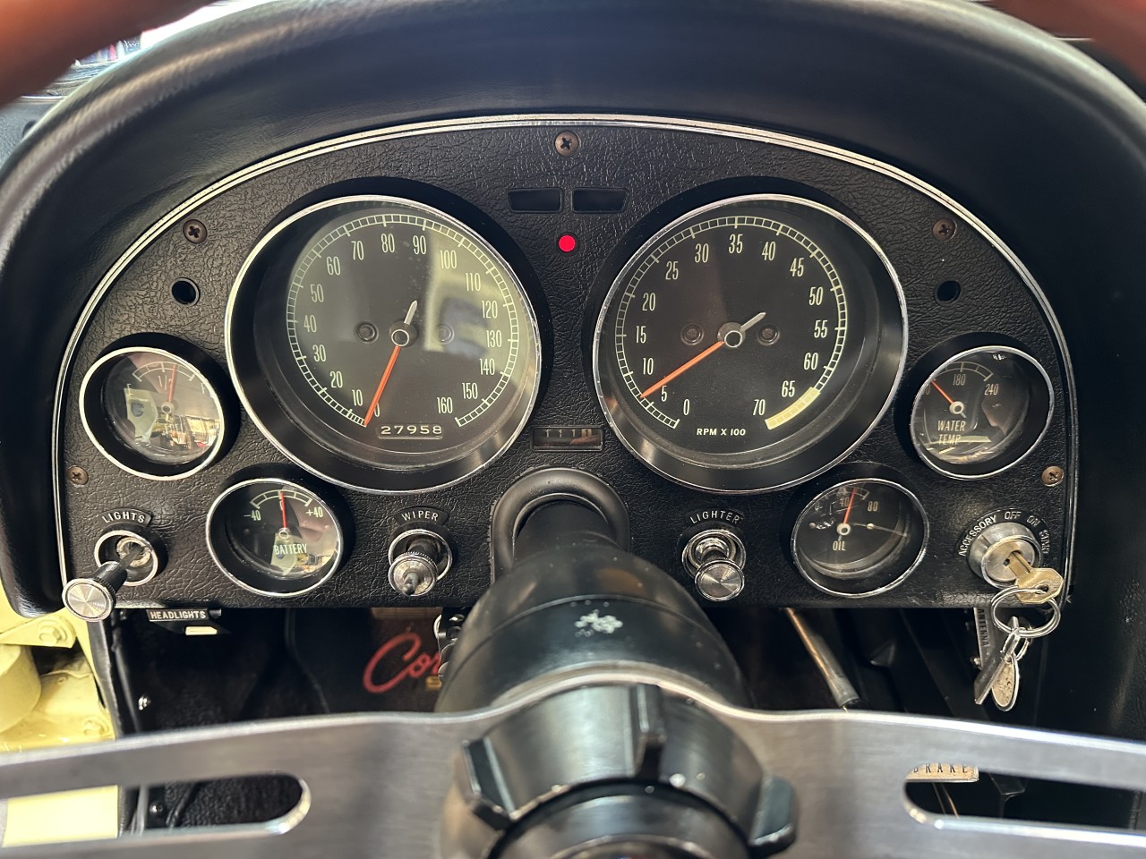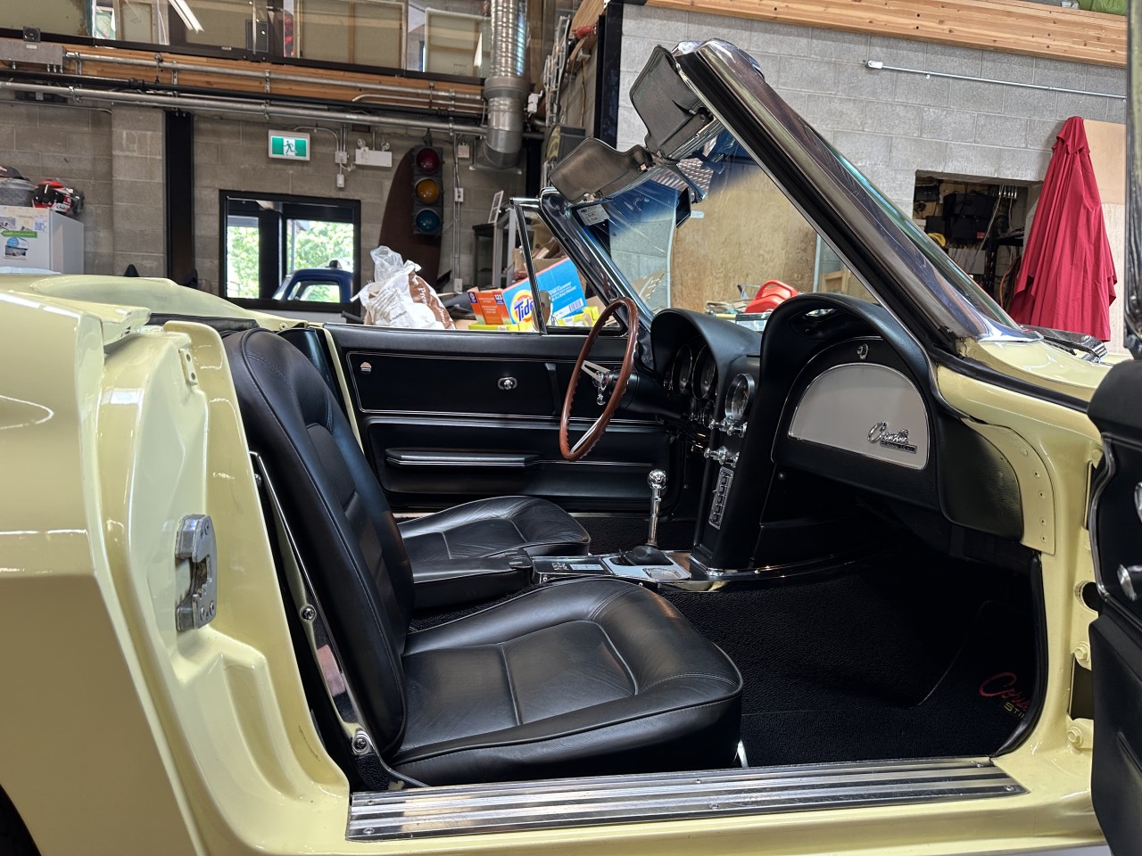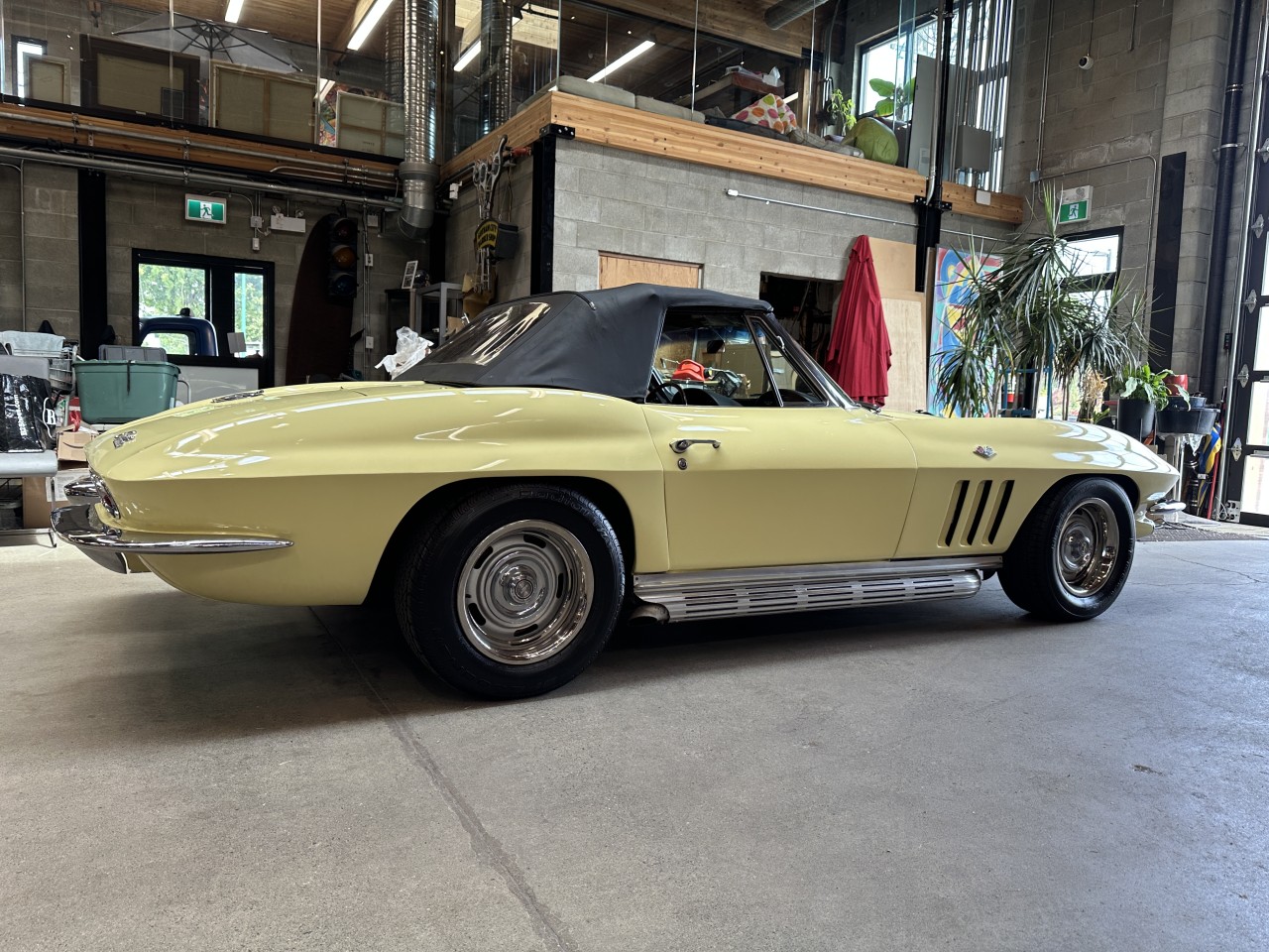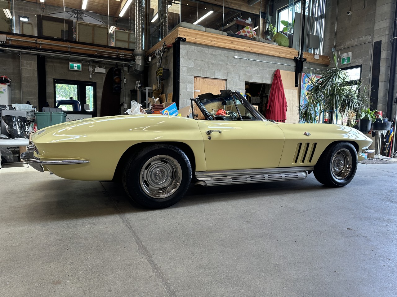 1965 Chevrolet Corvette Convertible 327/365 4-Speed. Numbers matching car. 28,000 Miles, 5 Digit ODO. Well equipped with Black leather seats, Delco AM / FM radio, Three spoke steering wheel, Power windows, Black convertible top, Side mounted exhaust system, Flip up headlights, 15" Rally-style wheels. 327Ci V8 mated to a 4 speed manual transmission rated new at 365hp / 350lb-ft. Well maintained and just serviced. Leasing and financing available. All trades accepted.