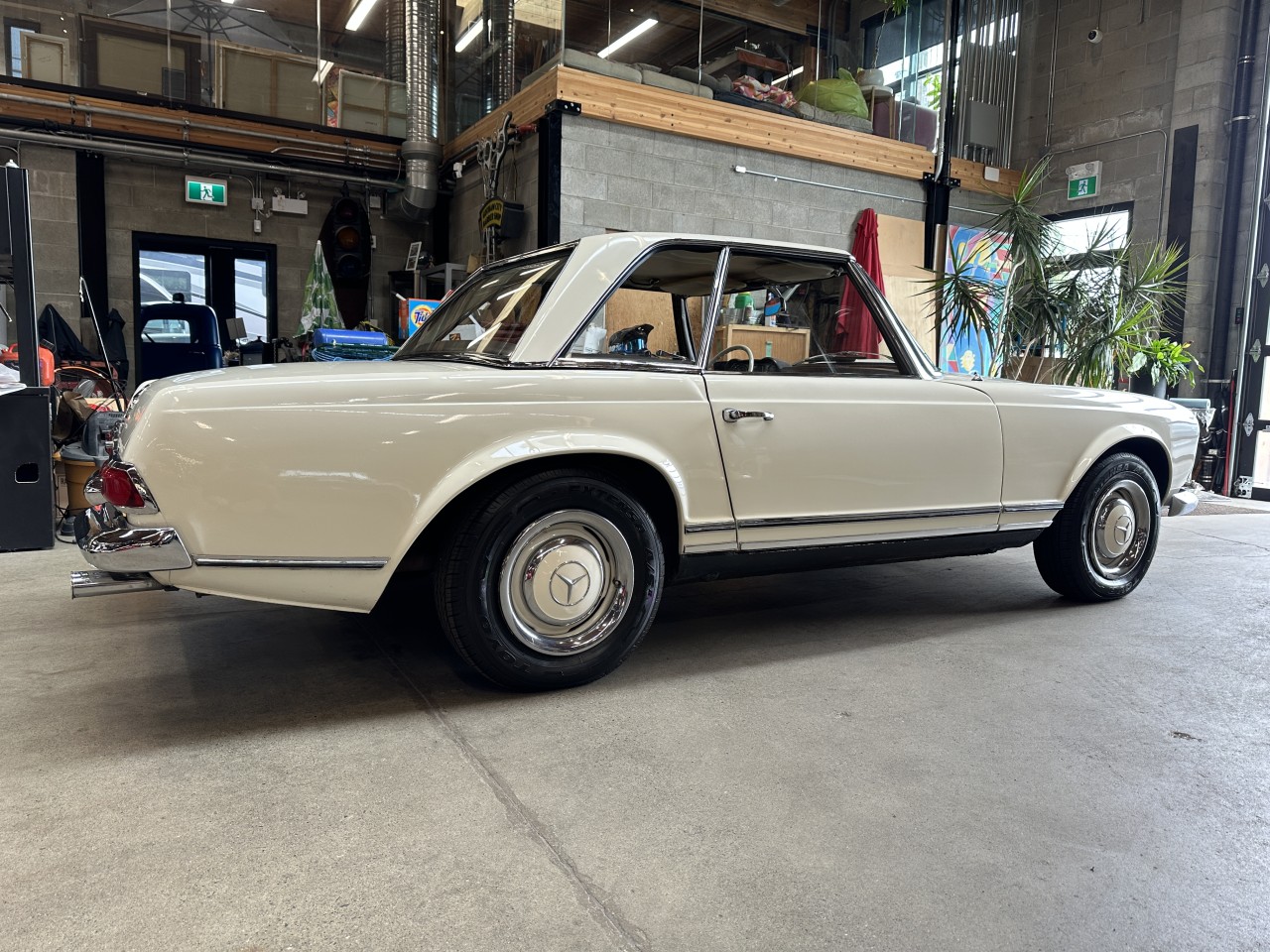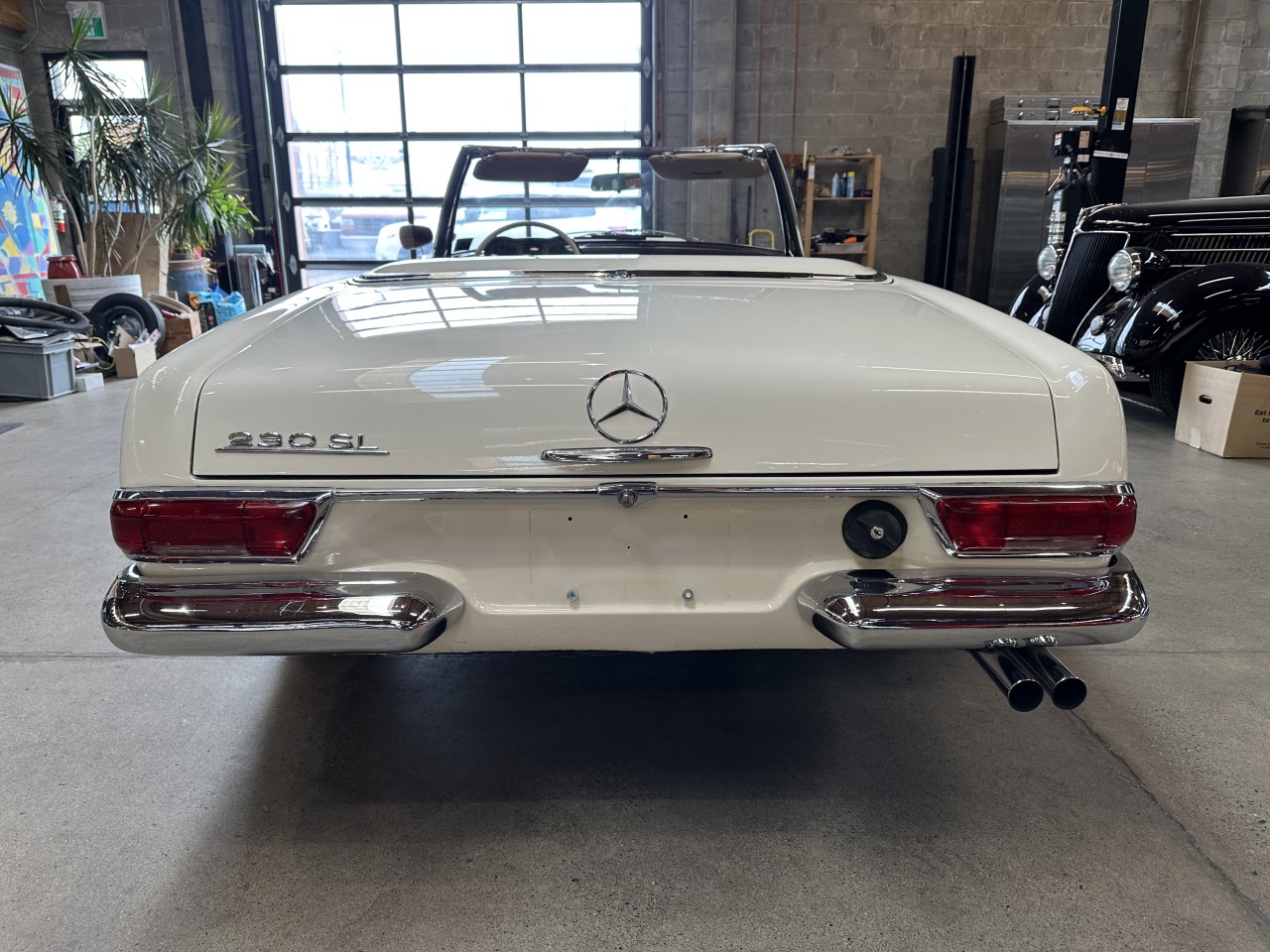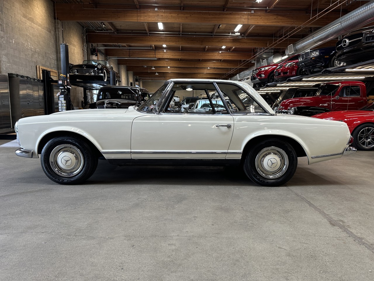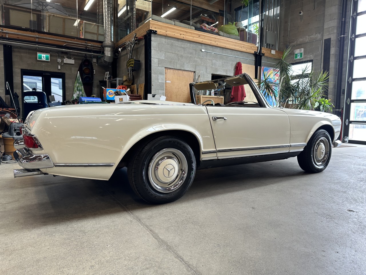 1966 Mercedes-Benz 230SL Roadster. 24,800 Miles (5 Digit ODO). Well equipped with Brown leather seats, Blaupunkt tape deck, Two-spoke white steering wheel, Wood trim, Colour matching Pagoda top, Brown soft top, 14" wheels, Hubcaps with white-finished centers. 2.3L Inline 6 cylinder mated to a 4 speed automatic transmission rated by the factory new at 118hp / 137lb-ft. Well maintained and just serviced. Leasing and financing available. All trades accepted.