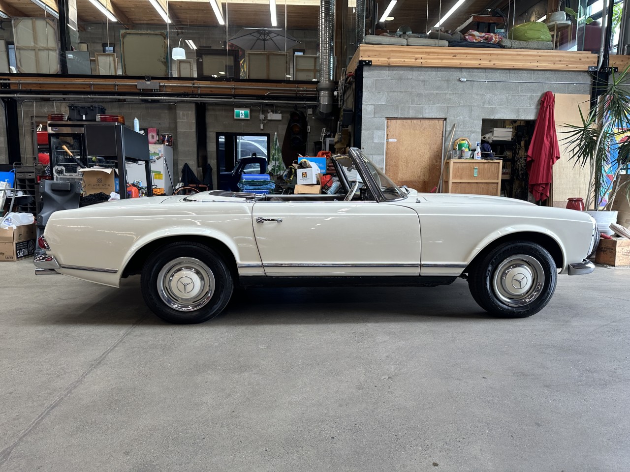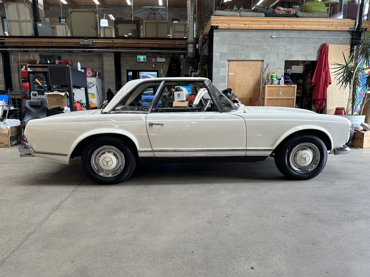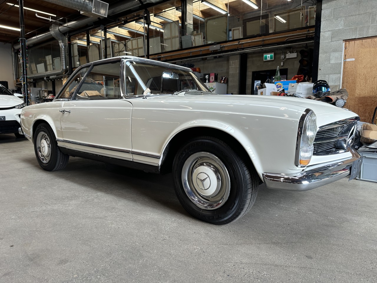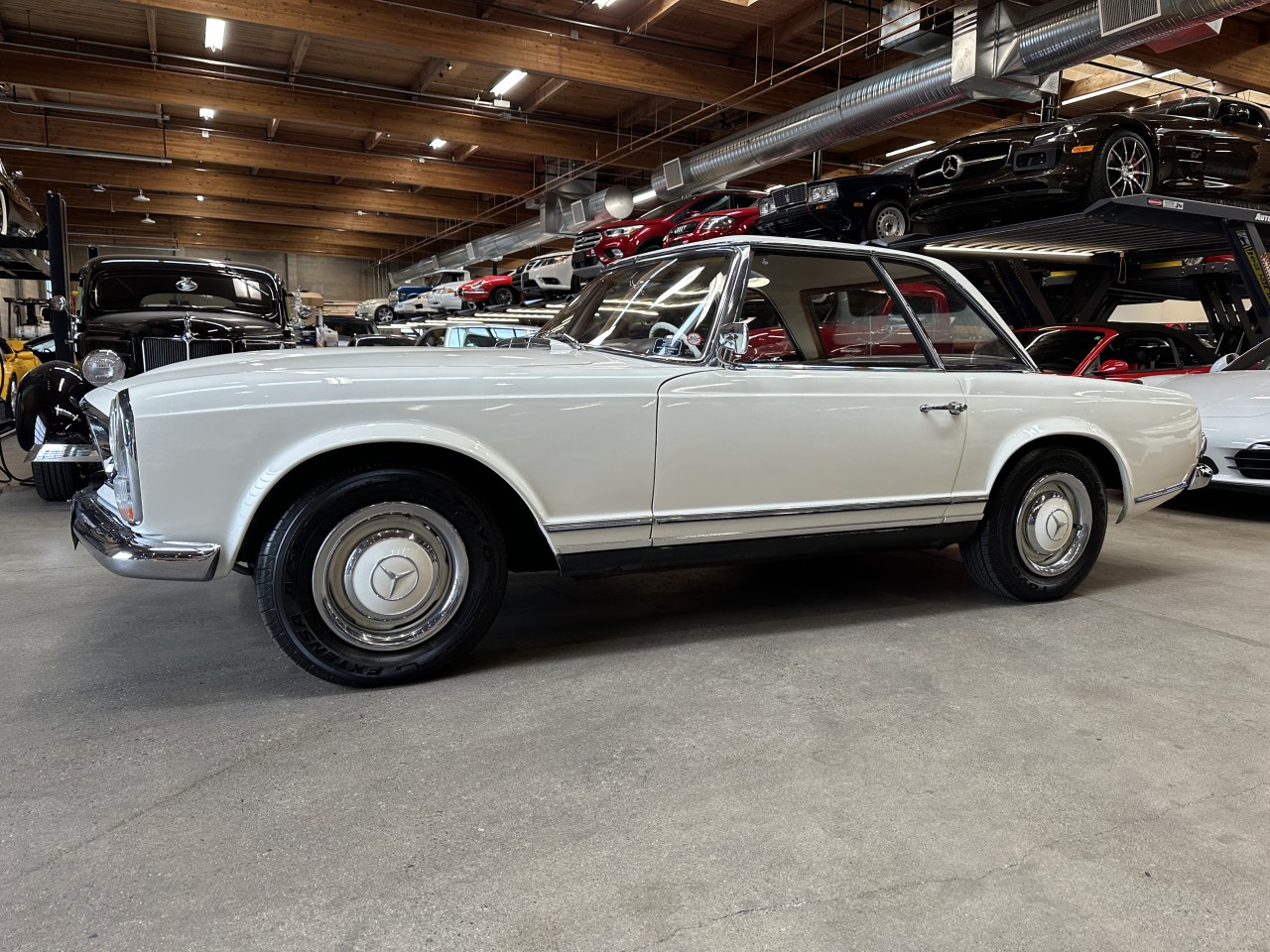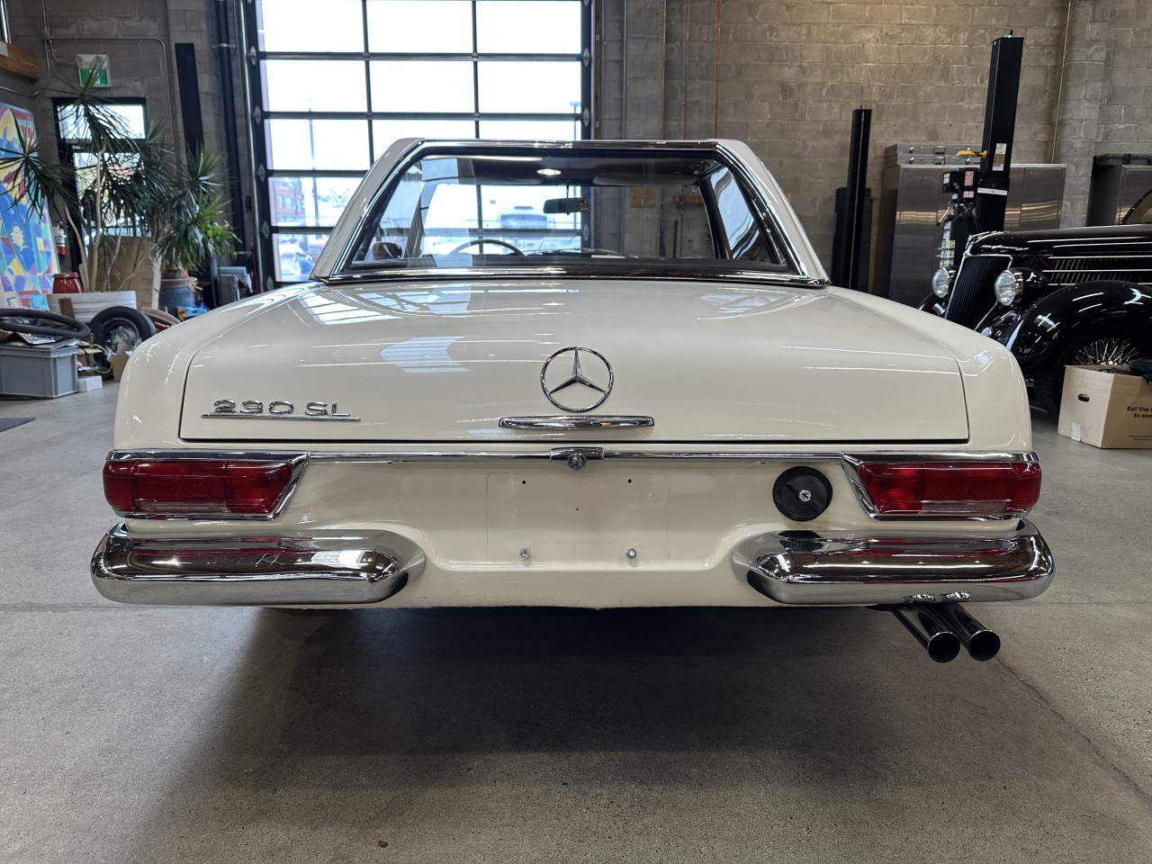 1966 Mercedes-Benz 230SL Roadster. 24,800 Miles (5 Digit ODO). Well equipped with Brown leather seats, Blaupunkt tape deck, Two-spoke white steering wheel, Wood trim, Colour matching Pagoda top, Brown soft top, 14" wheels, Hubcaps with white-finished centers. 2.3L Inline 6 cylinder mated to a 4 speed automatic transmission rated by the factory new at 118hp / 137lb-ft. Well maintained and just serviced. Leasing and financing available. All trades accepted.