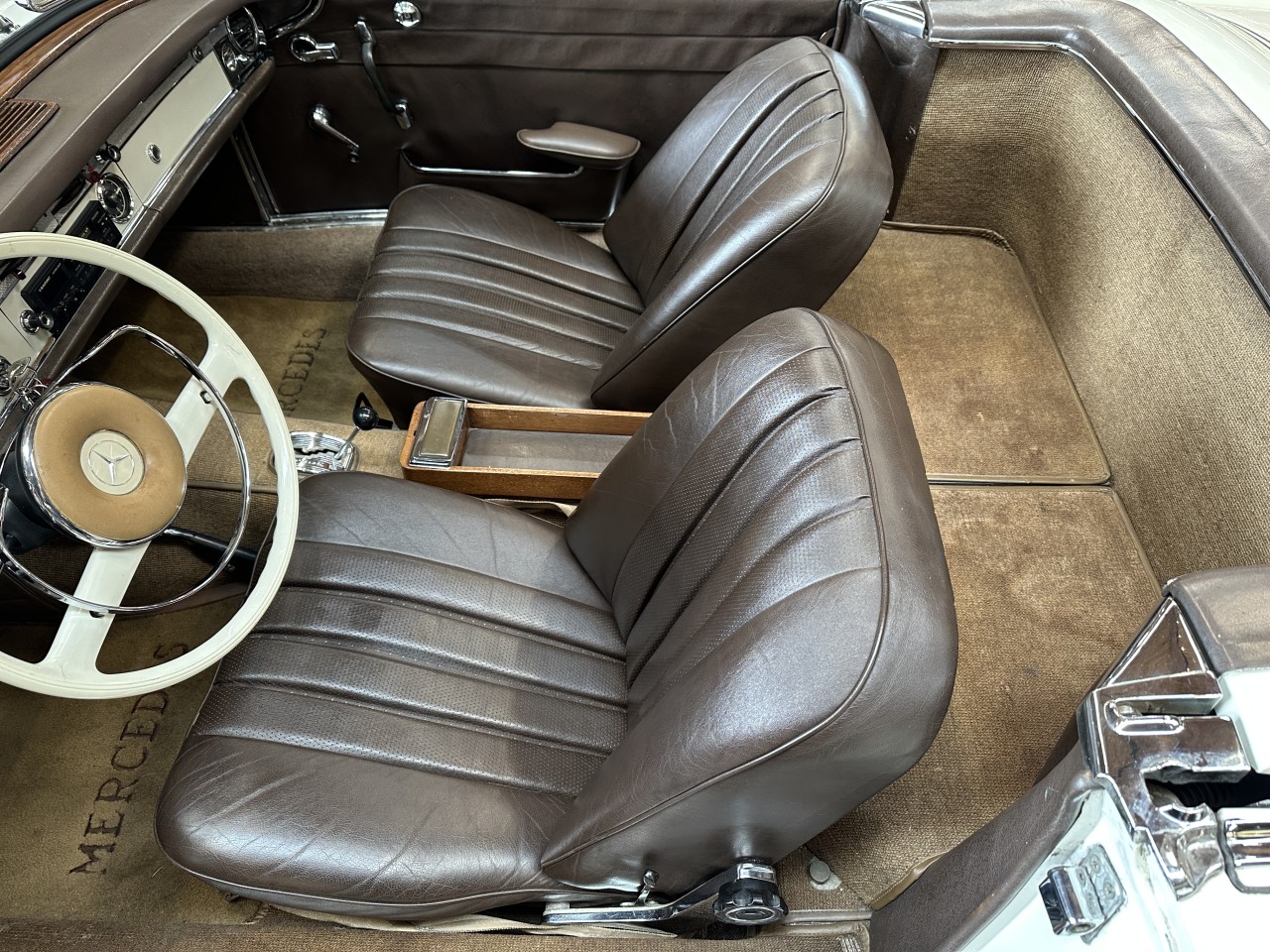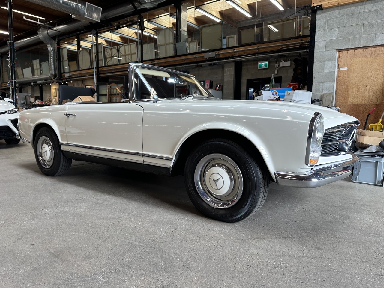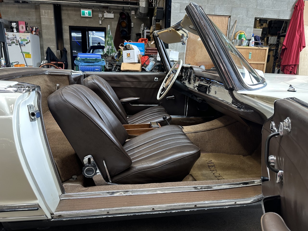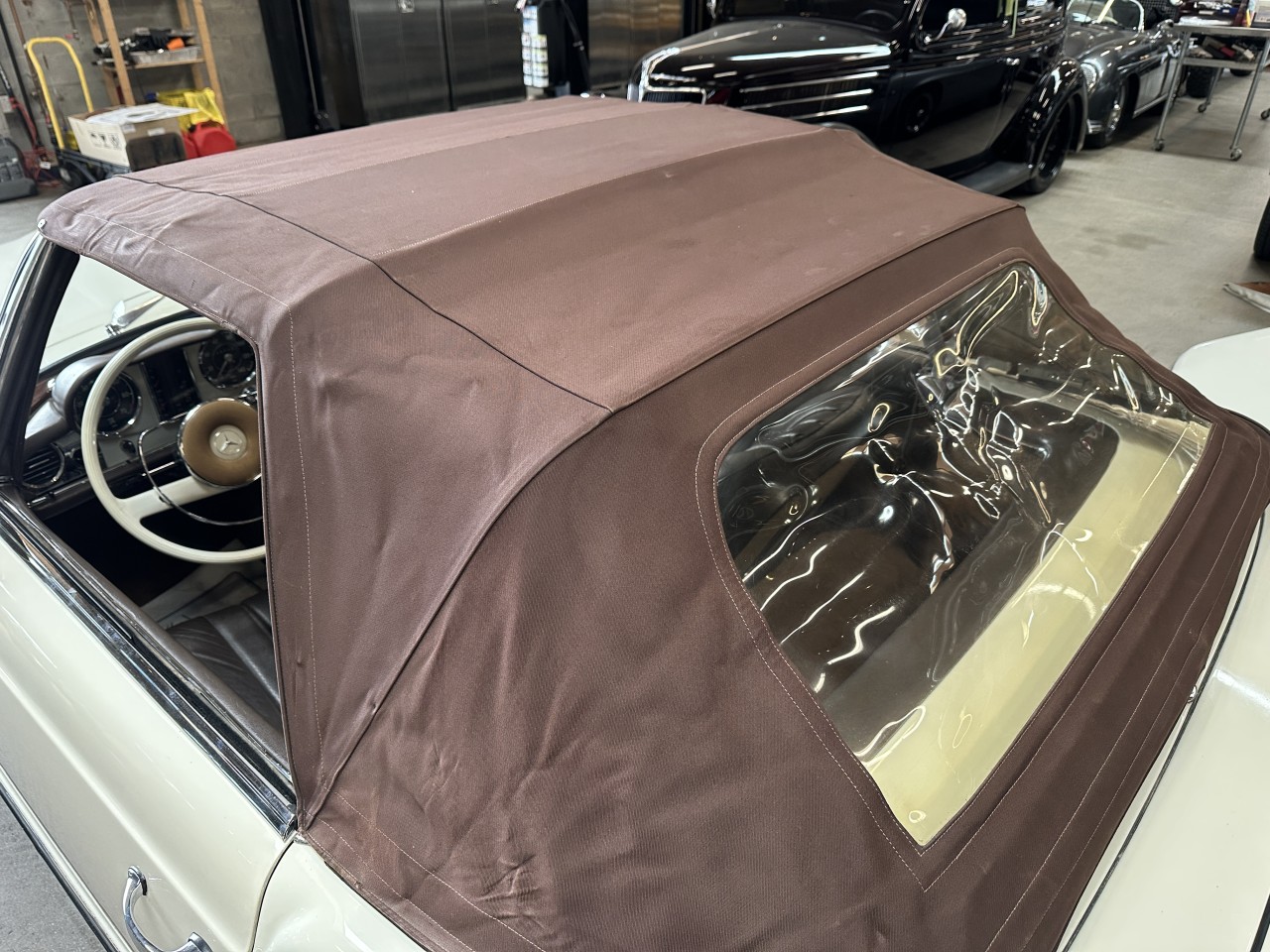 1966 Mercedes-Benz 230SL Roadster. 24,800 Miles (5 Digit ODO). Well equipped with Brown leather seats, Blaupunkt tape deck, Two-spoke white steering wheel, Wood trim, Colour matching Pagoda top, Brown soft top, 14" wheels, Hubcaps with white-finished centers. 2.3L Inline 6 cylinder mated to a 4 speed automatic transmission rated by the factory new at 118hp / 137lb-ft. Well maintained and just serviced. Leasing and financing available. All trades accepted.