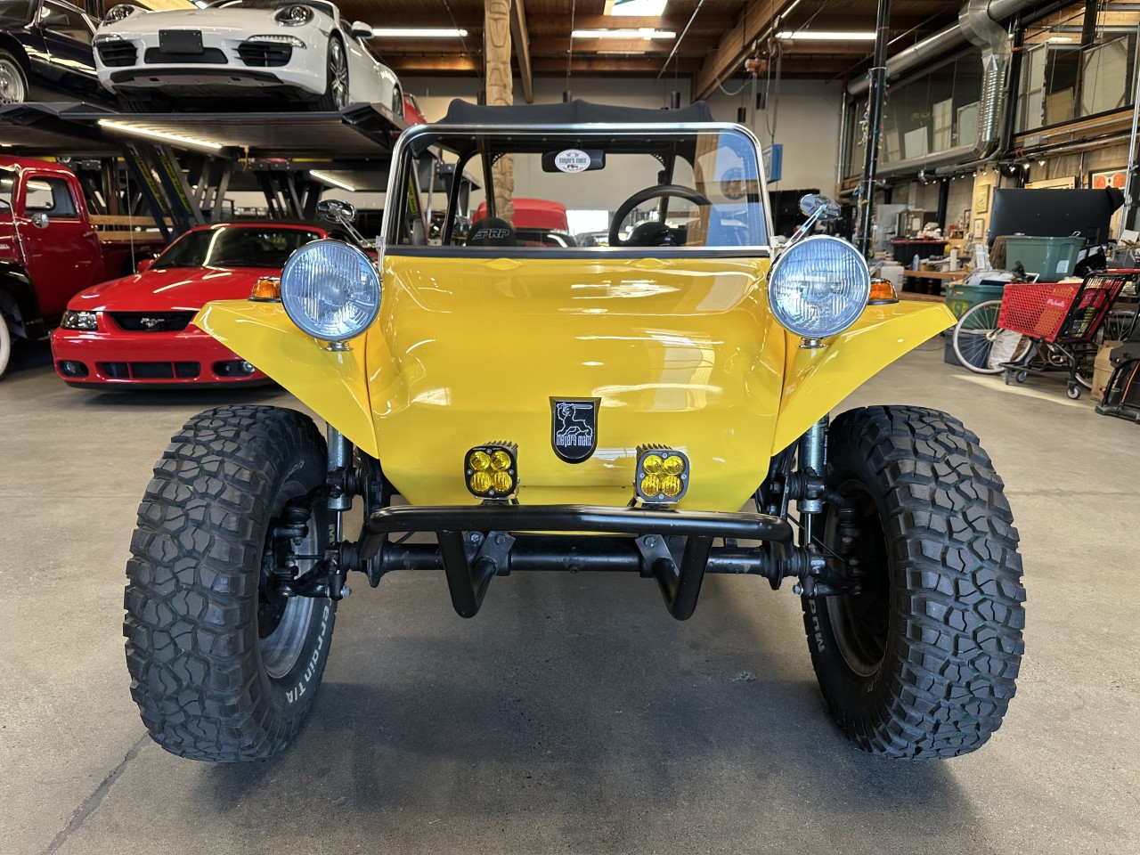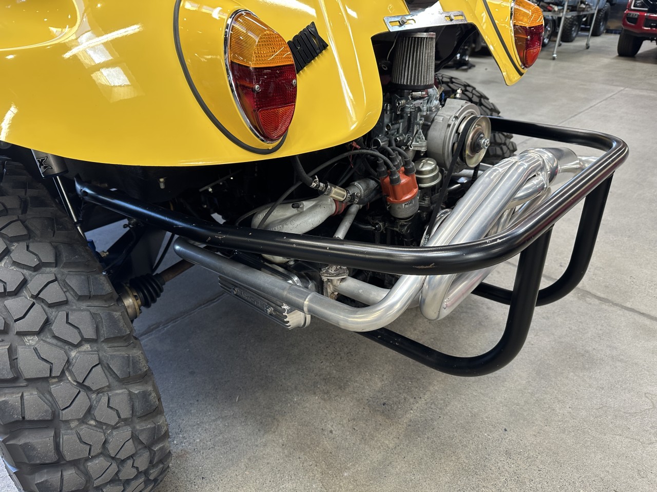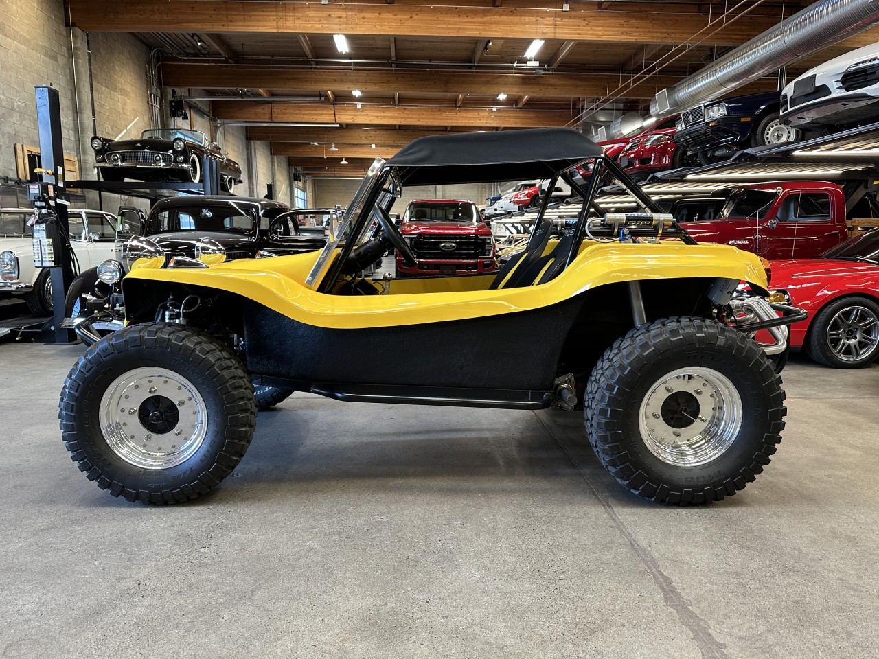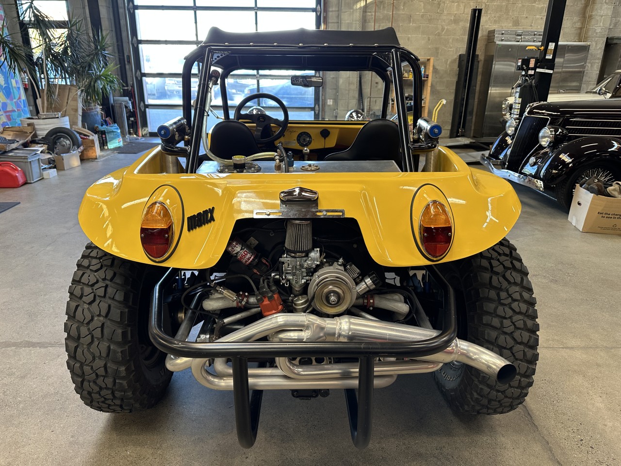 1965 Meyers Manx. Registry Authentication #0103, singed by Bruce Meyers. Featuring PRP Racing seats with 4 point harnesses, Momo Competition steering wheel with quick release, Vintage speed black mamba sports shifter, Roll cage, Black soft top, LED Baja designs front lights, Rear mounted fuel cell, Rear engine cage, Side step bars, Fox external reservoir shocks, 15" Polished wheels with BFGoodrich Mud-Terrain T/A KM2 235/75R15 Fronts and 31x10.5R15 Rears. 1600cc Dual port flat 4 cylinder mated to a 4 speed manual transmission. All trades accepted.