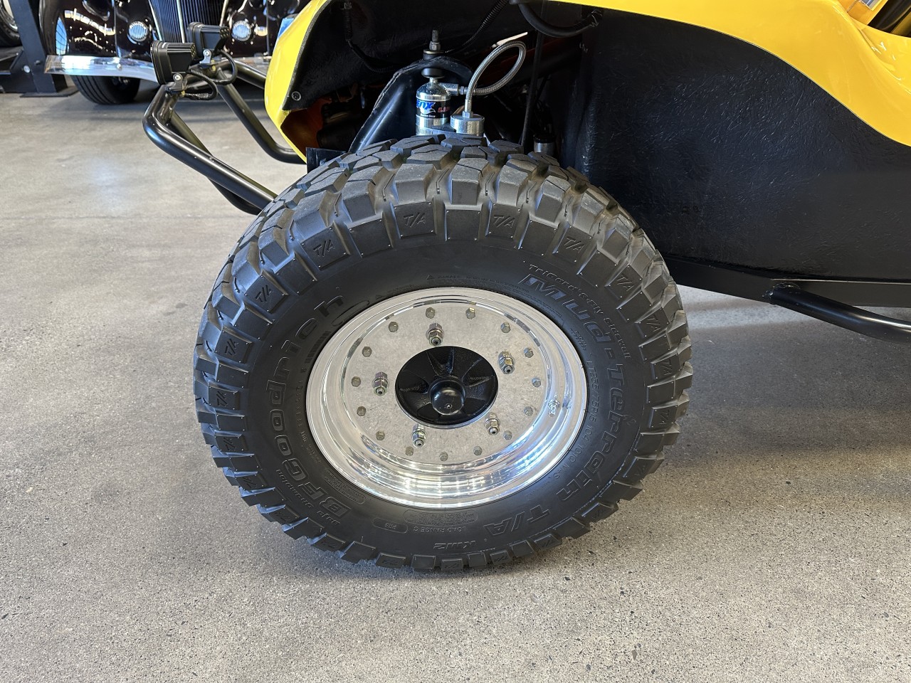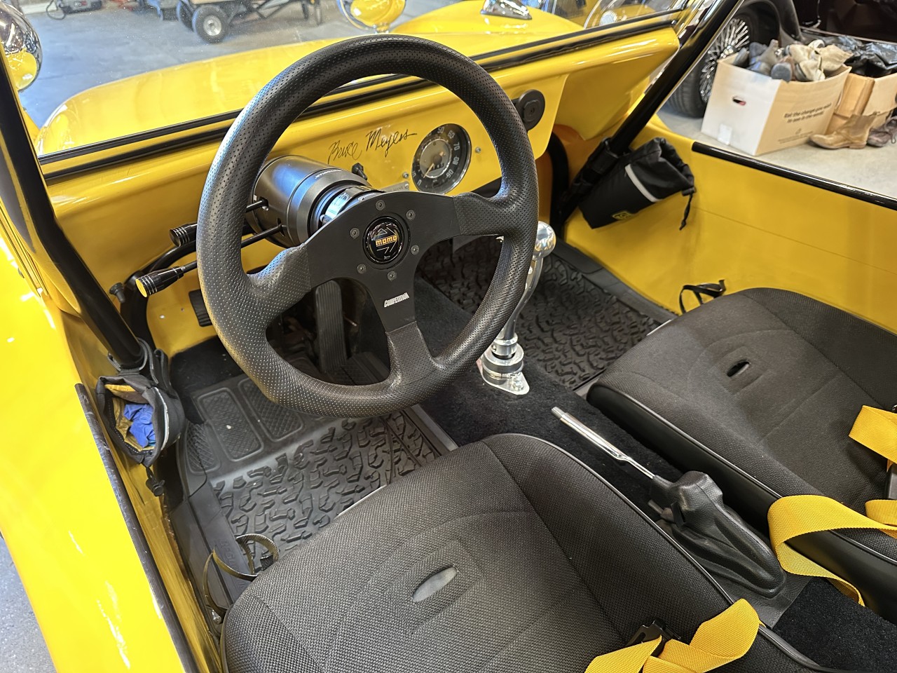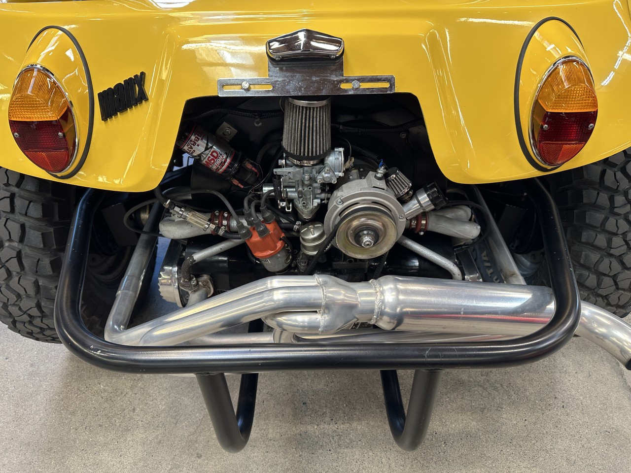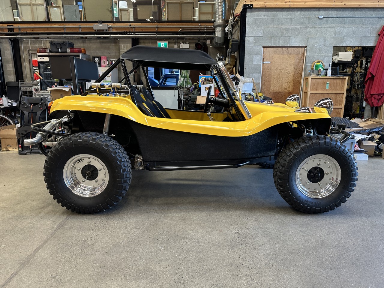 1965 Meyers Manx. Registry Authentication #0103, singed by Bruce Meyers. Featuring PRP Racing seats with 4 point harnesses, Momo Competition steering wheel with quick release, Vintage speed black mamba sports shifter, Roll cage, Black soft top, LED Baja designs front lights, Rear mounted fuel cell, Rear engine cage, Side step bars, Fox external reservoir shocks, 15" Polished wheels with BFGoodrich Mud-Terrain T/A KM2 235/75R15 Fronts and 31x10.5R15 Rears. 1600cc Dual port flat 4 cylinder mated to a 4 speed manual transmission. All trades accepted.