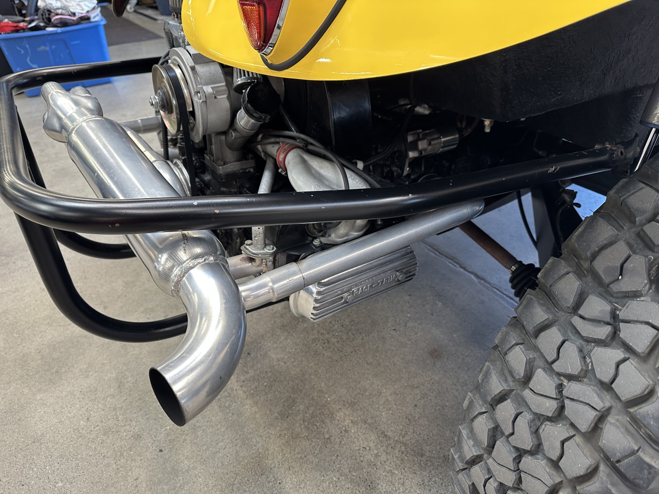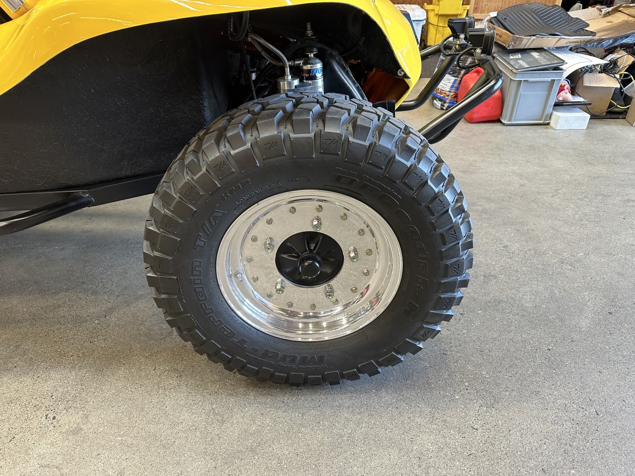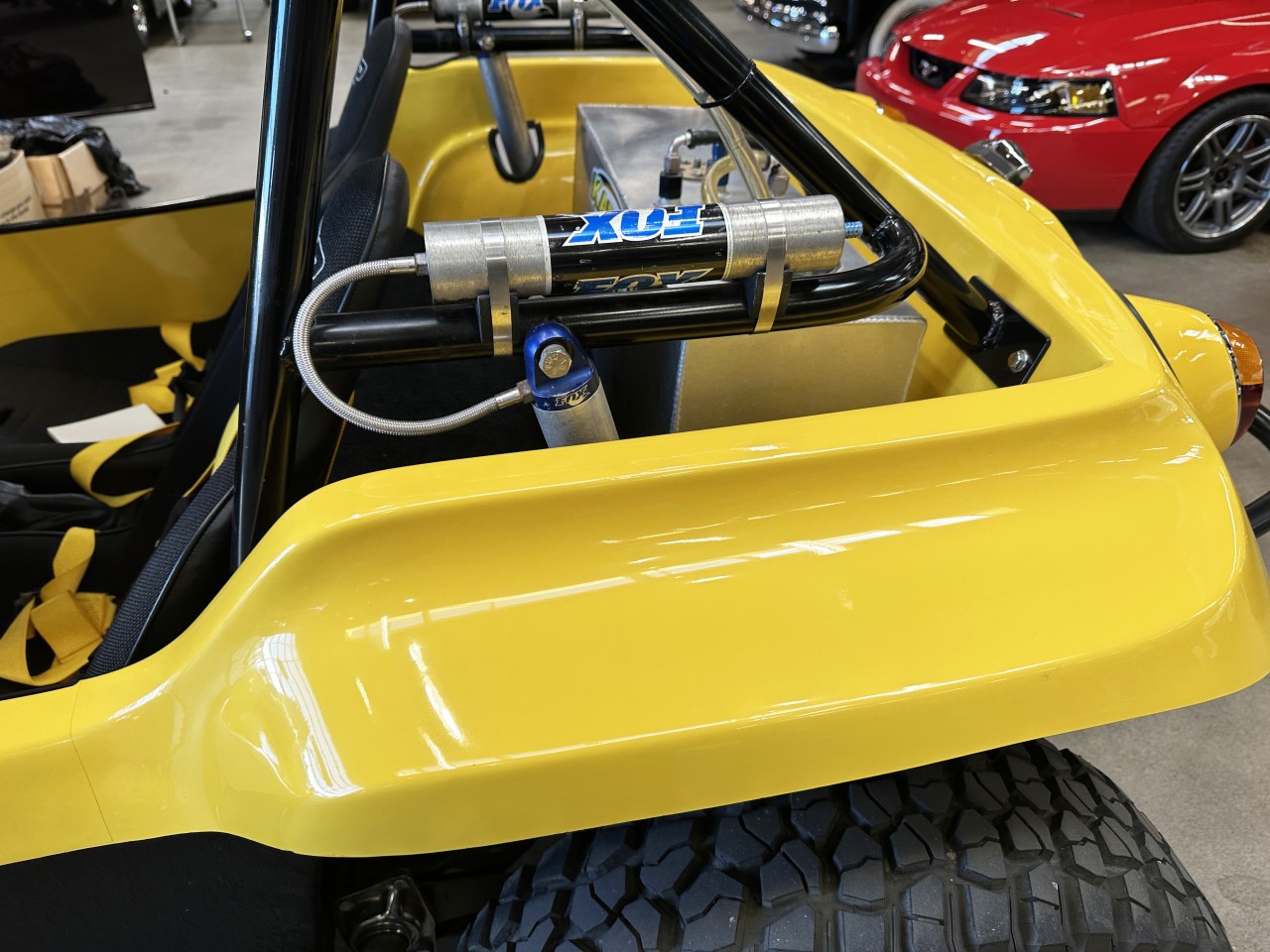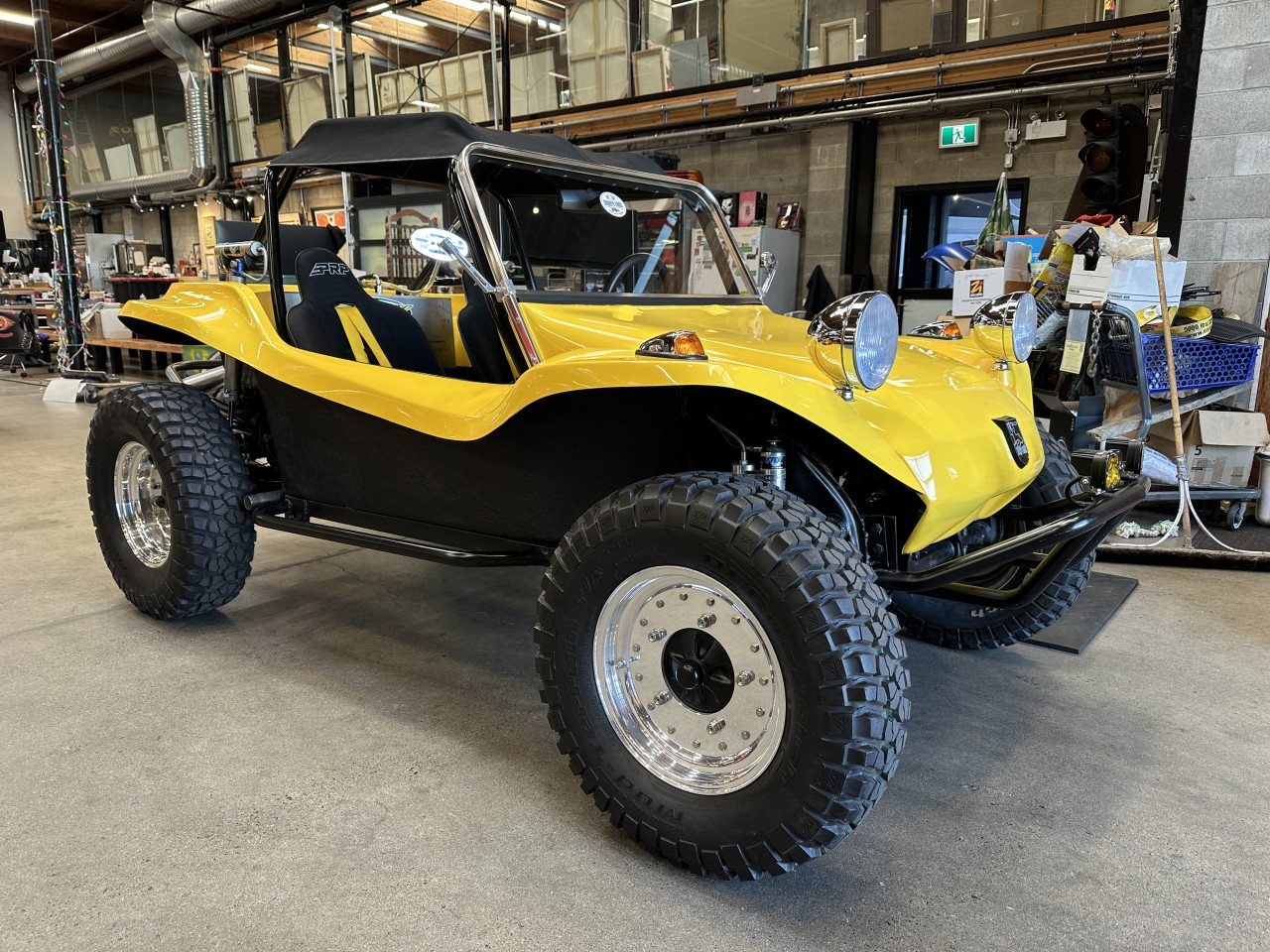 1965 Meyers Manx. Registry Authentication #0103, singed by Bruce Meyers. Featuring PRP Racing seats with 4 point harnesses, Momo Competition steering wheel with quick release, Vintage speed black mamba sports shifter, Roll cage, Black soft top, LED Baja designs front lights, Rear mounted fuel cell, Rear engine cage, Side step bars, Fox external reservoir shocks, 15" Polished wheels with BFGoodrich Mud-Terrain T/A KM2 235/75R15 Fronts and 31x10.5R15 Rears. 1600cc Dual port flat 4 cylinder mated to a 4 speed manual transmission. All trades accepted.