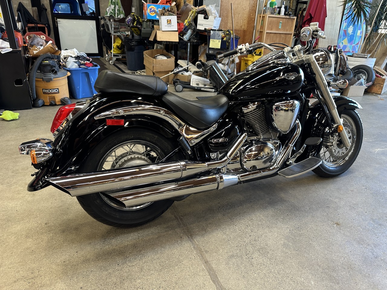 2011 Suzuki Boulevard C50. Featuring Leather-textured seats, Wide buck horn style handlebars, Forward-mount floorboards, Chrome trim pieces, Dual pipe exhaust, LED tail light, 16" Front and 15" rear spoke-style chrome wheels. 805cc V-Twin mated to a 5 speed transmission rated by the factory new at 52hp / 51lb-ft. All trades accepted.