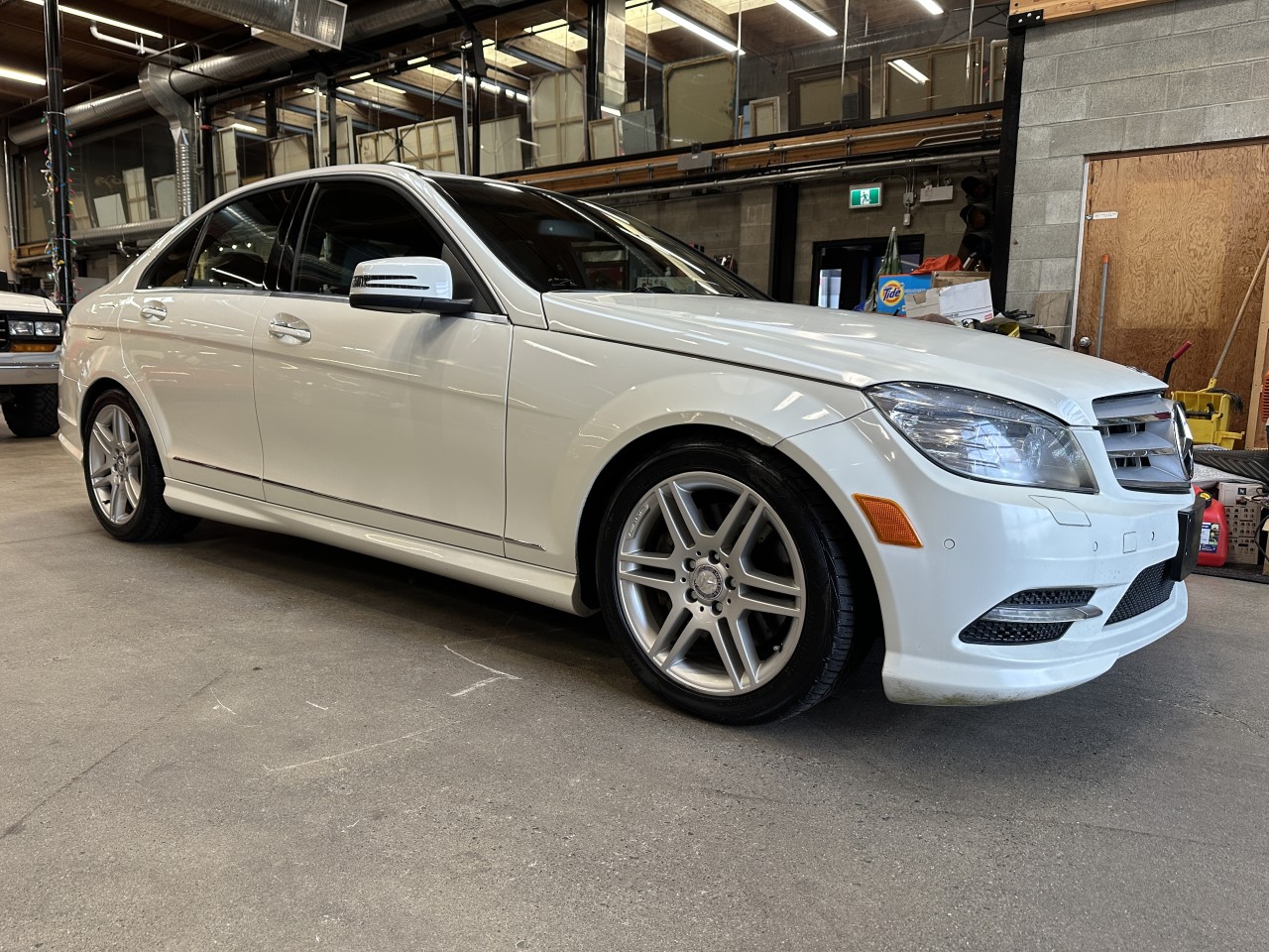 2011 Mercedes-Benz C 300 4Matic Sedan. Well equipped with Premium Package and Comand Navigation Package. Including Heated power Artico front memory seats, Dual zone climate control, Power tilt moonroof, Navigation, Harman Kardon surround sound system, CD Changer, Music register, Media interface, Aux input, Bluetooth, Steering wheel controls, Power tilt / telescopic steering wheel, Power windows, Power door locks, Power folding mirrors, Cruise control, Keyless touch entry and locking, Keyless push button ignition, Wood trim, Front and rear parking sensors, Bi-xenon headlamps, Headlamp washing system, 17" AMG 6-twin spoke alloy wheels. 3.0L V6 mated to a 7 speed shiftable automatic transmission rated by the factory at 228hp / 221lb-ft.