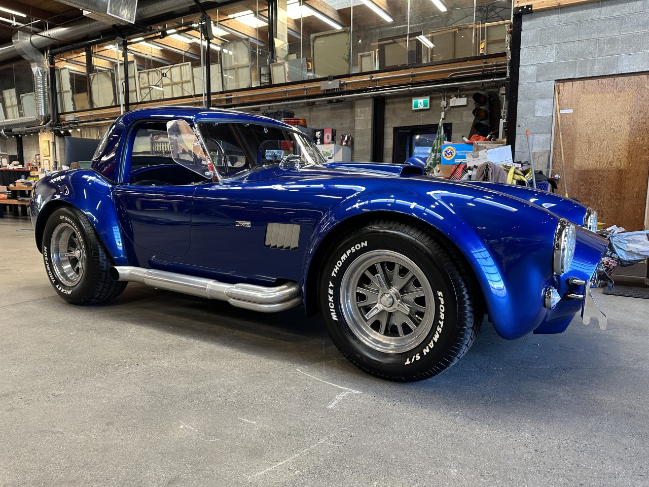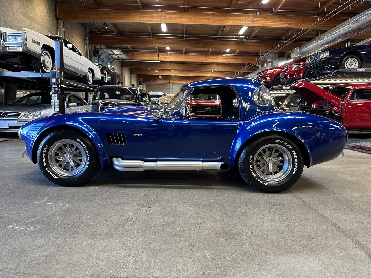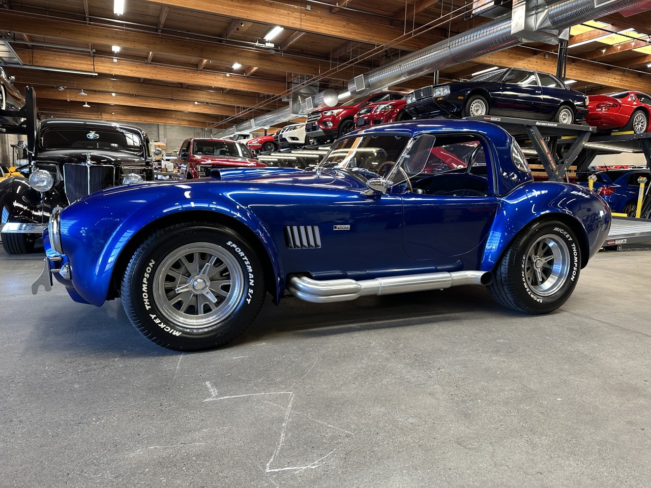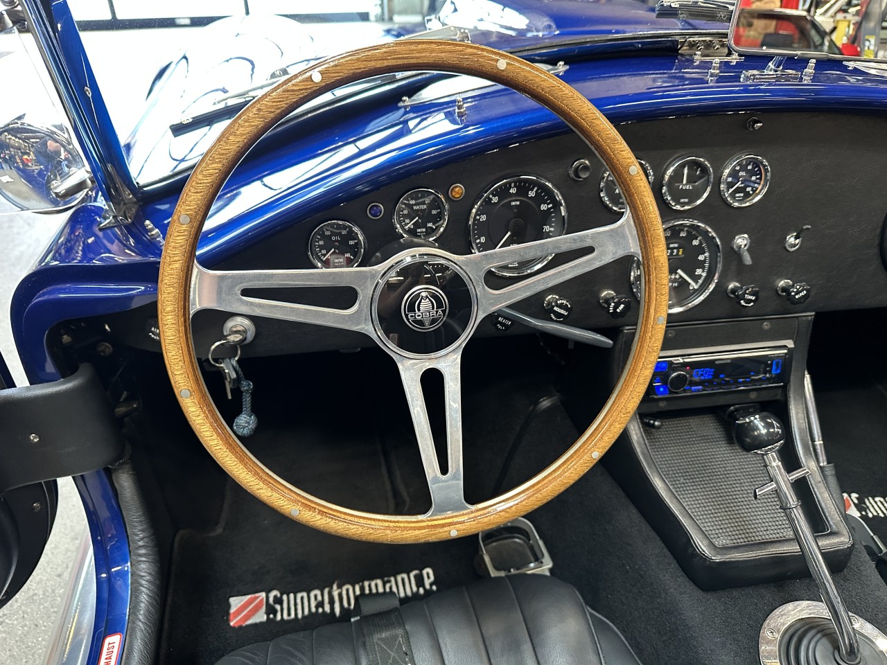 Roush 402R-Powered Superformance Mark III 5-Speed assembled in 2006. Featuring Leather seats, RJS Racing 5-point camlock belts, Wood-rimmed steering wheel, Smiths instrumentation with a reverse-sweep 180 MPH speedometer, Kenwood deck, Aux input, Usb input, Bluetooth, Bluetooth audio, Spotify, Pandora, Focal component speakers and subwoofer, Clarion amp, Cup holders, Shelby signed glove box, Superformance floor mats, Holly carburetor, Aluminum cylinder heads, Forged crankshaft and pistons, Tubular exhaust headers, Side-exit exhaust pipes, MSD Ignition components, Roush branded air cleaner cover and valve covers, Single roll hoop, Fiberglass body, Quick-jack bumperettes, Hood scoop, Fender vents, Wind wings, Talbot Berlin-style mirror, LeMans-style fuel filler cap, Blue hardtop, Black soft top, LED Headlights, Dana differential, Four-wheel disc brakes with Wilwood calipers, Coil-over suspension, 15" Halibrand-style knock off wheels with Mickey Thompson Sportsman S/T tires. Roush built 402ci V8 mated to a Tremec TKO600 5 speed manual transmission rated by the factory new at 515hp / 500lb-ft. Well maintained and just serviced. Leasing and financing available. All trades accepted.