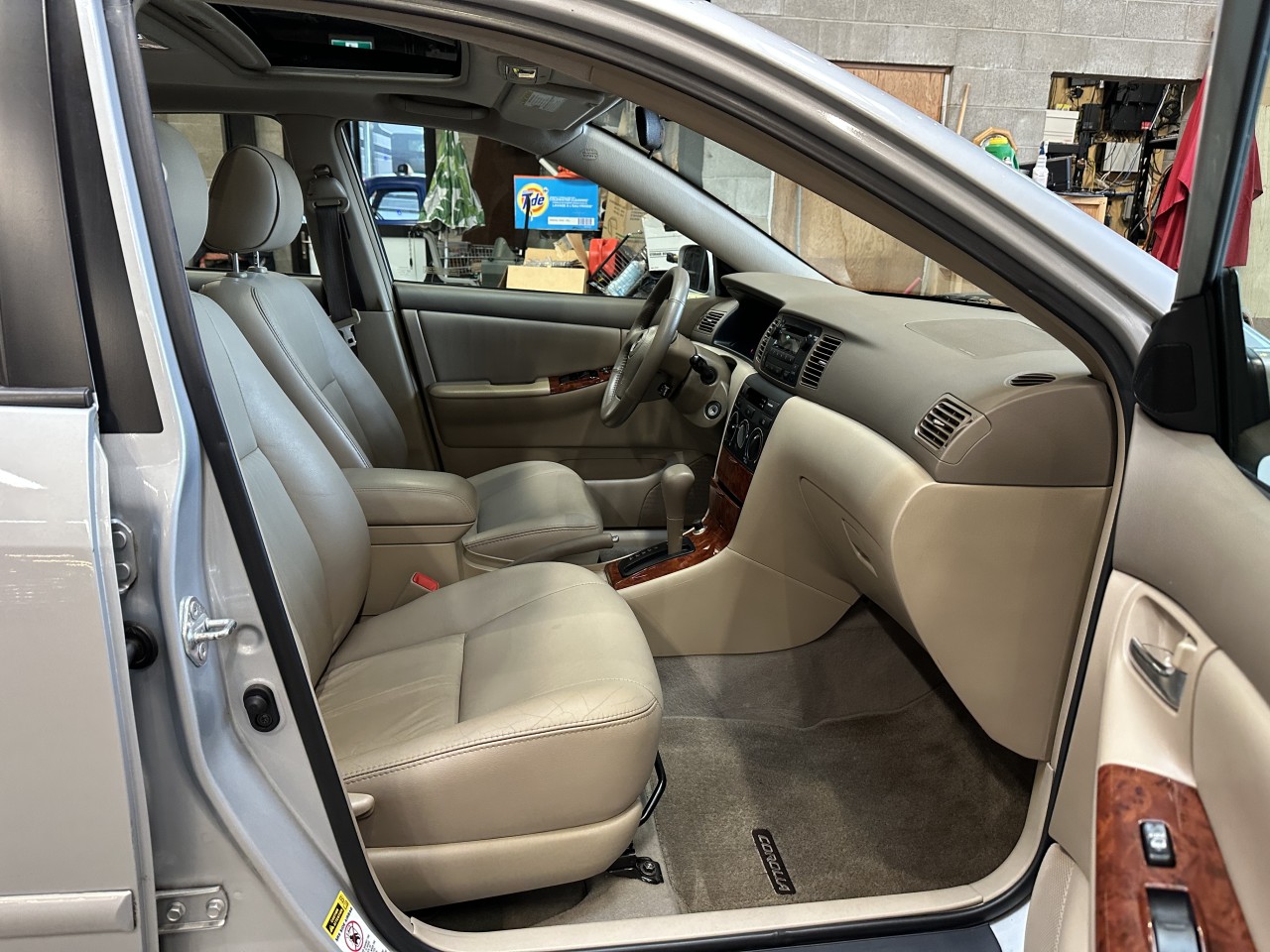 A local Toyota Corolla LE Sedan. Well equipped with Leather seats, Power tilt moonroof, Toyota sound with CD player, Tilt steering wheel, Power windows, Power door locks, Power mirrors, Cruise control, Keyless entry, Air conditioning, Fog lamps, 15" Alloy wheels. 1.8L Inline 4 cylinder mated to a 4 speed automatic transmission rated by the factory at 126hp / 122lb-ft. A 1 year warranty is included in the purchase price of this vehicle. Well maintained and just serviced. Leasing and financing available. All trades accepted.