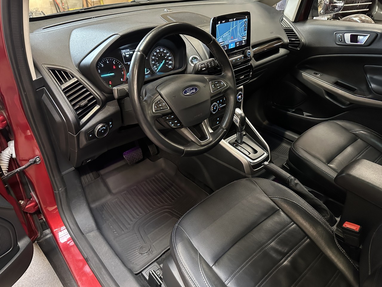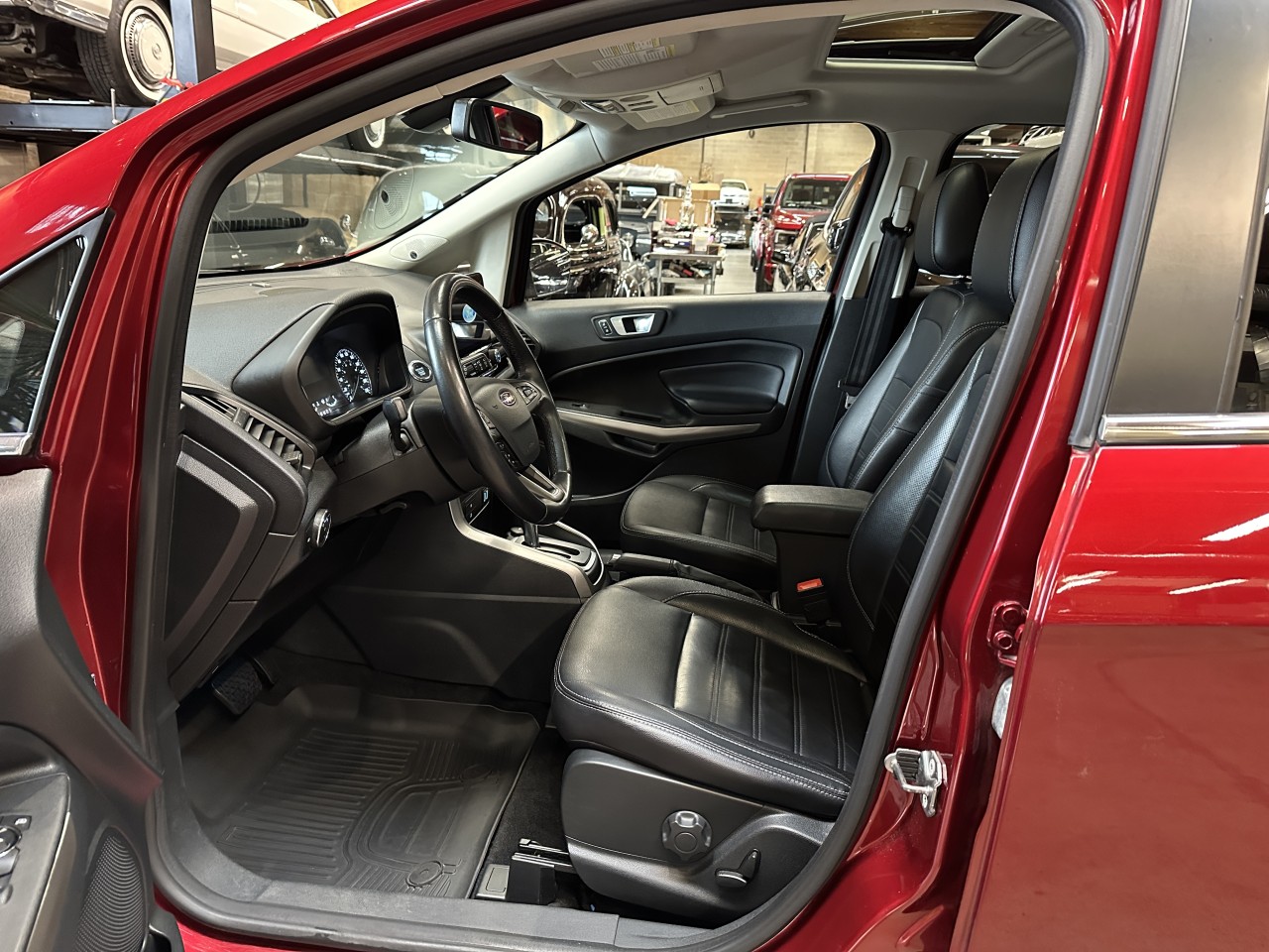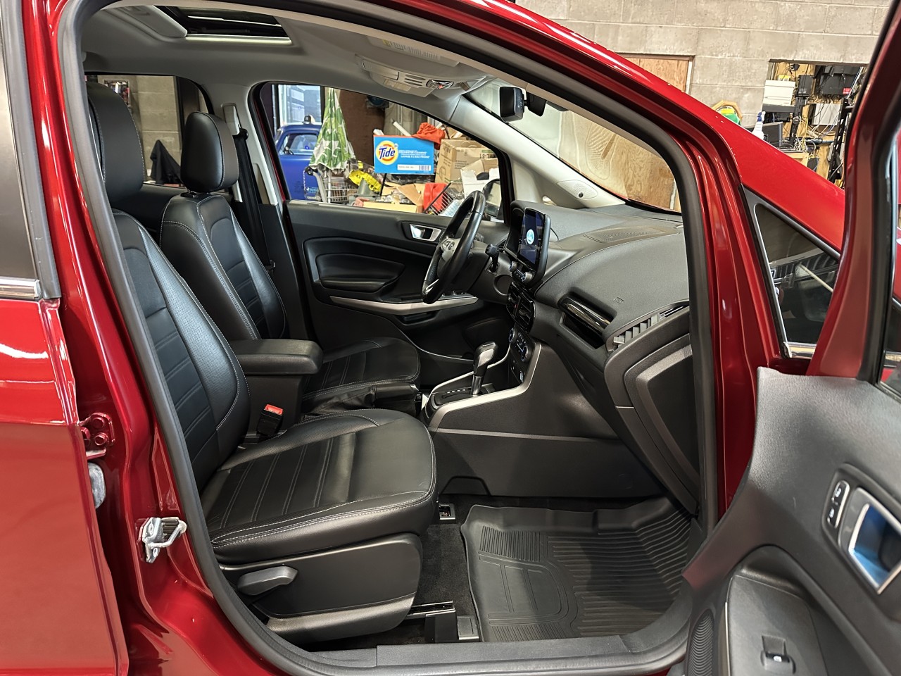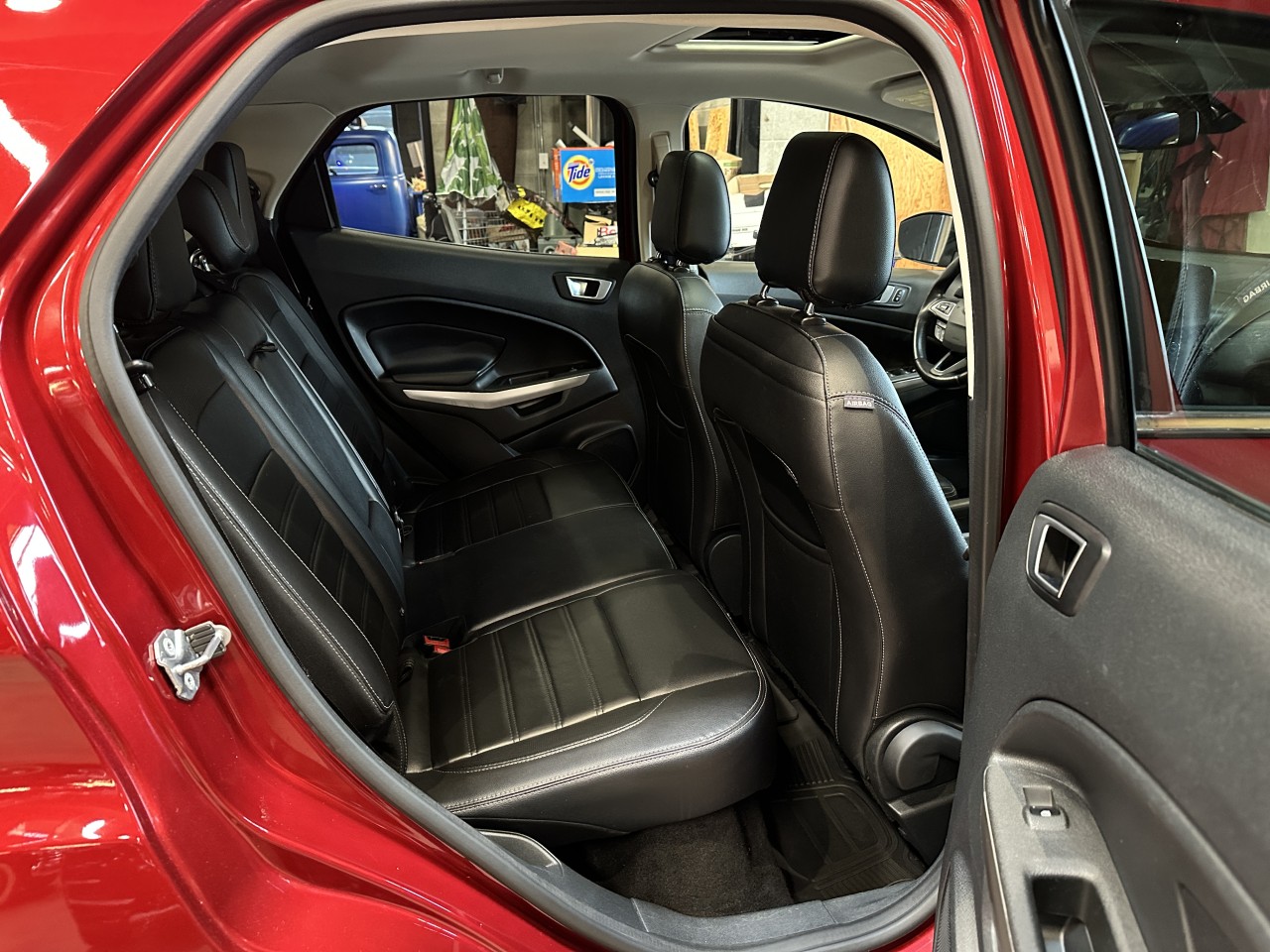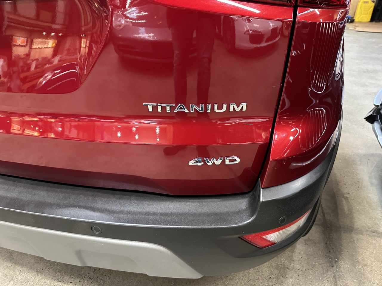 A local Ford EcoSport Titanium 4WD. Well equipped with Heated front leather seats, Power driver's seat, Power tilt moonroof, Navigation, Bang & Olufsen premium audio system, Satellite radio, Bluetooth, Bluetooth audio, Steering wheel controls, Heated steering wheel, Tilt / telescopic steering wheel, Power windows, Power door locks, Power mirrors, Blind spot information system, Cruise control, Keyless entry, Keyless push button ignition, All weather floor mats, Cargo cover, Back up camera, Parking sensors, Projector headlamps, Fog lamps, 17" Alloy wheels. 2.0L Inline 4 cylinder mated to a 6 speed shiftable automatic transmission rated by the factory at 166hp / 149lb-ft. A 1 year warranty is included in the purchase price of this vehicle. Well maintained and just serviced. Leasing and financing available. All trades accepted.