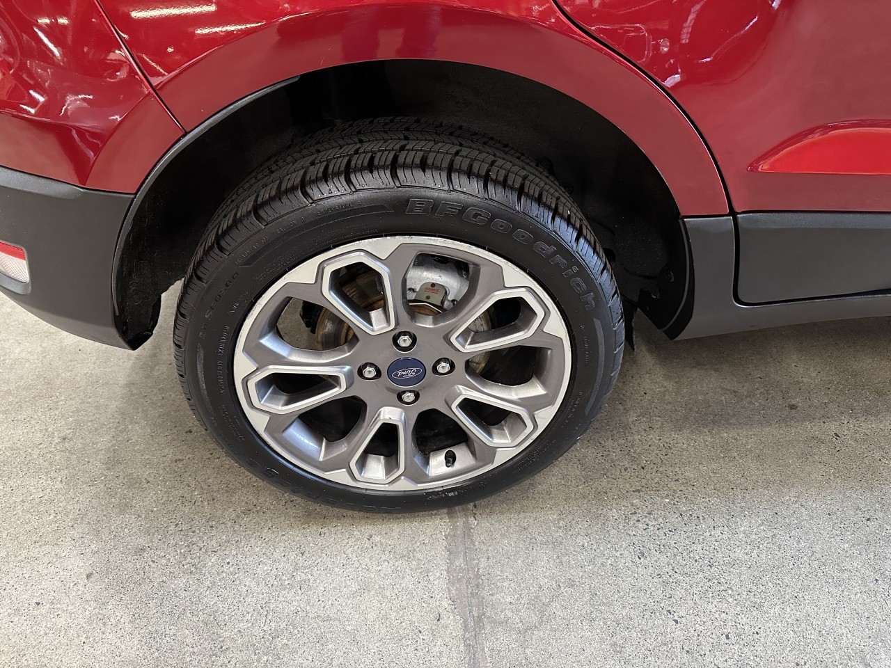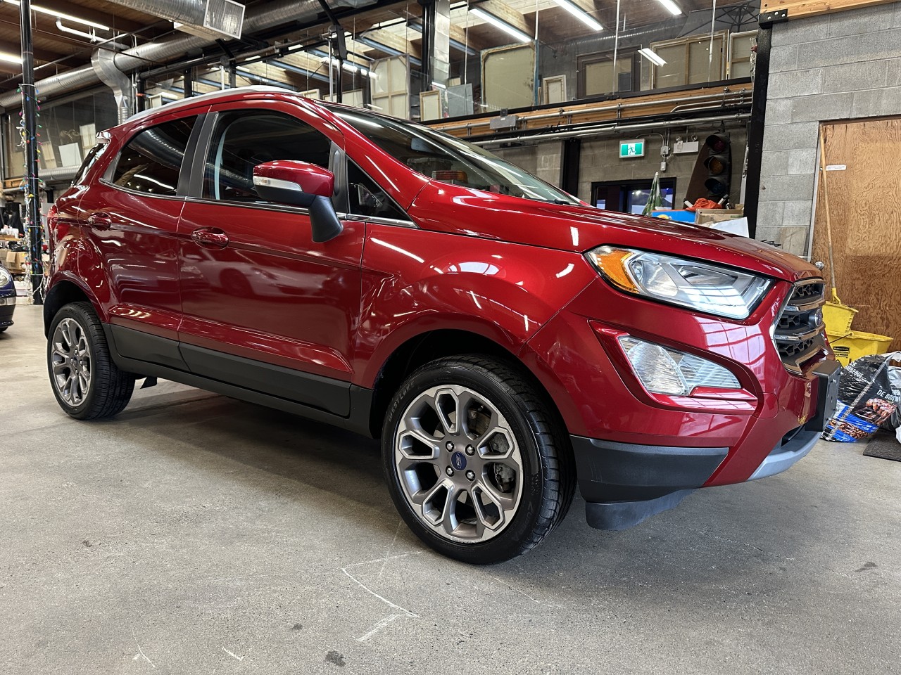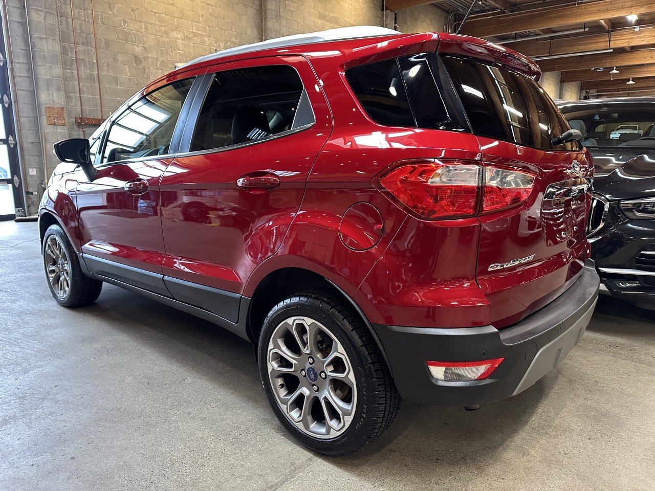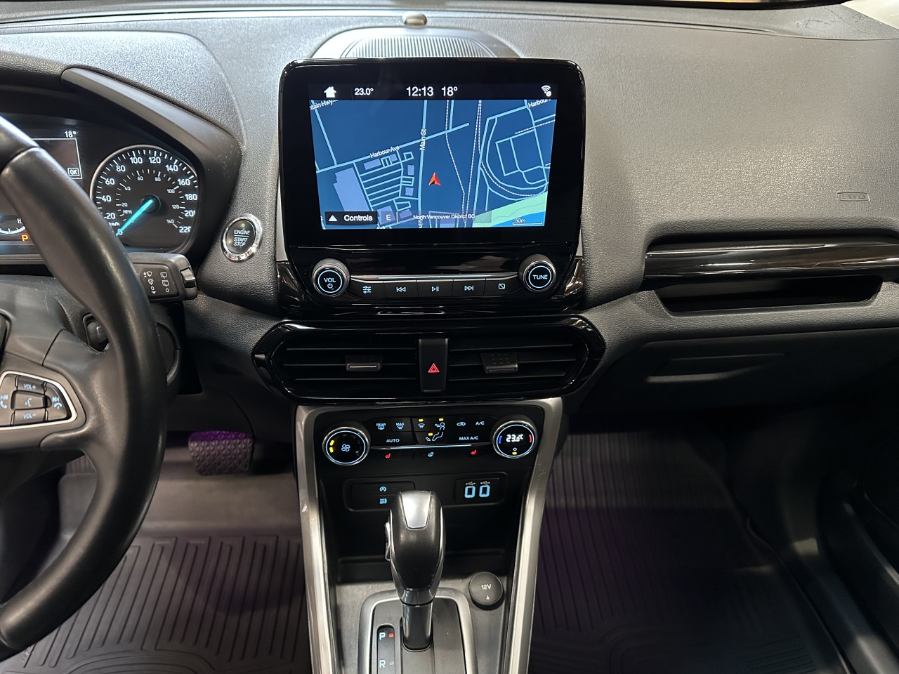 A local Ford EcoSport Titanium 4WD. Well equipped with Heated front leather seats, Power driver's seat, Power tilt moonroof, Navigation, Bang & Olufsen premium audio system, Satellite radio, Bluetooth, Bluetooth audio, Steering wheel controls, Heated steering wheel, Tilt / telescopic steering wheel, Power windows, Power door locks, Power mirrors, Blind spot information system, Cruise control, Keyless entry, Keyless push button ignition, All weather floor mats, Cargo cover, Back up camera, Parking sensors, Projector headlamps, Fog lamps, 17" Alloy wheels. 2.0L Inline 4 cylinder mated to a 6 speed shiftable automatic transmission rated by the factory at 166hp / 149lb-ft. A 1 year warranty is included in the purchase price of this vehicle. Well maintained and just serviced. Leasing and financing available. All trades accepted.