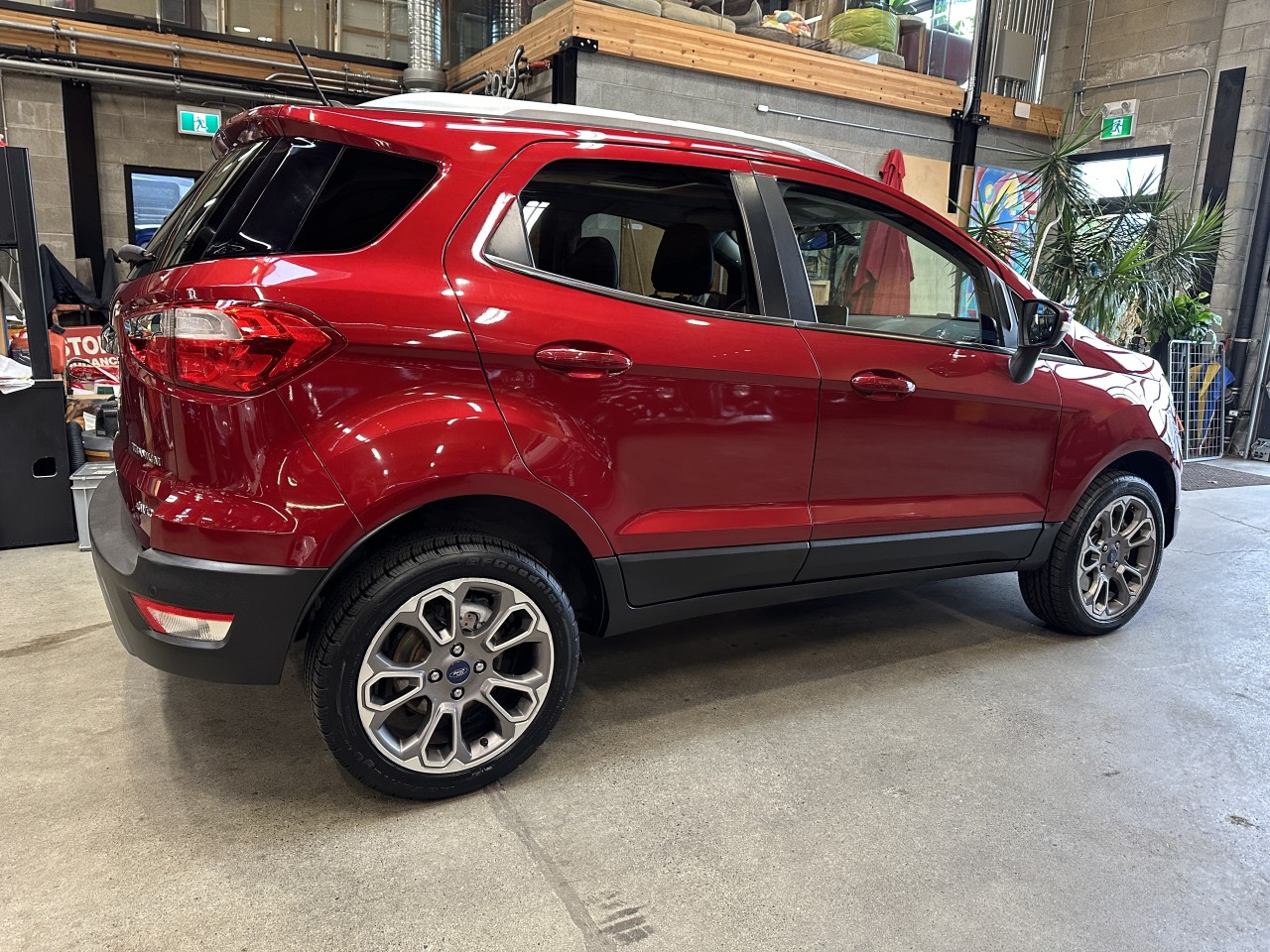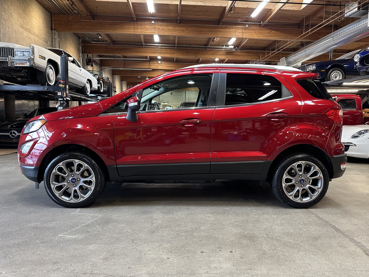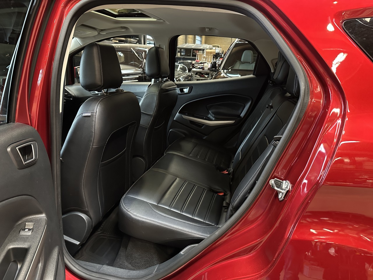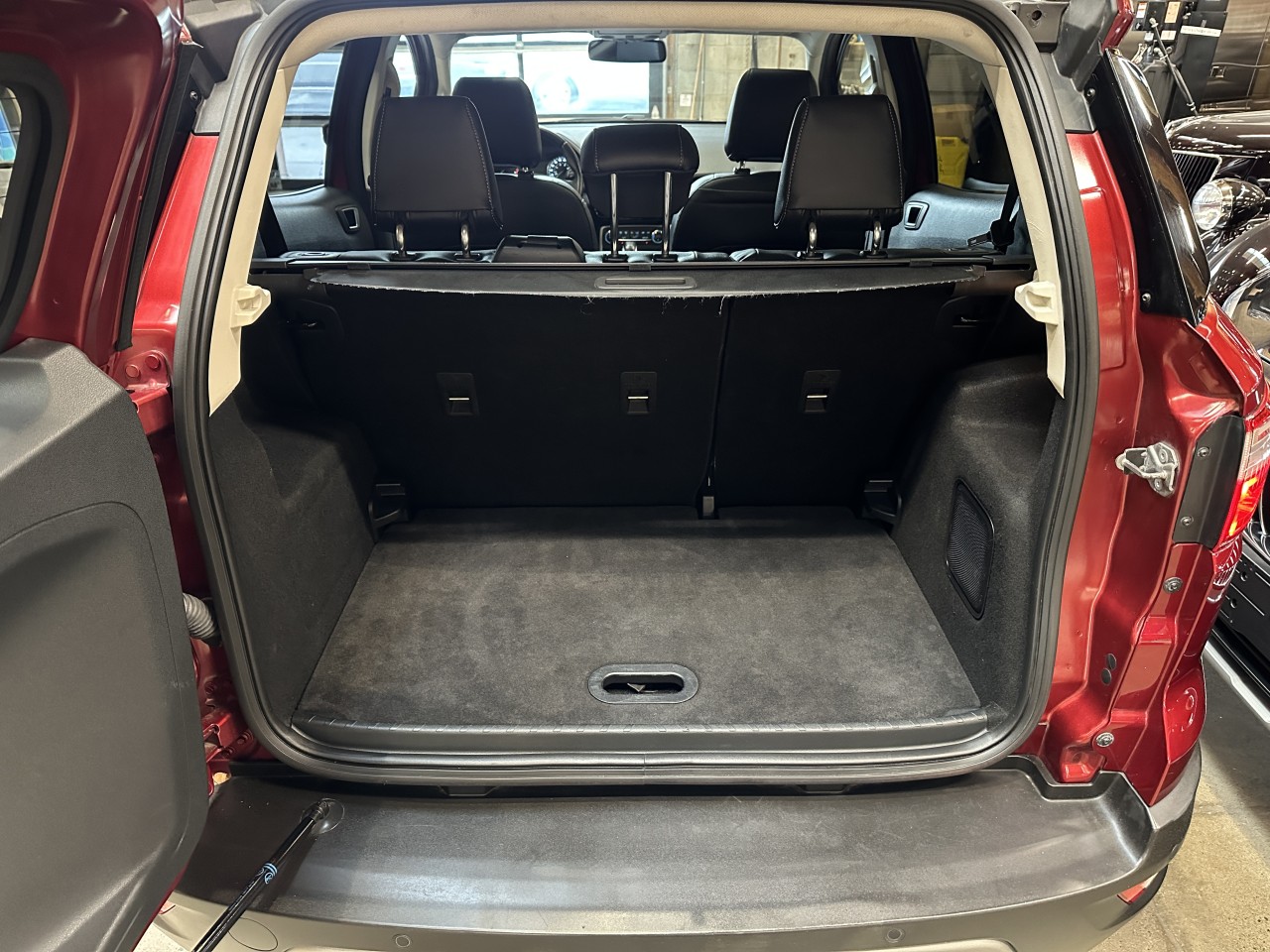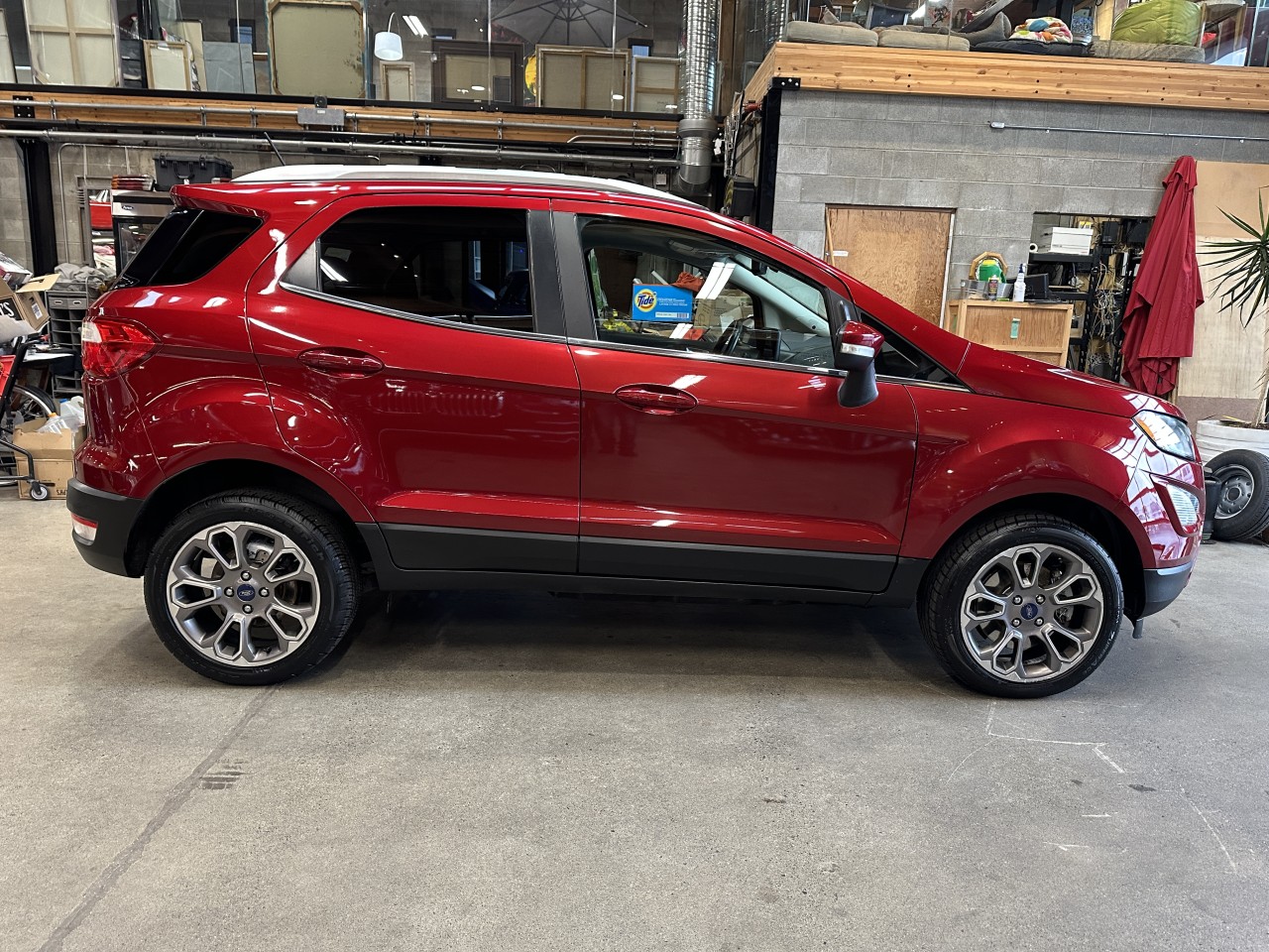 A local Ford EcoSport Titanium 4WD. Well equipped with Heated front leather seats, Power driver's seat, Power tilt moonroof, Navigation, Bang & Olufsen premium audio system, Satellite radio, Bluetooth, Bluetooth audio, Steering wheel controls, Heated steering wheel, Tilt / telescopic steering wheel, Power windows, Power door locks, Power mirrors, Blind spot information system, Cruise control, Keyless entry, Keyless push button ignition, All weather floor mats, Cargo cover, Back up camera, Parking sensors, Projector headlamps, Fog lamps, 17" Alloy wheels. 2.0L Inline 4 cylinder mated to a 6 speed shiftable automatic transmission rated by the factory at 166hp / 149lb-ft. A 1 year warranty is included in the purchase price of this vehicle. Well maintained and just serviced. Leasing and financing available. All trades accepted.