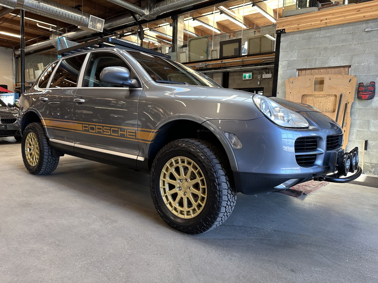 Imported from Japan with overland build completed locally, 2004 Porsche Cayenne S AWD. Well equipped with Heated power front leather seats, Dual zone climate control, Power tilt moonroof, Kenwood touchscreen deck with navigation, Spotify, Pandora, Wireless Apple CarPlay, Wireless Android Auto, Bluetooth, Bluetooth audio, Tiptronic shifters, Tilt / telescopic steering wheel, Power windows, Power door locks, Power folding mirrors, Cruise control, Keyless entry, Cargo cover, Back up camera, Bi-xenon headlamps, Fog lamps, Headlamp washing system, Eurowise Baja light bar with 4 Hella off road lights, Front Runner Slimline II roof rack, Eurowise 2.5" lift kit, 18" Black Rhino Chamber wheel with Falken Wildpeak A/T3W tires. 4.5L V8 mated to a 6 speed shiftable automatic transmission rated by the factory at 340hp / 310lb-ft. A 1 year warranty is included in the purchase price of this vehicle. Well maintained and just serviced. Leasing and financing available. All trades accepted.