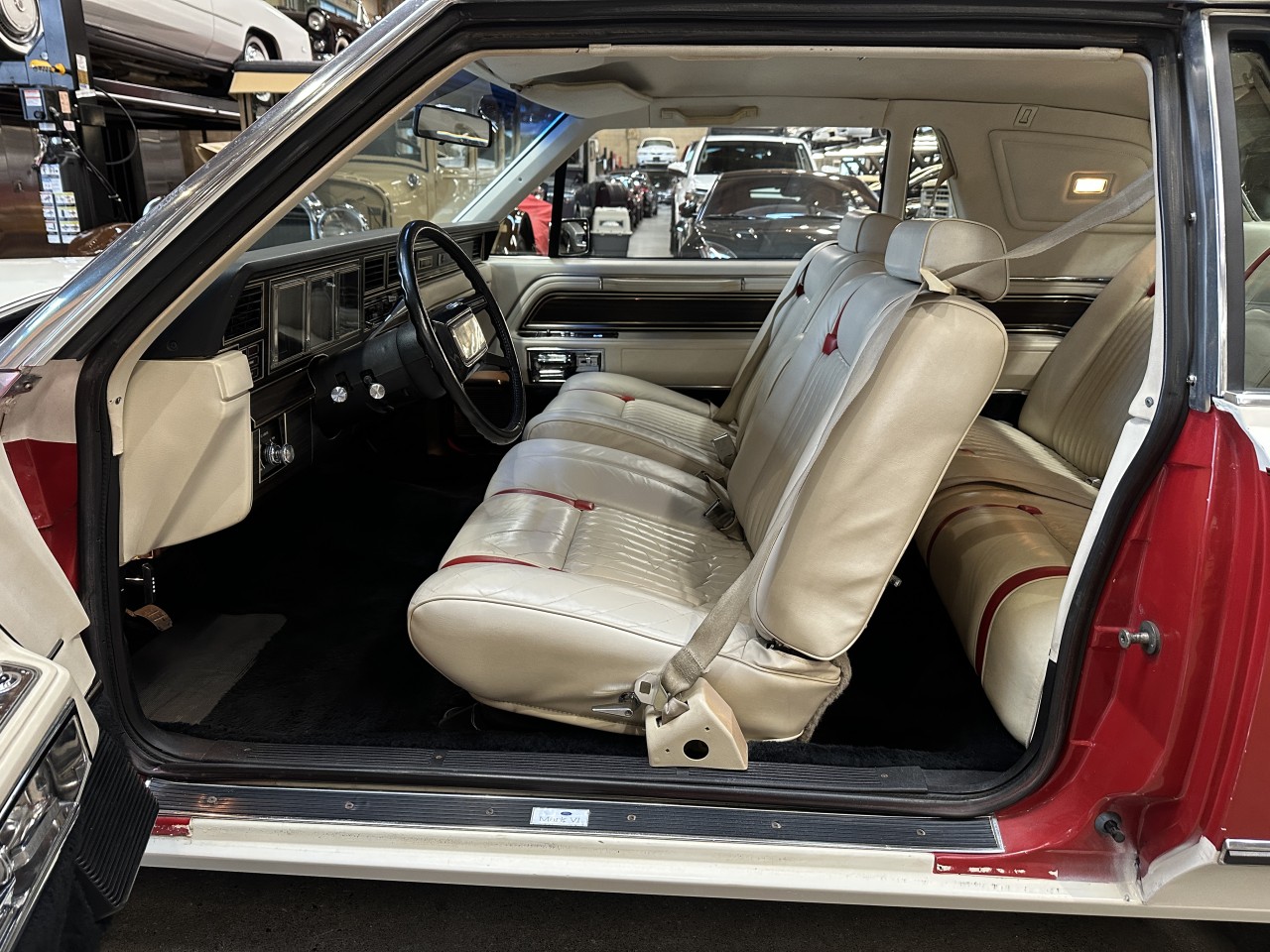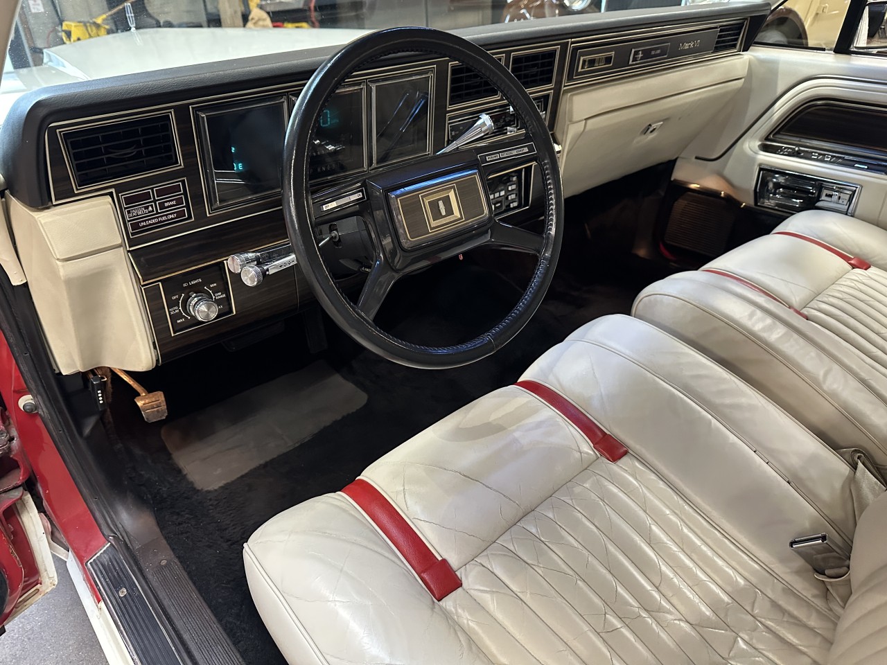 A local accident free Lincoln Continental Mark VI Coupe Bill Blass. 69,800 Miles (5 Digit ODO). Well equipped with Power front seats, White leather with red straps and buttons, Tilt steering wheel, Premium sound system, Power windows, Power door locks, Power mirrors, Mirror mounted air temperature gauge, Cruise control, Air conditioning, Wood trim, White diamond grain carriage roof, Hideaway headlights, 15" Wire wheels. 5.0L V8 mated to a 4 speed automatic transmission rated by the factory new at 134hp / 232lb-ft. Financing available. All trades accepted.