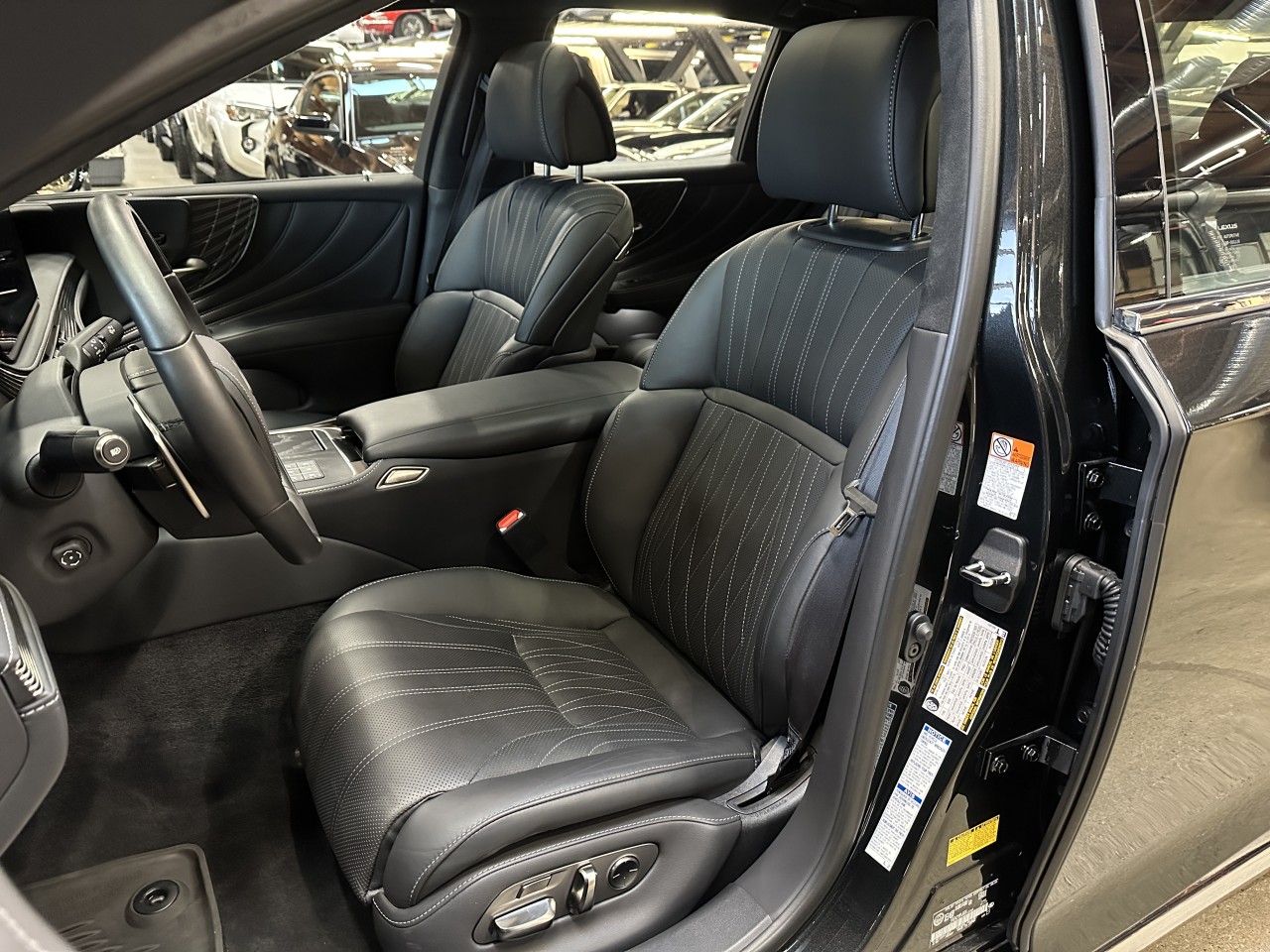 A local accident free Lexus LS 500 AWD. Fully equipped with LS 500 Executive Package, Heated and ventilated 28-way power adjustable front memory seats, Massage front passenger seat, Heated and ventilated 22-way power rear memory seats, Rear passenger side extendable ottoman, Massage rear seats, Four zone independent automatic climate control, Panoramic moonroof, Heads up display, Drive connect navigation system, Mark Levinson Reference surround sound system, Satellite radio, Usb input, Bluetooth, Bluetooth audio, Apple CarPlay, Android Auto, Wireless phone charger, Steering wheel controls, Heated steering wheel, Power tilt / telescopic steering wheel, Paddle shifters, Power windows, Power door locks, Power folding mirrors, Blind spot monitor, Lane departure alert system, Rear cross traffic alert, Rear camera detection, Proactive driving assist, Road sign assist, Pre-collision system, Intuitive parking assist, Parking support brake, Safe exit assist, Adaptive cruise control, Driver monitor camera, Keyless touch entry and locking, Keyless push button ignition, Front & rear air suspension, Drive mode select, Lexus front dash camera, Rear seat touch screen control for seats / massage / climate / audio, Matte laser special wood interior trim, Full rear side and rear window power sunshades, Alcantara headliner, Carpet and all weather floor mats, Soft close doors, 360 Degree camera system, 360 parking sensors, Panoramic view monitor, Park assist, Power trunk, LED Headlights, LED Running lights, Headlamp washing system, 20" Machined aluminum dark grey metallic alloy wheels. 3.4L Twin turbo V6 mated to a 10 speed shiftable automatic transmission rated by the factory at 416hp / 442lb-ft. Balance of full factory warranty. Well maintained and just serviced. Leasing and financing available. All trades accepted.