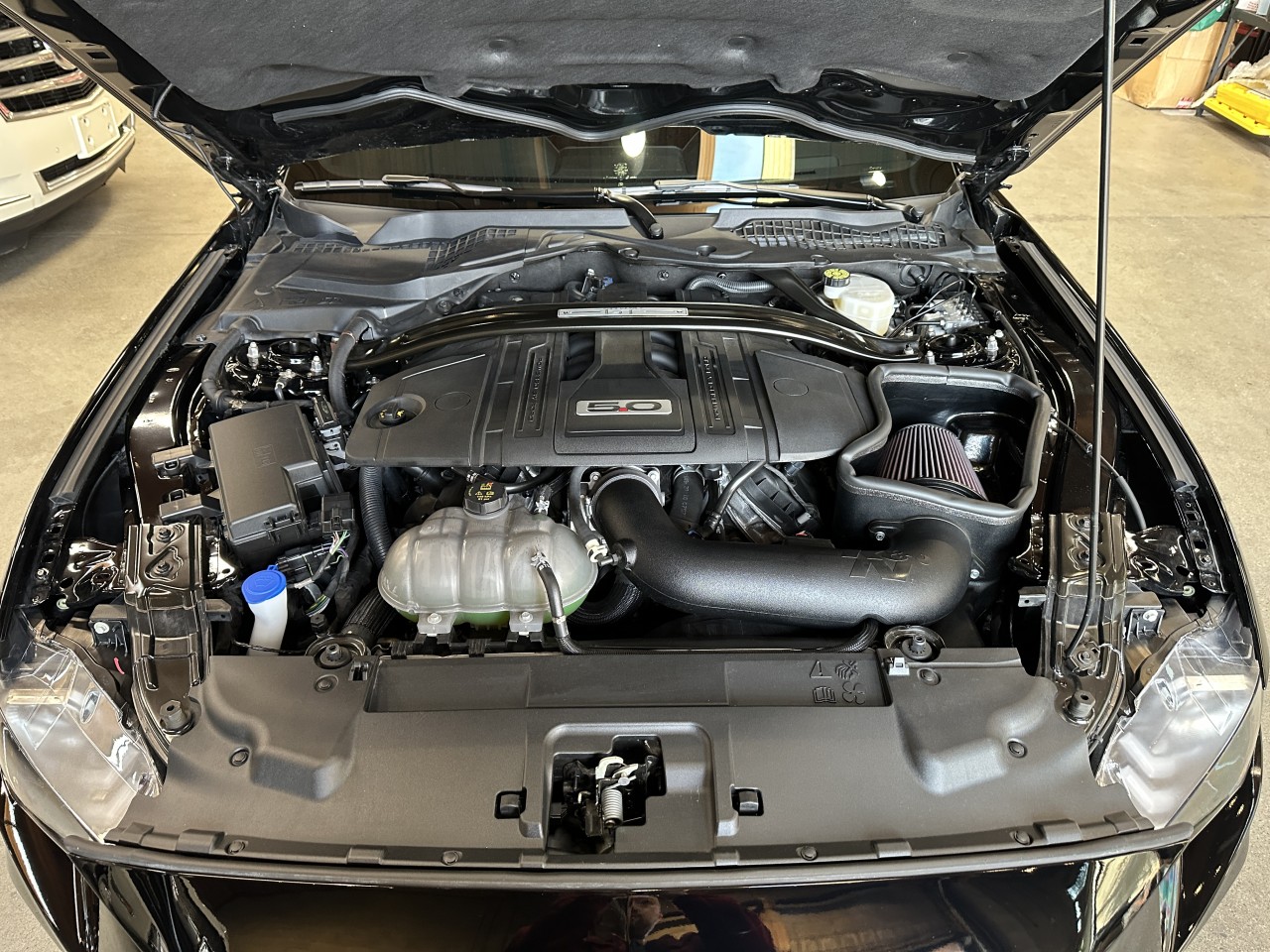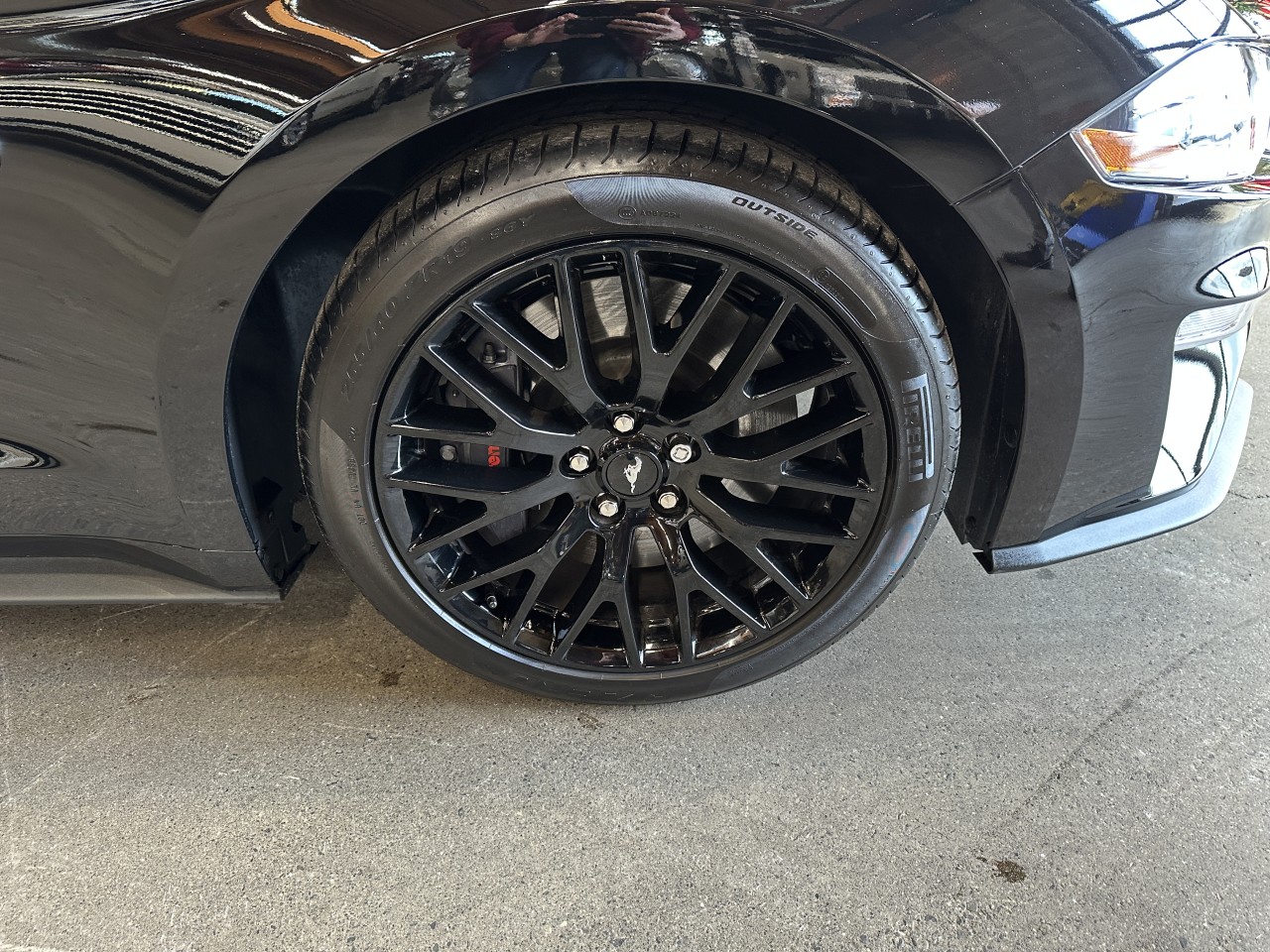 A local accident free Ford Mustang GT Premium Manual Fastback. Well equipped with Equipment group 401A High Package, Heated and ventilated power front leather seats, Dual zone climate control, Navigation, Satellite radio, Usb input, Bluetooth, Bluetooth audio, Steering wheel controls, Heated steering wheel, Tilt / telescopic steering wheel, Power windows, Power door locks, Power mirrors, Blind spot monitoring, Cross traffic alert, Lane keeping system, Active braking, Adaptive cruise control, Keyless touch entry and locking, Keyless push button ignition, Switchable steering feel / exhaust / driving mode, Gauge pack Oil pressure / Vacuum, Track apps, Launch control, Illuminated door sills, Back up camera, Parking sensors, LED Headlights, LED Running lights, LED Fog lights, K&N Intake system (Factory intake in trunk), Black painted strut-tower brace, Brembo 6 piston front brake calipers, 19" Ebony black alloy wheels. 5.0L V8 mated to a 6 speed manual transmission rated by the factory at 460hp / 420lb-ft. Balance of full factory warranty. Well maintained and just serviced. Leasing and financing available. All trades accepted.