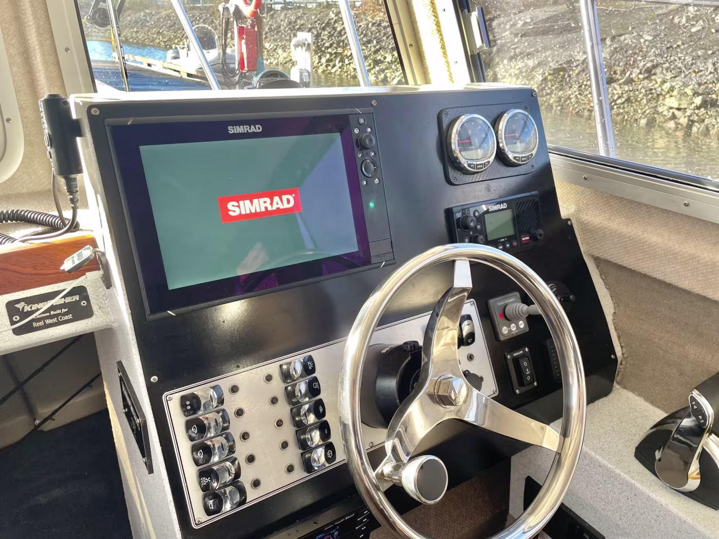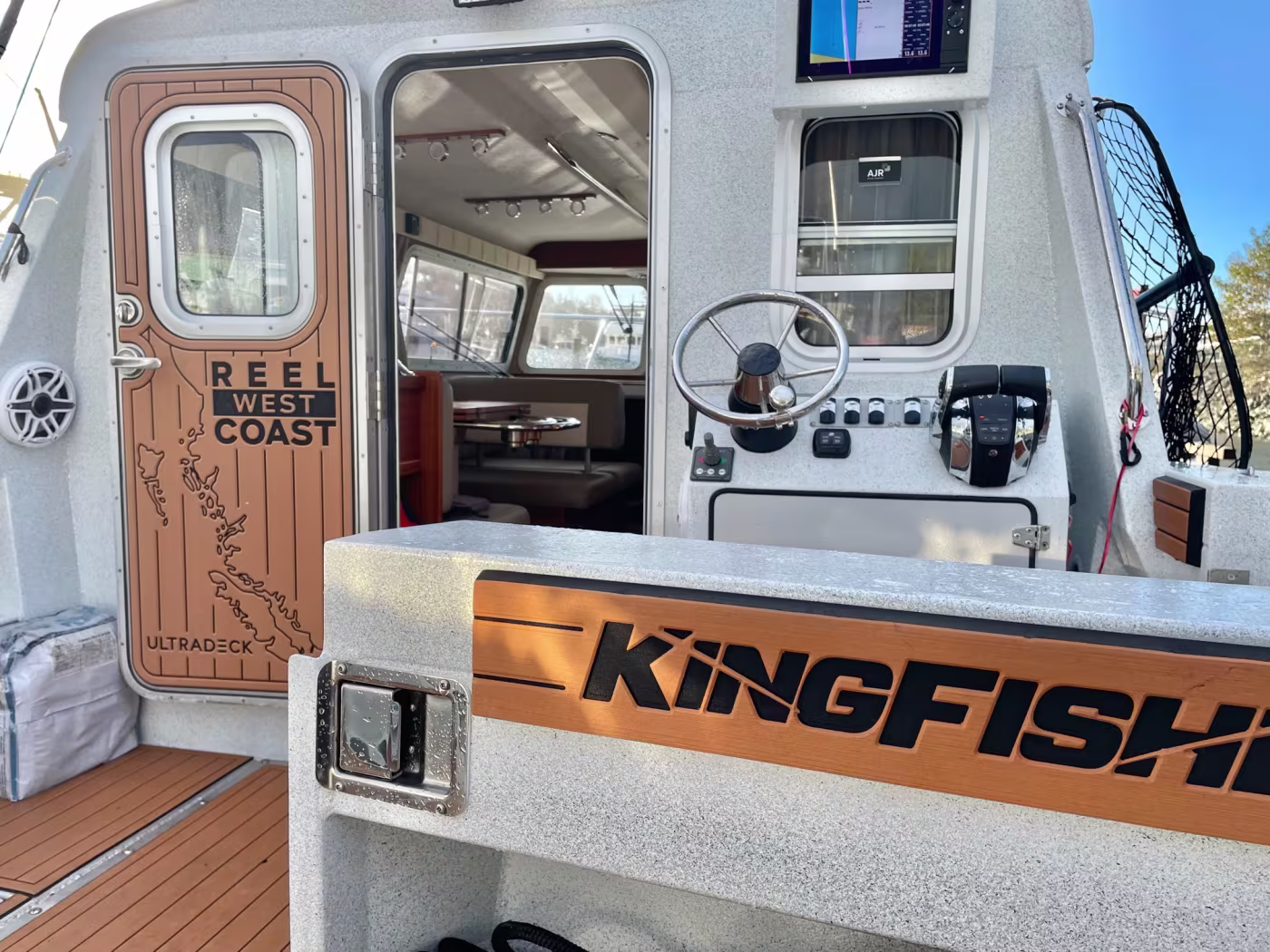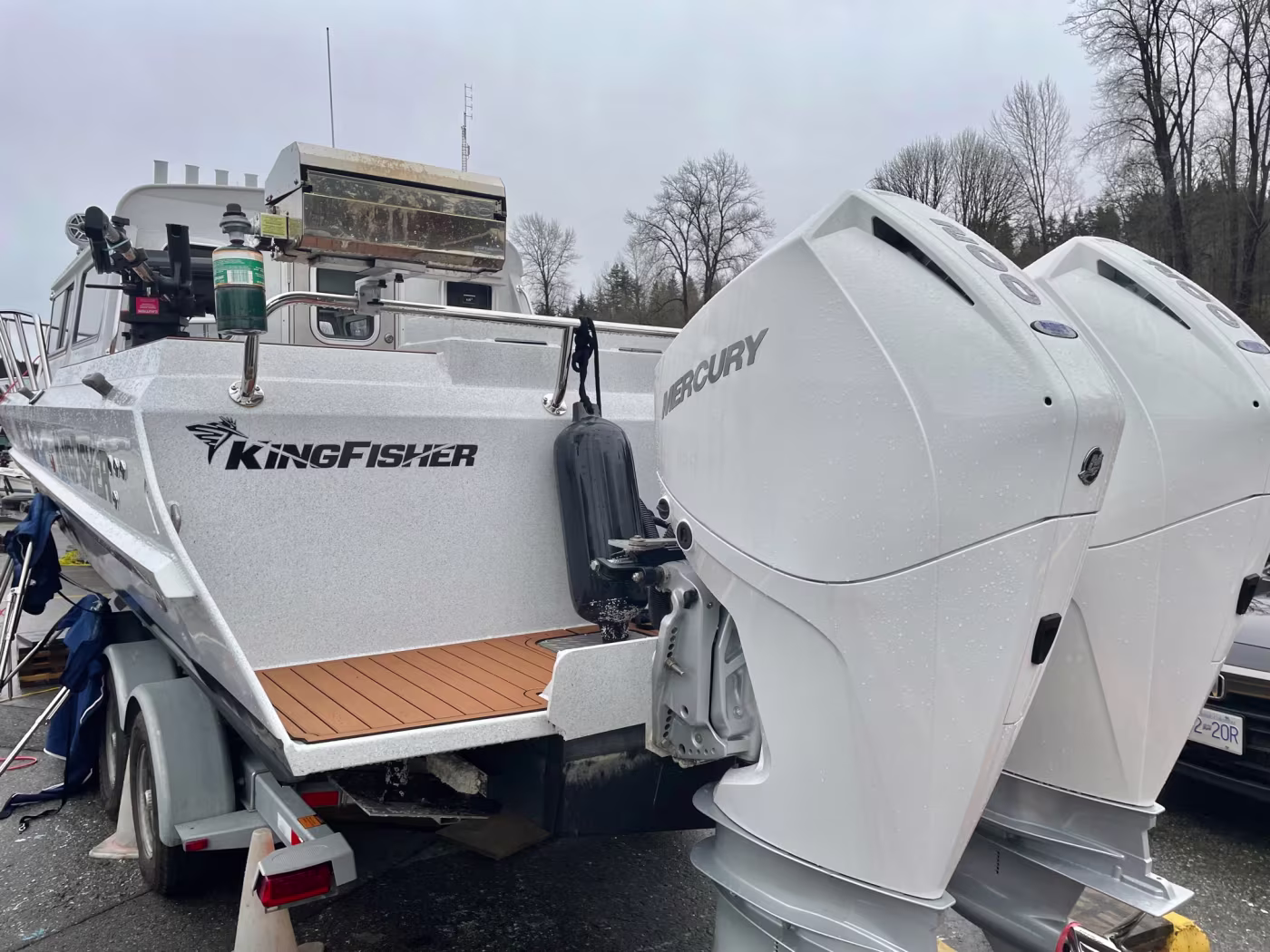 Fully loaded 2021 Kingfisher 3025 Destination. Custom built for Reel West Coast. Finished in Glacier White aluminum and twin cold fusion white Mercury engines. Featuring Corbin Shockwave S5 captain's chair, Dual helm Simrad electronics, Power windlass, Sidepower bow thruster, Highly upgraded JL Audio / Rockford Fosgate stereo, Folding wood dining table, Ultra deck flooring, Espar diesel heat, Enclosed head with electric toilet, Galley fridge and sink, Front bed area, Interior and exterior rod holders, Roof racks with kayak holders, Scotty down riggers, Cannon balls, Port and starboard fish boxes, Front and rear LED light bards, Updated with the finest fishing and cruising amenities, 2020 EZ Loader triple axle trailer included. Power is provided by twin Mercury 200XL DTS with 598 hours. Described as light and agile on the water – with a sleek profile that makes the 3025 Destination a dream boat. This boat and trailer package is ready to go fishing! Well maintained and just serviced. Leasing and financing available. All trades accepted.
