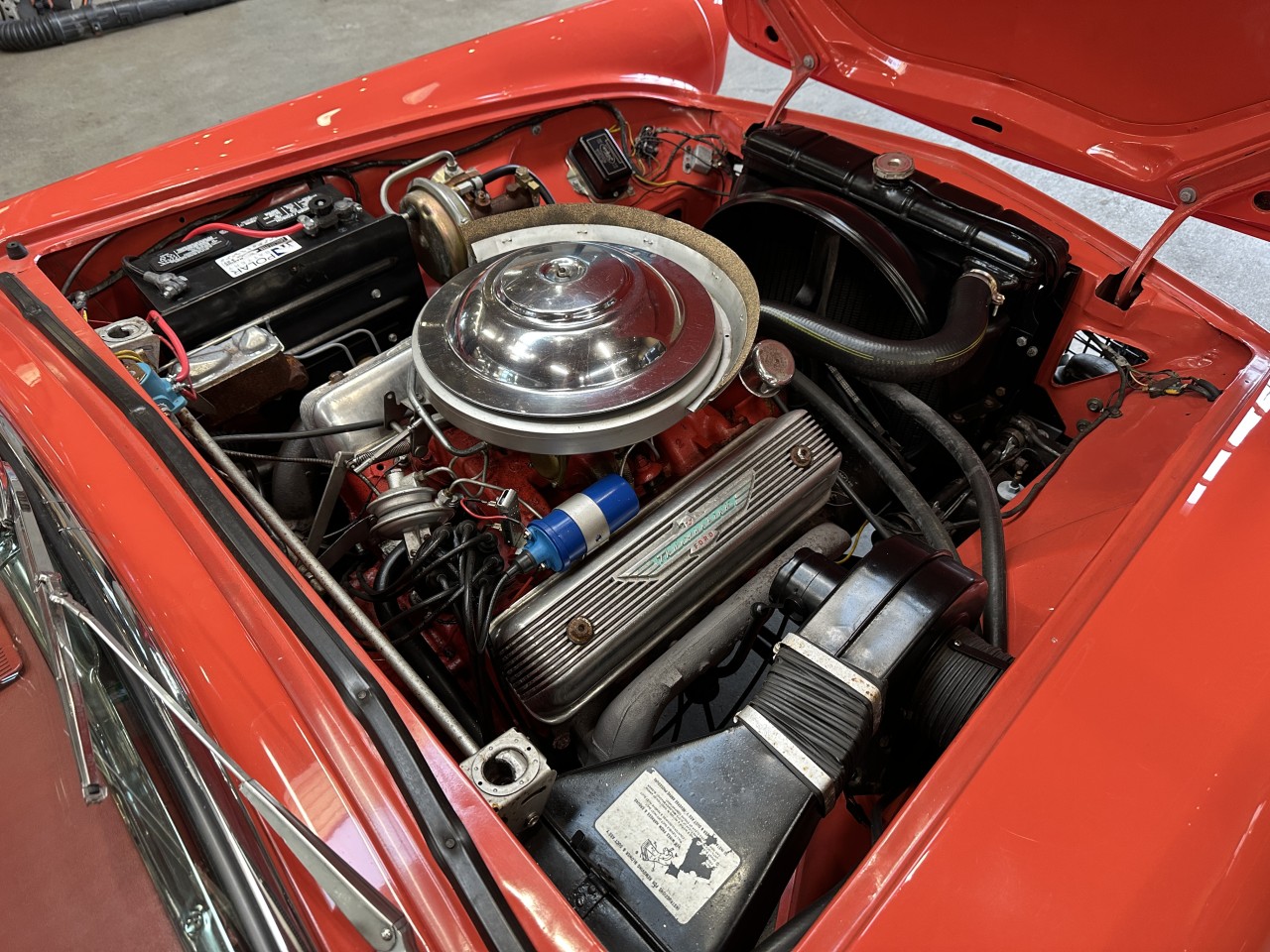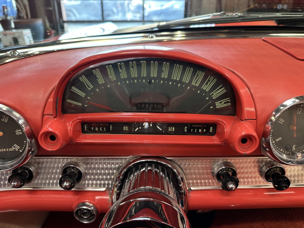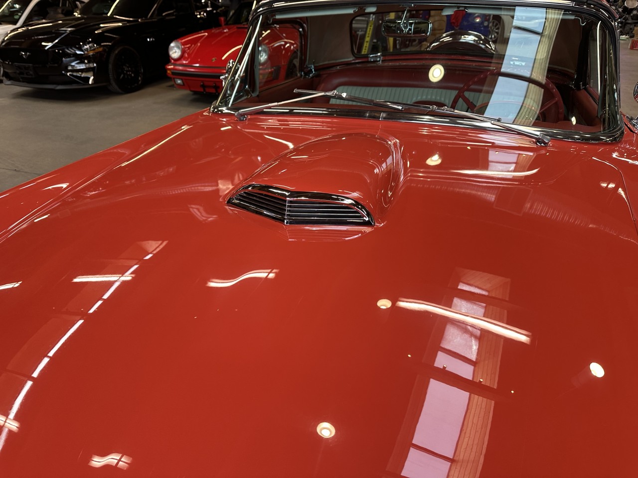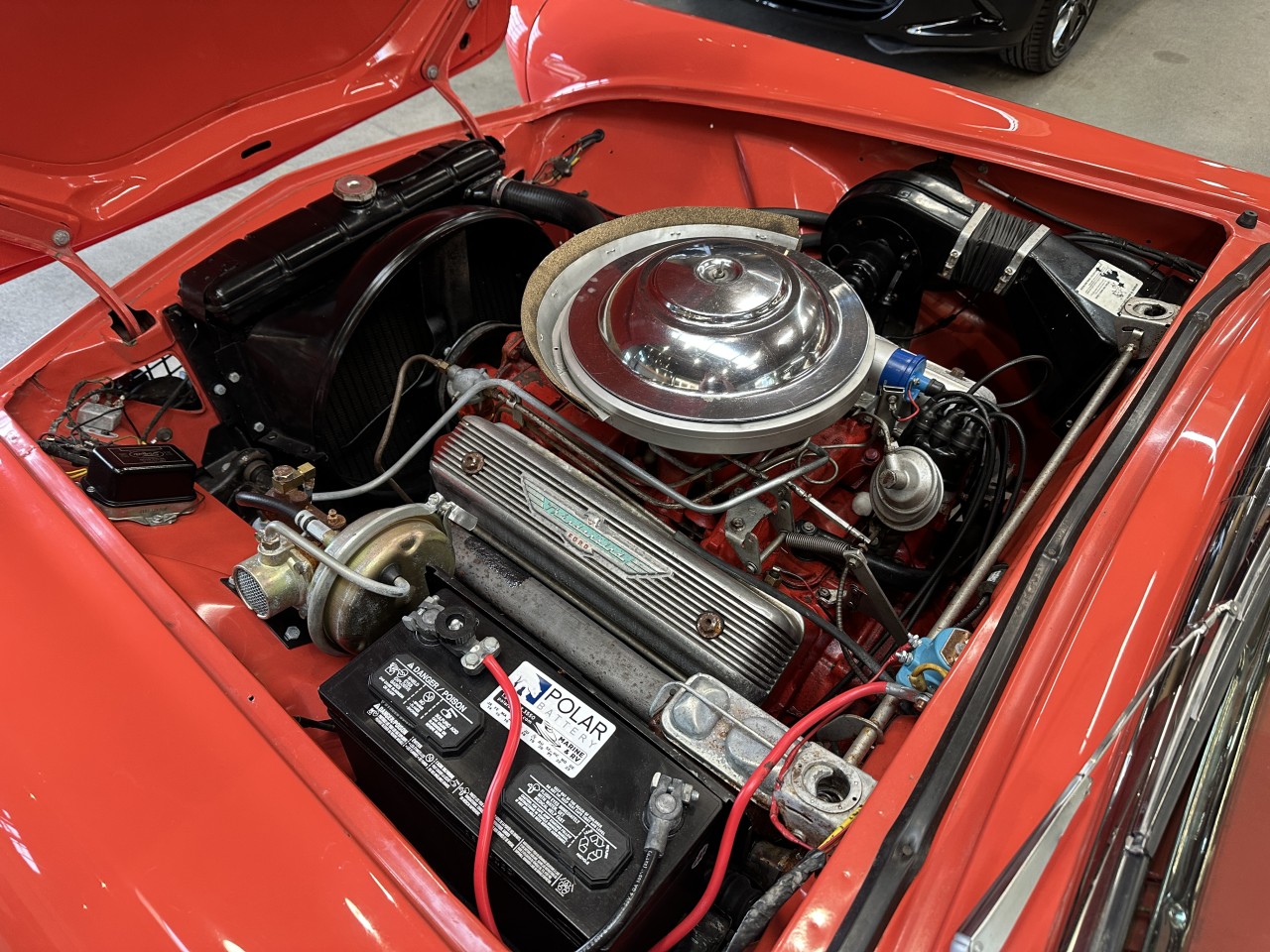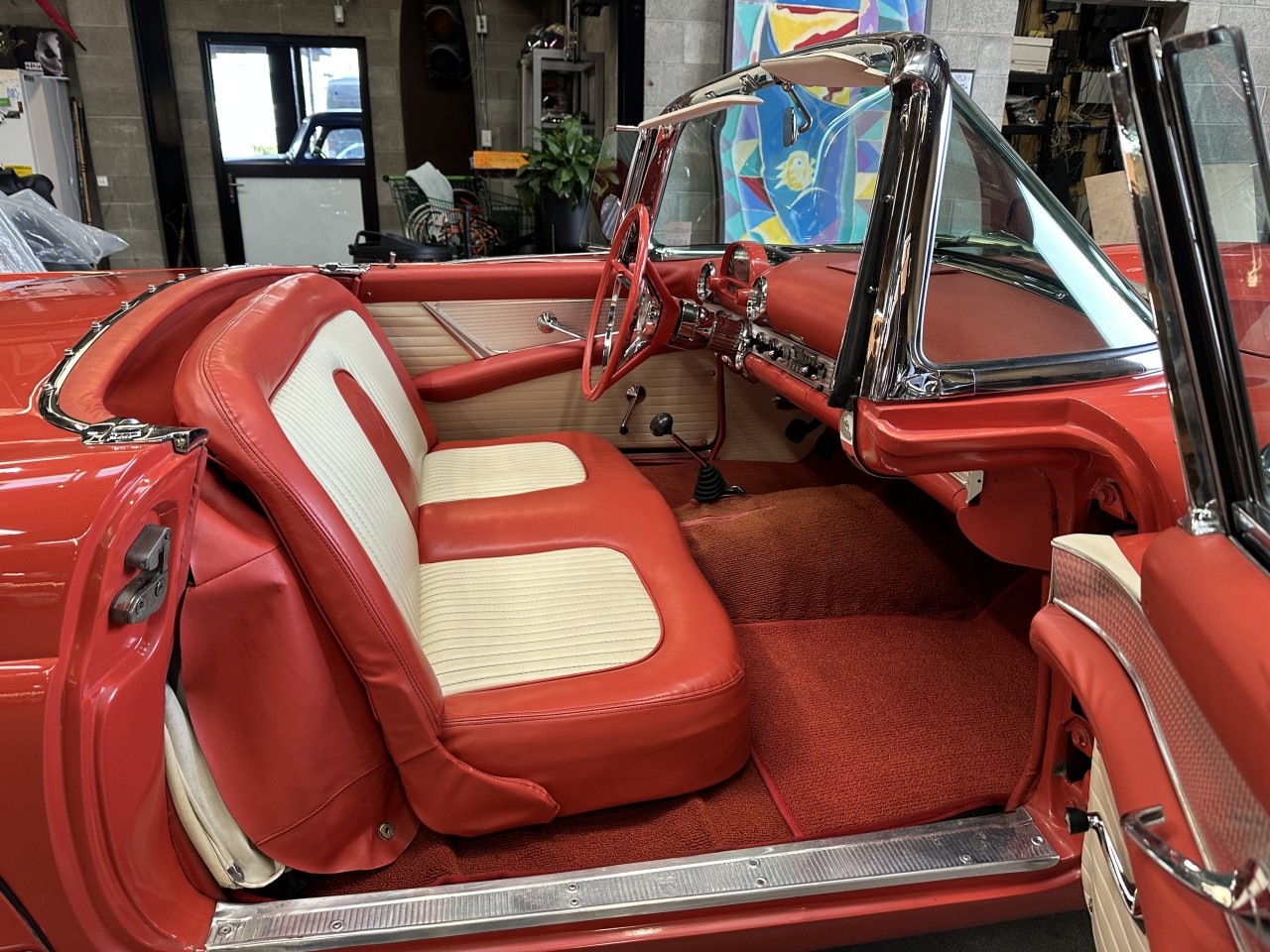 1956 Ford Thunderbird. Shows 2,600 Miles (5 Digit ODO). Well equipped with Red and white vinyl seat, Town and Country radio, Engine turned interior trim, Removable colour matched hard top, Chrome bumpers, Rear bumper with side exit exhaust, Body-colour Continental spare wheel assembly, Window wind wings, 15" Wheels with wire inserts. 292Ci V8 mated to a 3 speed manual transmission rated by the factory new at 202hp / 289lb-ft. Well maintained and just serviced. Leasing and financing available. All trades accepted.