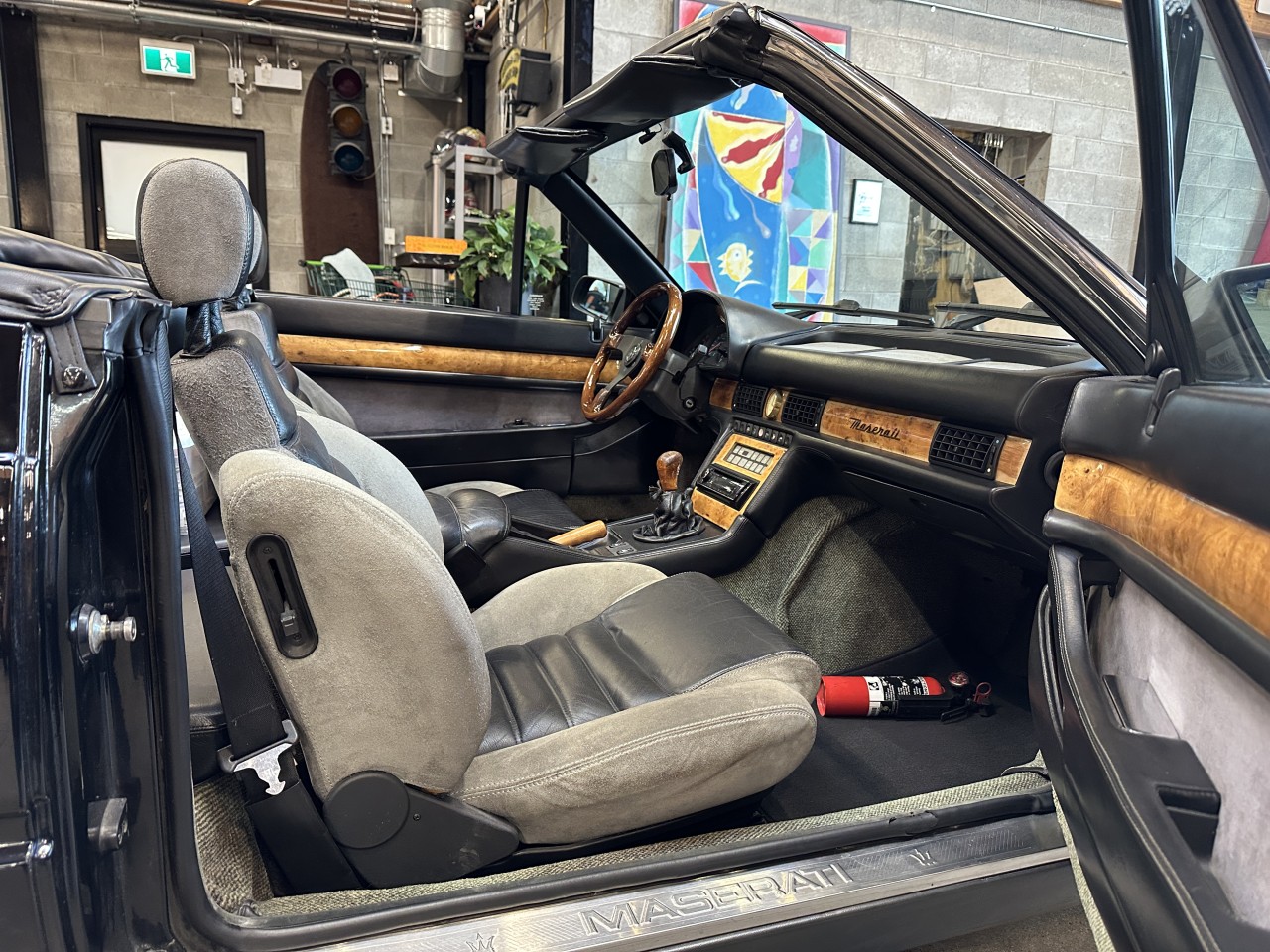 *Project* Car runs and drives well, it has no warning lights on in the dash. The top has a large rip in it (shown in pictures) and the exhaust sounds like it has a leak. The car has a box full of receipts for money spent on it. A local Maserati Biturbo Spyder 5-Speed. Well equipped with Black leather / grey alcantara front seats, Kenwood CD deck, Aux input, Usb input, Momo wood rimmed steering wheel, Power windows, Power mirrors, Air conditioning, Wood trim and shift knob, Fog lamps, 15" Alloy wheels. 2.8L Twin turbo V6 mated to a 5 speed manual transmission rated by the factory new at 225hp / 246lb-ft. Well maintained and just serviced. Leasing and financing available. All trades accepted.
