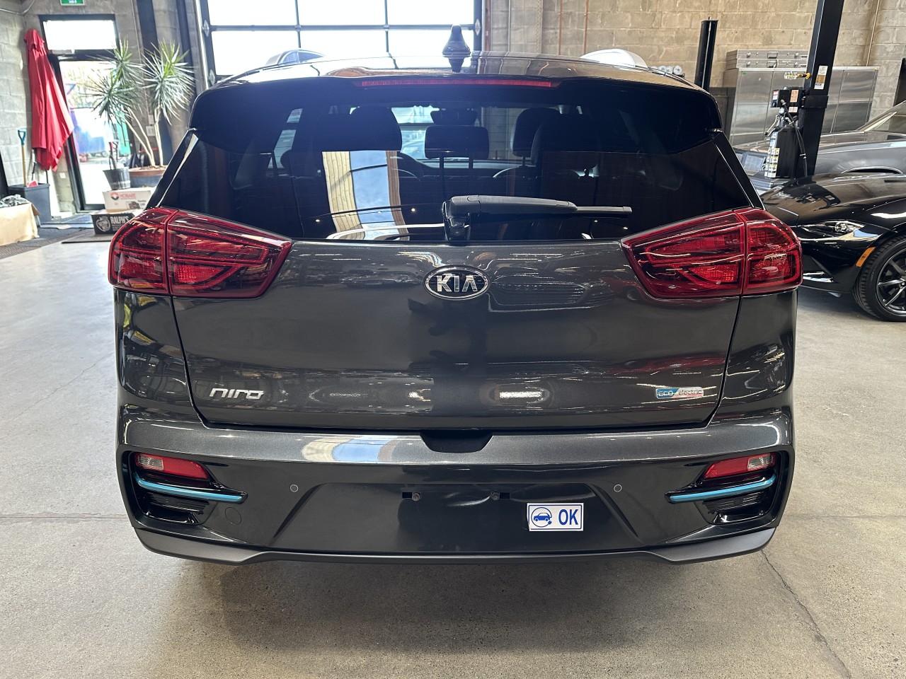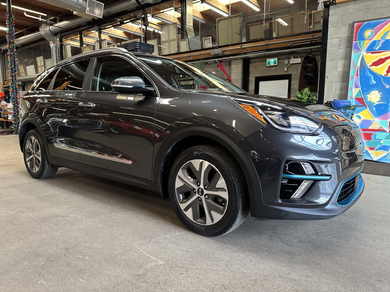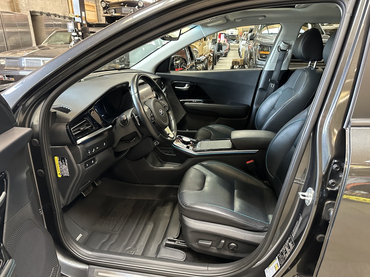 A local Kia Niro Electric SX Touring. Well equipped with Power driver's seat, Heated and ventilated front leather seats, Power tilt moonroof, Navigation, Harman Kardon premium audio system, Satellite radio, Usb input, Bluetooth, Bluetooth audio, Apple CarPlay, Android Auto, Steering wheel controls, Heated steering wheel, Tilt / telescopic steering wheel, Power windows, Power door locks, Power folding mirrors, Blind spot monitoring, Lane departure warning, Lane keeping assist, Forward collision-avoidance assist, Forward collision warning, Adaptive cruise control, Keyless touch entry and locking, Keyless push button ignition, All weather floor mats, Cargo cover, Back up camera, Front and rear parking sensors, LED Headlights, LED Running lights, Fog lamps, 17" Alloy wheels. Front PMSM 150-kW electric motor with a 64kWh lithium-ion battery rated by the factory at 201hp / 291lb-ft. Balance of factory warranty. Well maintained and just serviced. Leasing and financing available. All trades accepted.