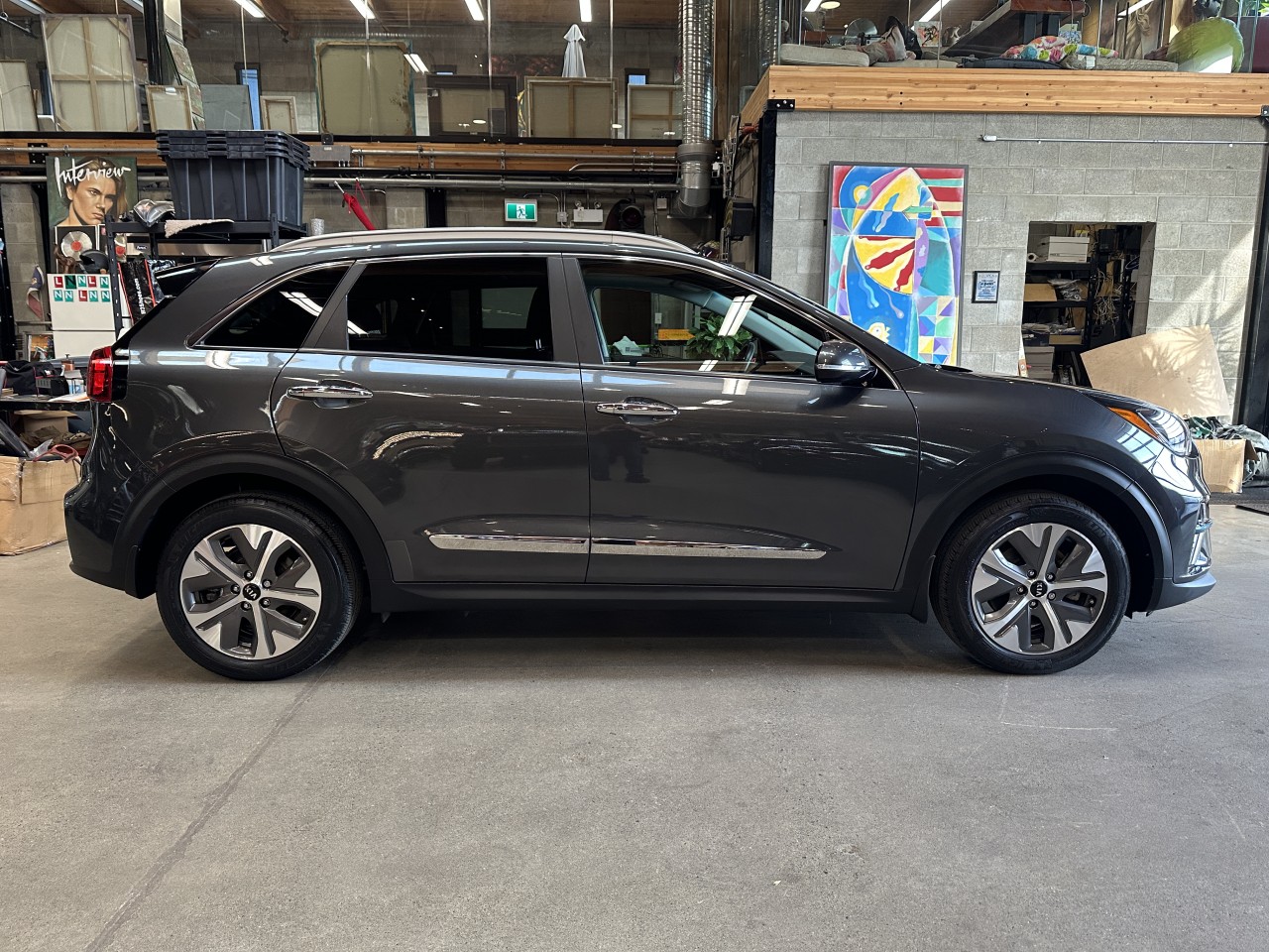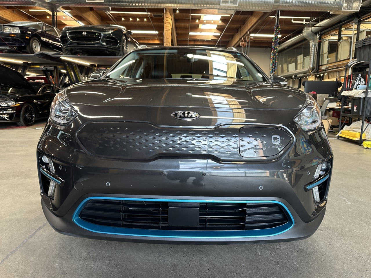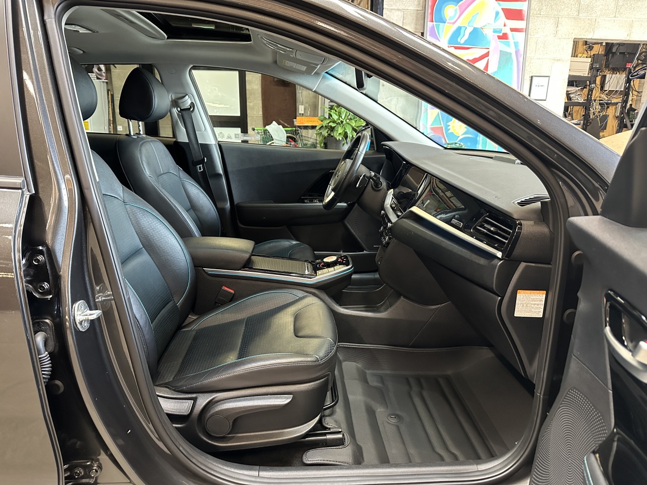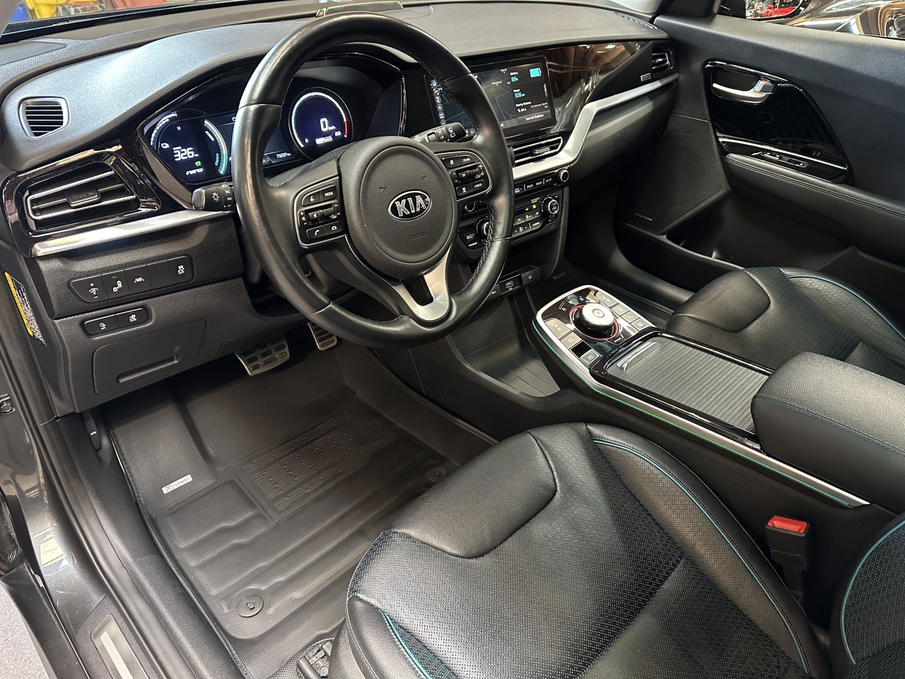 A local Kia Niro Electric SX Touring. Well equipped with Power driver's seat, Heated and ventilated front leather seats, Power tilt moonroof, Navigation, Harman Kardon premium audio system, Satellite radio, Usb input, Bluetooth, Bluetooth audio, Apple CarPlay, Android Auto, Steering wheel controls, Heated steering wheel, Tilt / telescopic steering wheel, Power windows, Power door locks, Power folding mirrors, Blind spot monitoring, Lane departure warning, Lane keeping assist, Forward collision-avoidance assist, Forward collision warning, Adaptive cruise control, Keyless touch entry and locking, Keyless push button ignition, All weather floor mats, Cargo cover, Back up camera, Front and rear parking sensors, LED Headlights, LED Running lights, Fog lamps, 17" Alloy wheels. Front PMSM 150-kW electric motor with a 64kWh lithium-ion battery rated by the factory at 201hp / 291lb-ft. Balance of factory warranty. Well maintained and just serviced. Leasing and financing available. All trades accepted.