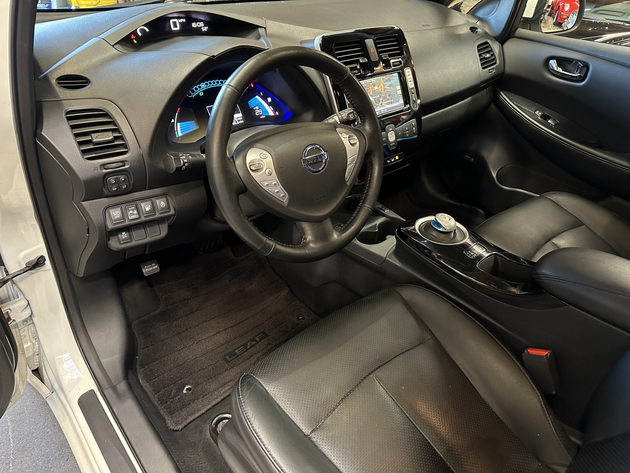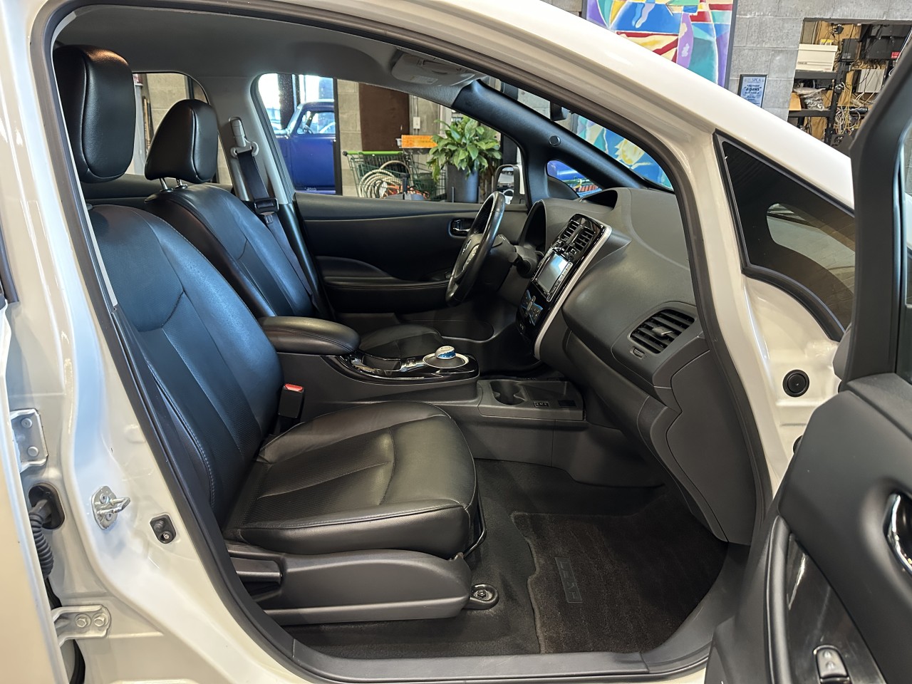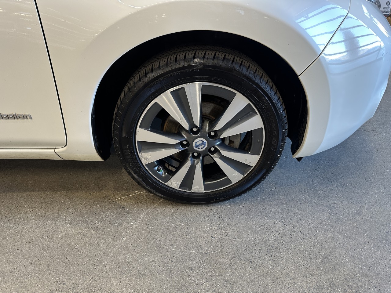 Other features: • Nissan Navigation System with 7-inch touch-screen monitor • Pandora® radio capability (iPhone® only) • 6.6 kW onboard charger • Hybrid heater system • Steering wheel-mounted cruise control • Auto-dimming rearview mirror • Front passenger seatback map pocket • B-mode regenerative braking system 80 kW AC synchronous electric motor • 24 kWh lithium-ion (Li-ion) battery • Zero Emissions Vehicle (ZEV) • • Vehicle Dynamic Control (VDC) with Traction Control System (TCS) • Portable trickle-charge cable • Normal charge port • Charge port light and lock • Nissan Intelligent Key® with Push Button Start • Heated front and rear seats • Heated leather-wrapped steering wheel • Automatic Temperature Control (ATC) • 60/40 Split fold-down rear seats with rear seat heater ducts • Bluetooth® Hands-free Phone System • USB connection port for iPod® and other compatible devices • Rear spoiler • Six standard air bags • Tire Pressure Monitoring System (TPMS) with Easy-Fill Tire Alert.