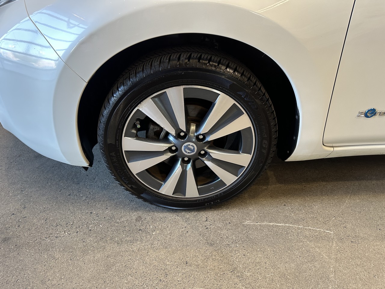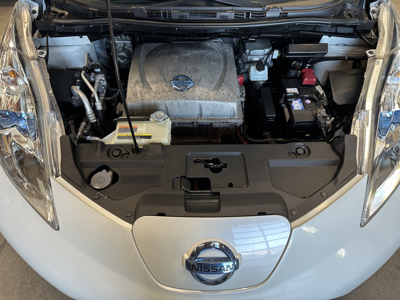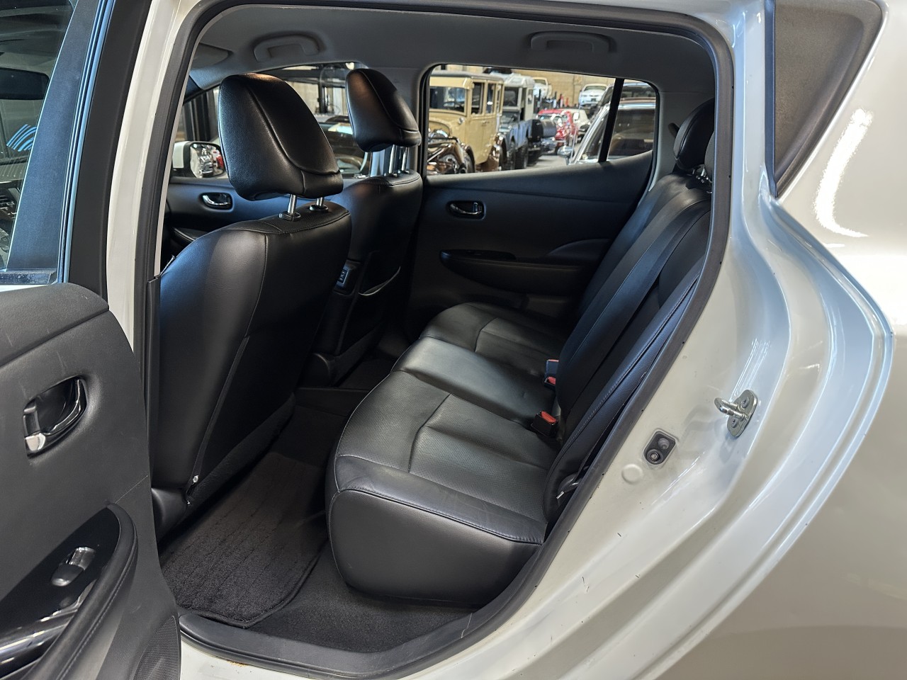 Other features: • Nissan Navigation System with 7-inch touch-screen monitor • Pandora® radio capability (iPhone® only) • 6.6 kW onboard charger • Hybrid heater system • Steering wheel-mounted cruise control • Auto-dimming rearview mirror • Front passenger seatback map pocket • B-mode regenerative braking system 80 kW AC synchronous electric motor • 24 kWh lithium-ion (Li-ion) battery • Zero Emissions Vehicle (ZEV) • • Vehicle Dynamic Control (VDC) with Traction Control System (TCS) • Portable trickle-charge cable • Normal charge port • Charge port light and lock • Nissan Intelligent Key® with Push Button Start • Heated front and rear seats • Heated leather-wrapped steering wheel • Automatic Temperature Control (ATC) • 60/40 Split fold-down rear seats with rear seat heater ducts • Bluetooth® Hands-free Phone System • USB connection port for iPod® and other compatible devices • Rear spoiler • Six standard air bags • Tire Pressure Monitoring System (TPMS) with Easy-Fill Tire Alert.