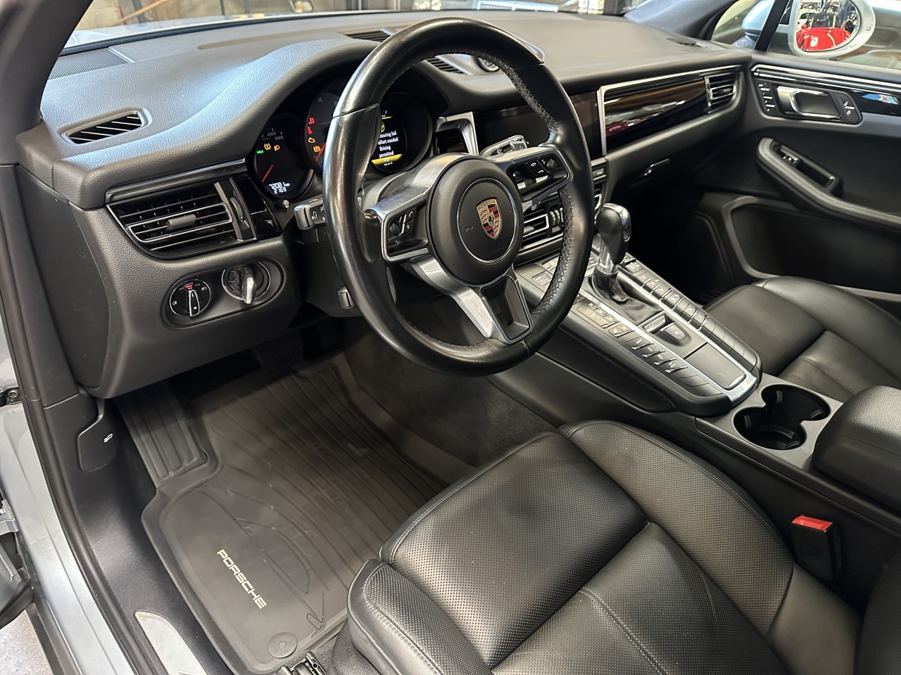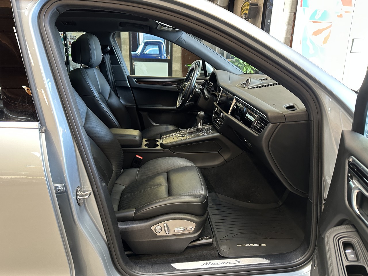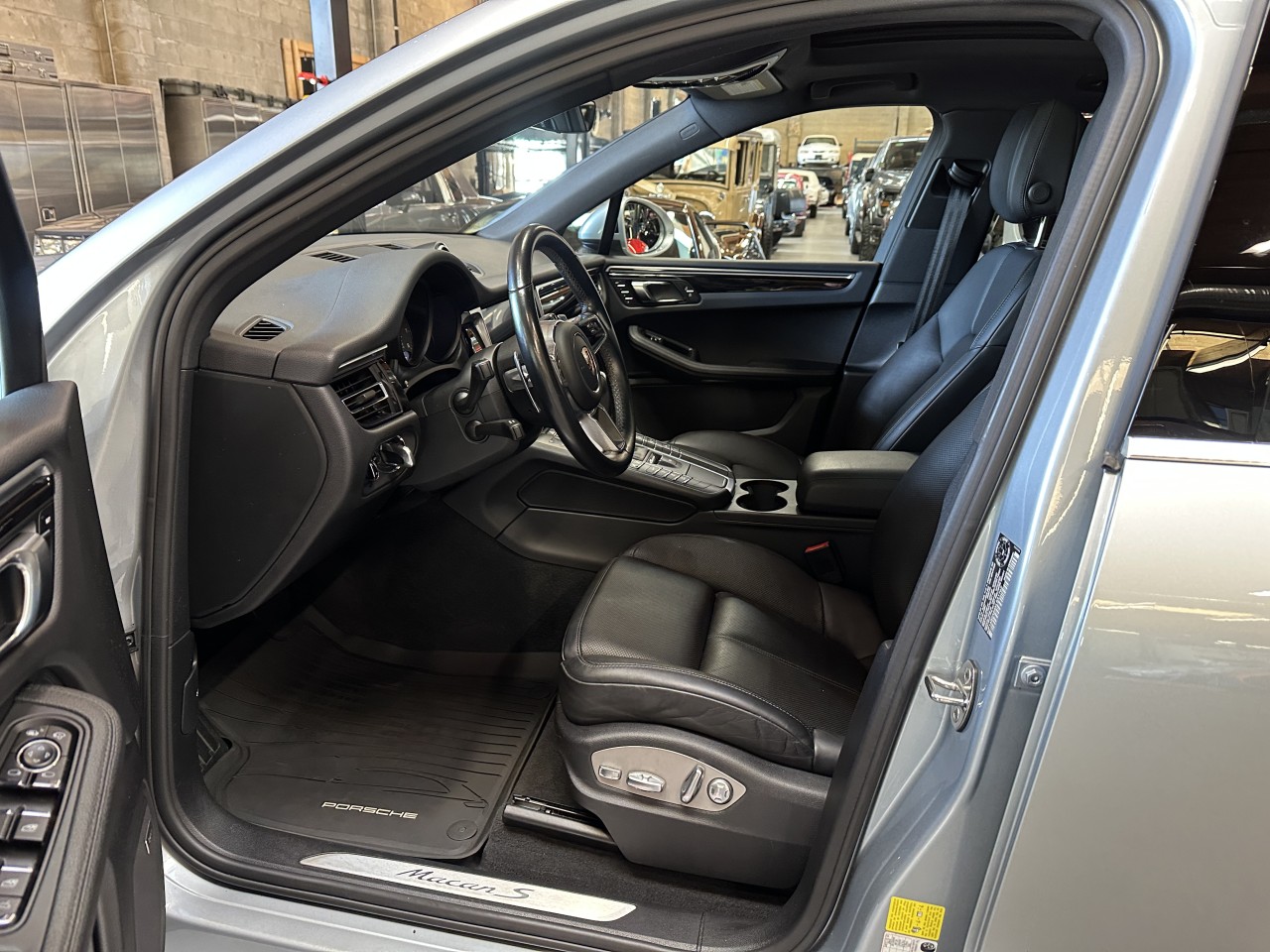 A local accident free Porsche Macan S AWD. Well equipped with Premium Package Plus, Heated and ventilated 14-way power front memory seats, Heated rear seats, Dual zone climate control, Panoramic moonroof, Navigation, Bose premium audio system, Satellite radio, Bluetooth, Bluetooth audio, Apple CarPlay, Android Auto, Steering wheel controls, Heated steering wheel, Power tilt / telescopic steering wheel, Paddle shifters, Power windows, Power door locks, Power folding mirrors, Lane change assist, Lane departure warning, Cruise control, Keyless touch entry and locking, Keyless ignition, Porsche Active Suspension Management (PASM), Power steering plus, All weather floor mats, Cargo mat, Power tailgate, 360 Degree cameras with 6 view modes, Front and rear parking sensors, Sideblades in exterior colour, LED Headlights, LED Running lights, 21" Sport classic wheels in platinum satin.
