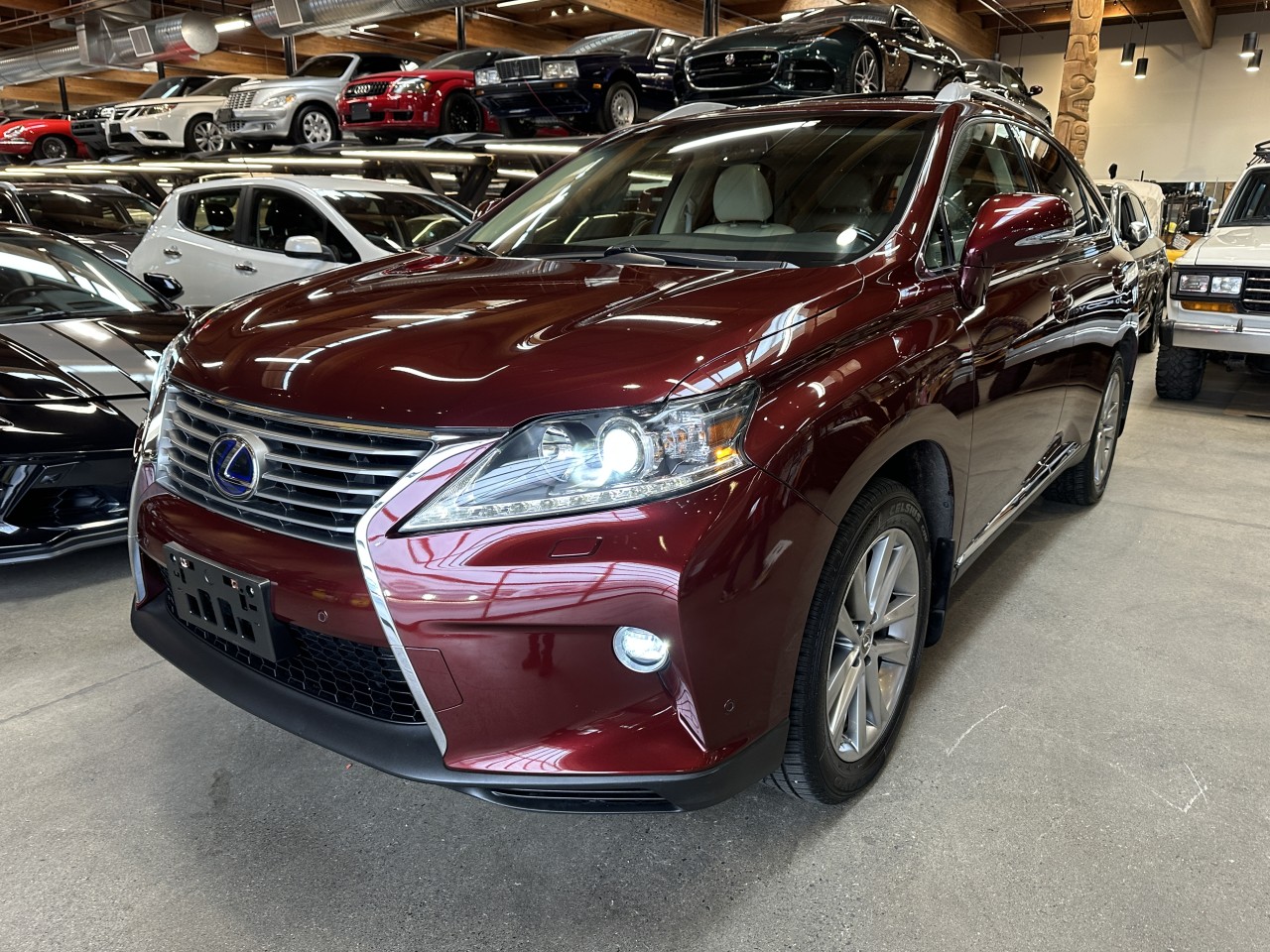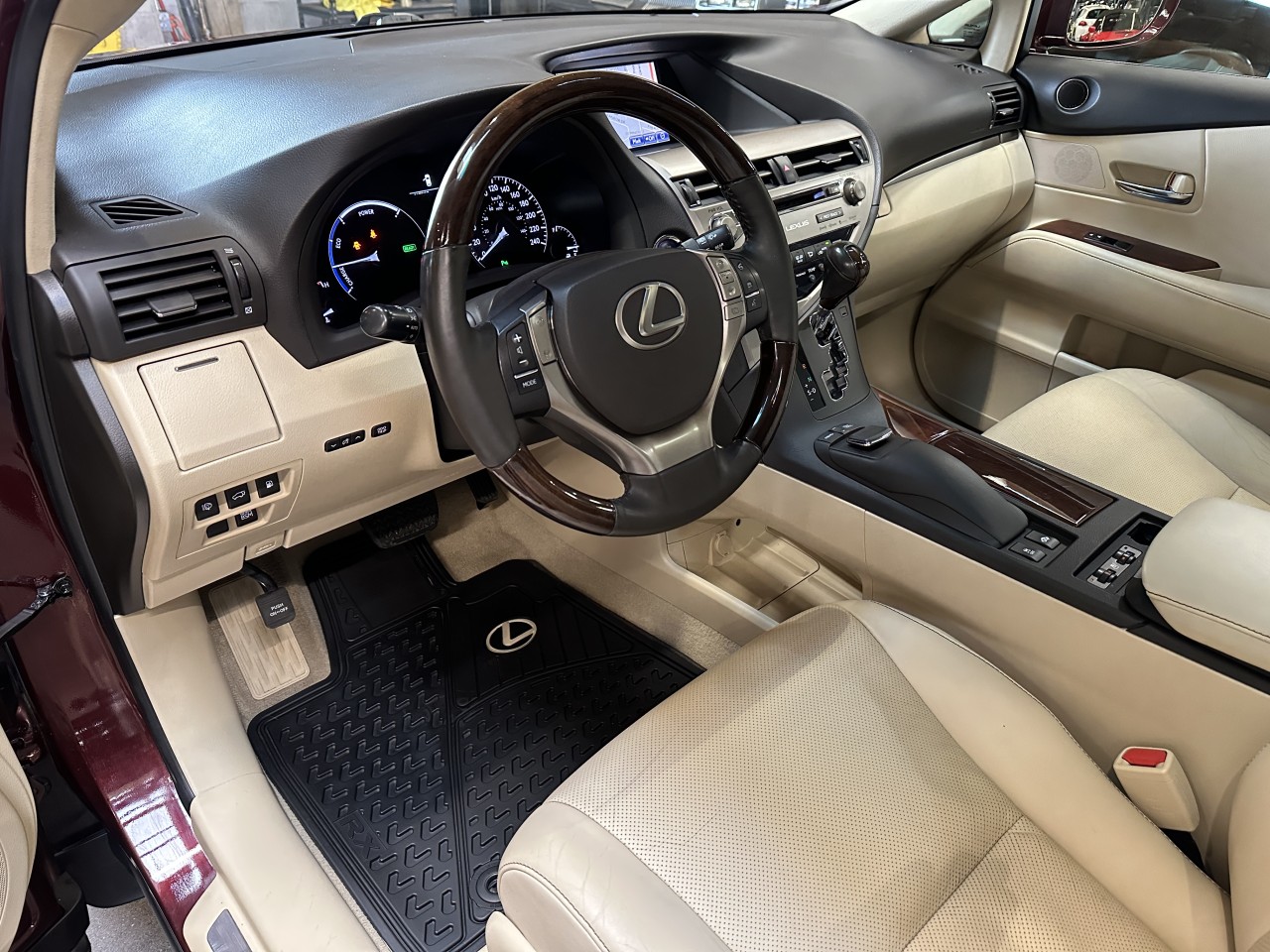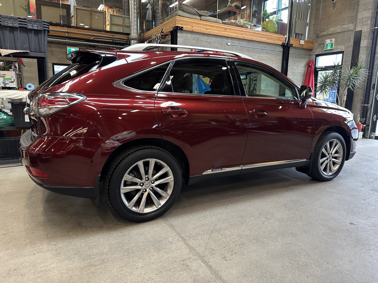 A local Lexus RX 450h AWD. Well equipped with Heated and ventilated power front leather seats, Dual zone climate control, Power tilt moonroof, Navigation, Lexus sound with CD player, Satellite radio, Aux input, Usb input, Bluetooth, Bluetooth audio, Steering wheel controls, Power tilt / telescopic steering wheel, Power windows, Power door locks, Power folding mirrors, Blind spot monitoring, Cruise control, Keyless touch entry and locking, Keyless push button ignition, Wood trim and steering wheel, Carpet and all weather floor mats, Cargo mat, Cargo cover, Power tailgate, Back up camera, Front and rear parking sensors, Trailer hitch, Roof racks, Bi-xenon headlamps, LED Running lights, LED Fog lights, Headlamp washing system, 19" Alloy wheels. 3.5L V6 gas / electric hybrid mated to a continuously variable transmission rated by the factory at 295hp / 234lb-ft. A 1 year warranty is included in the purchase price of this vehicle. Well maintained and just fully serviced by Regency Lexus. Leasing and financing available. All trades accepted.