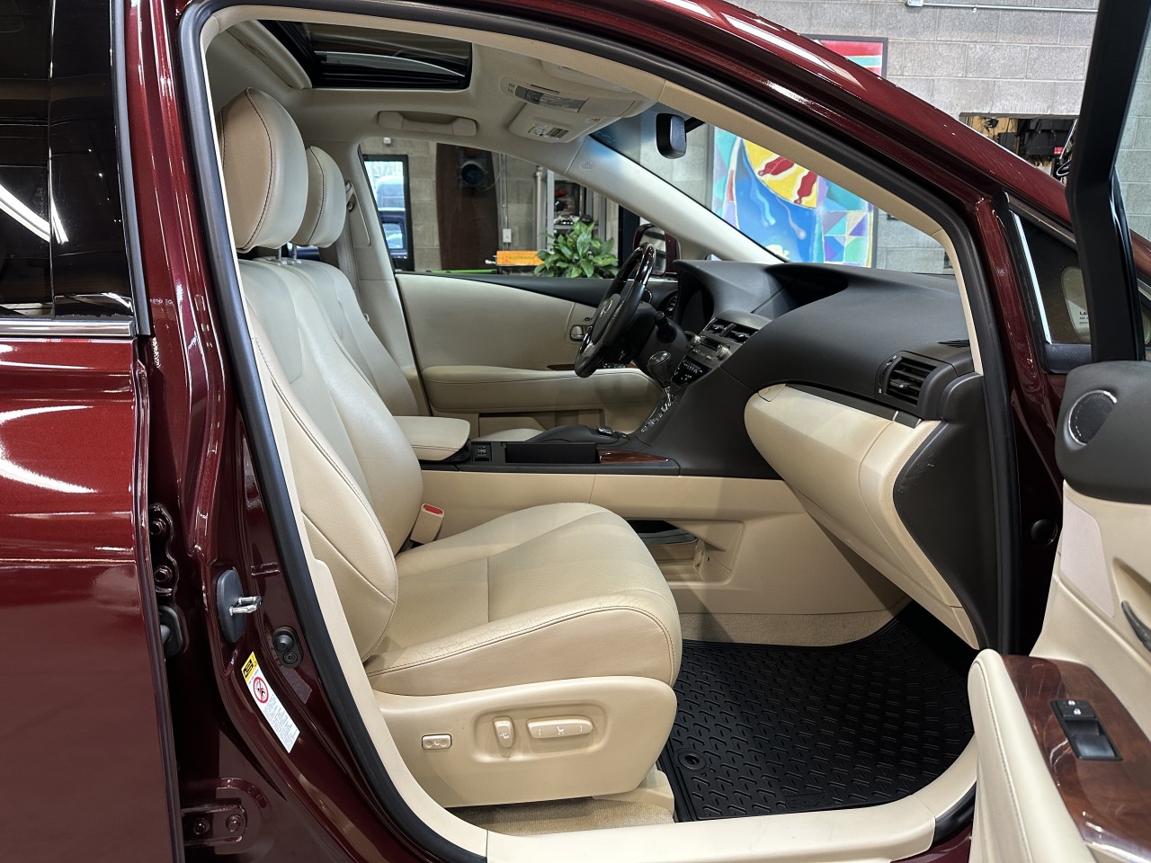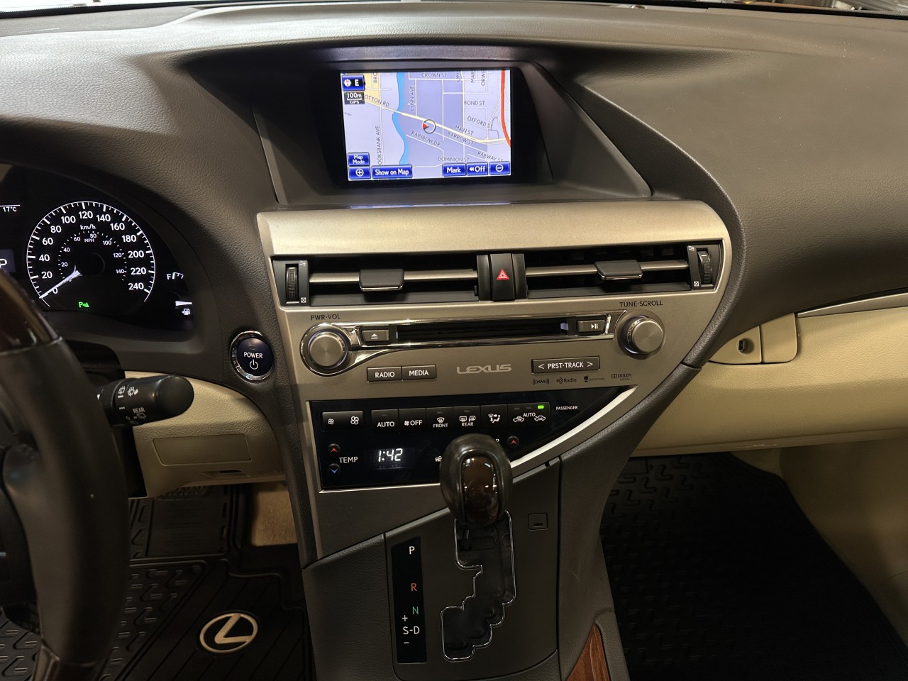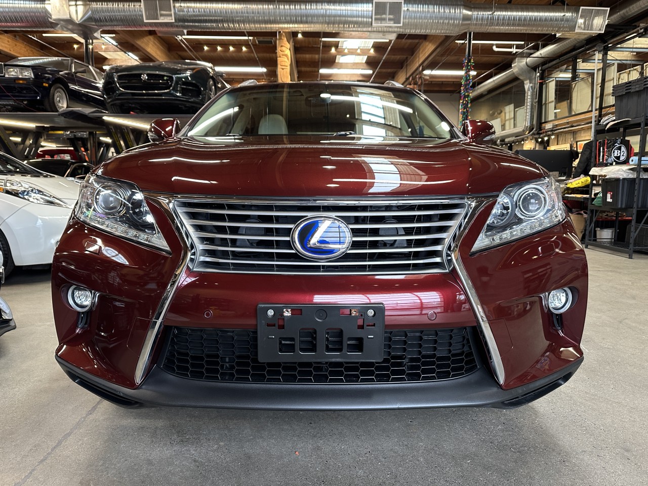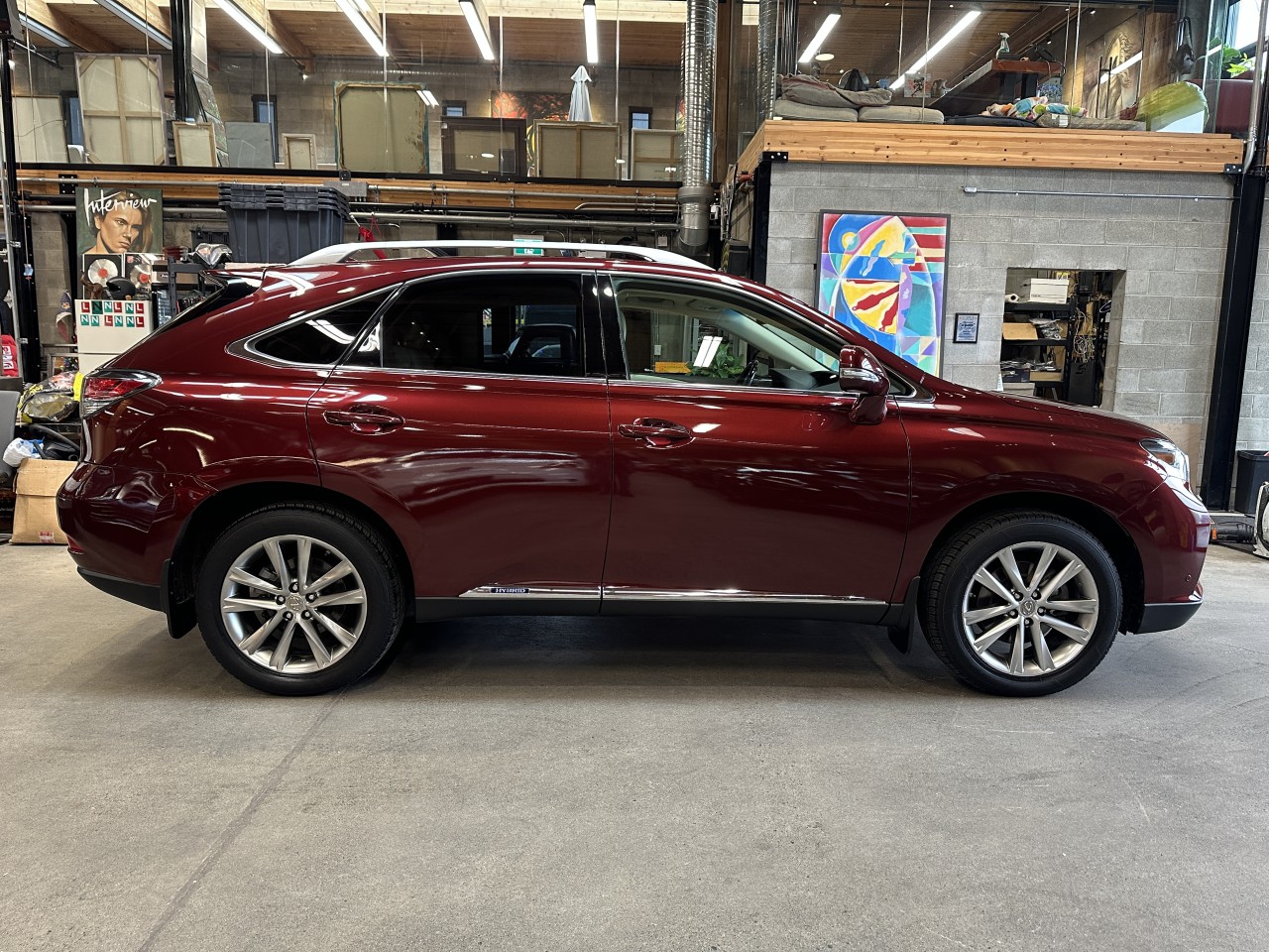 A local Lexus RX 450h AWD. Well equipped with Heated and ventilated power front leather seats, Dual zone climate control, Power tilt moonroof, Navigation, Lexus sound with CD player, Satellite radio, Aux input, Usb input, Bluetooth, Bluetooth audio, Steering wheel controls, Power tilt / telescopic steering wheel, Power windows, Power door locks, Power folding mirrors, Blind spot monitoring, Cruise control, Keyless touch entry and locking, Keyless push button ignition, Wood trim and steering wheel, Carpet and all weather floor mats, Cargo mat, Cargo cover, Power tailgate, Back up camera, Front and rear parking sensors, Trailer hitch, Roof racks, Bi-xenon headlamps, LED Running lights, LED Fog lights, Headlamp washing system, 19" Alloy wheels. 3.5L V6 gas / electric hybrid mated to a continuously variable transmission rated by the factory at 295hp / 234lb-ft. A 1 year warranty is included in the purchase price of this vehicle. Well maintained and just fully serviced by Regency Lexus. Leasing and financing available. All trades accepted.