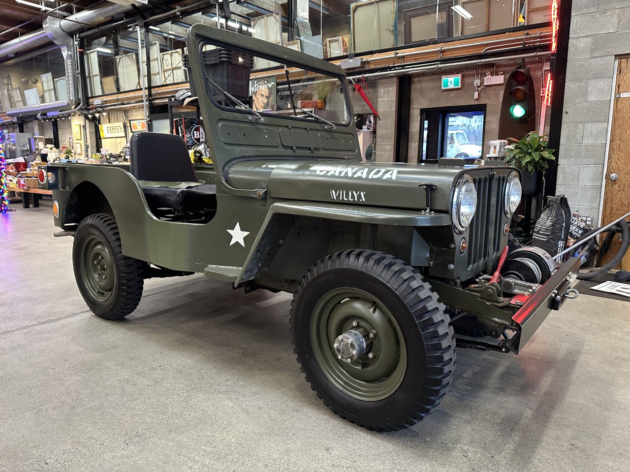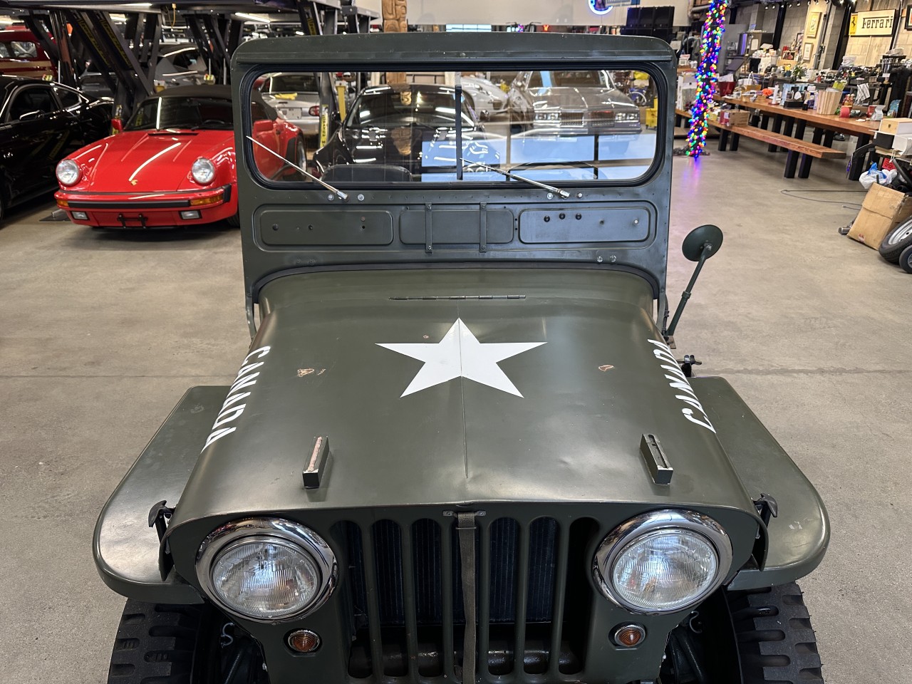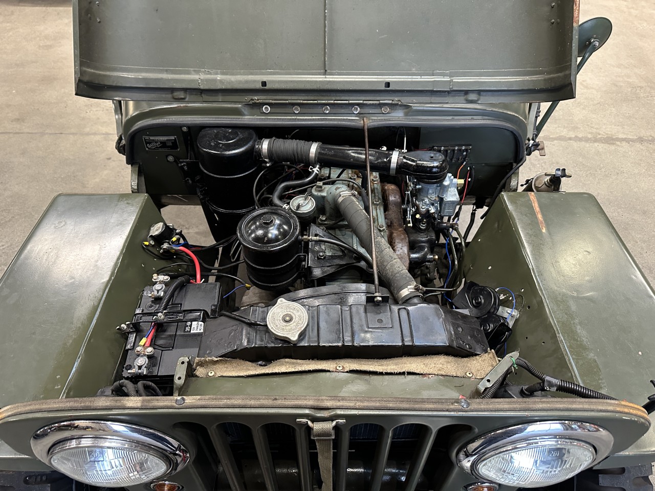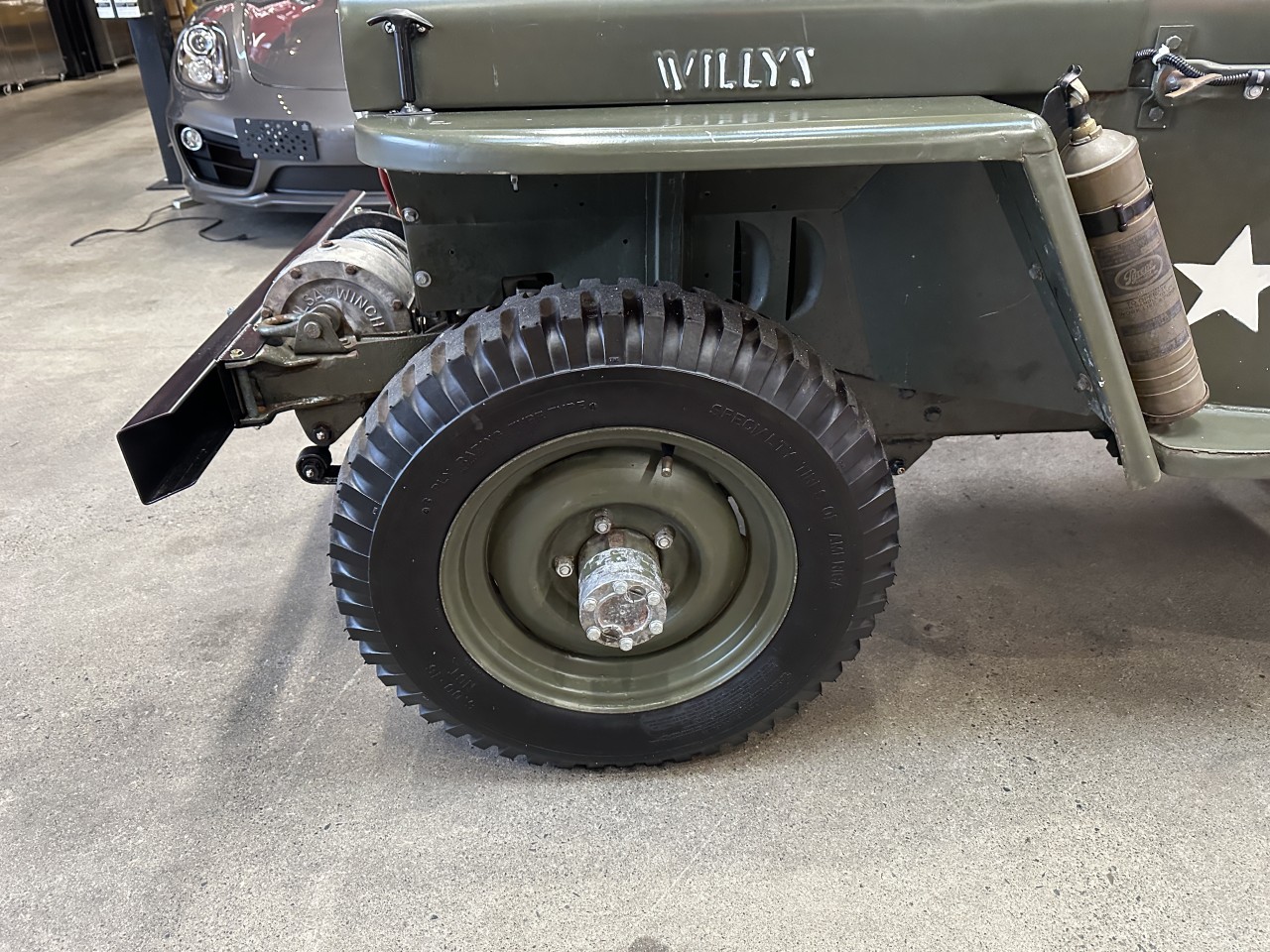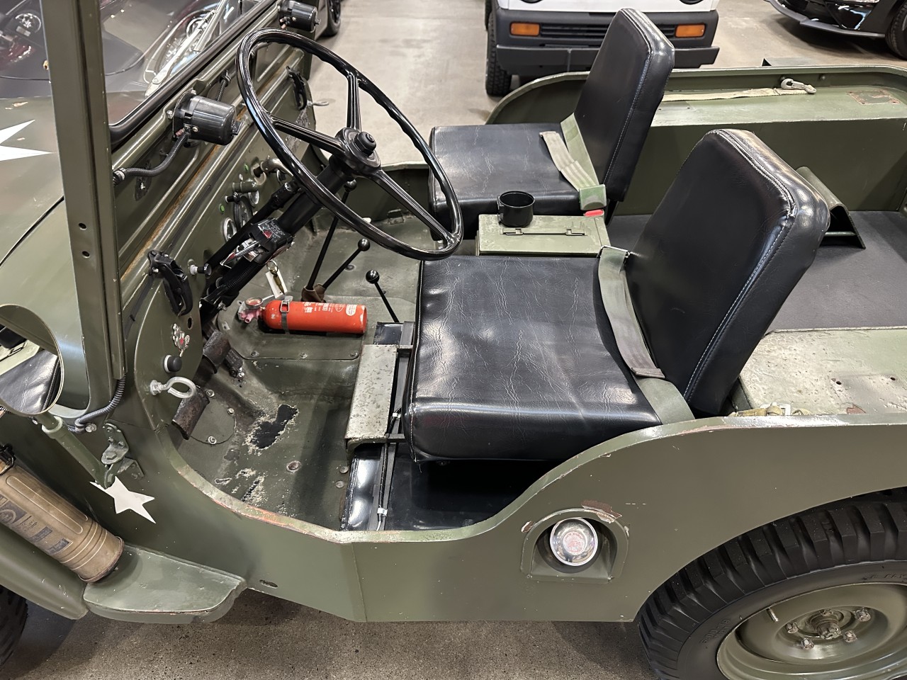 1946 Willys-Overland CJ-2A. 52,200 Miles Shown (5 Digit ODO). Featuring Twin front seats, Windshield wipers, Custom winch mount front bumper, Tulsa 8000LB winch, Dual tail lights, Turn signals, Folding front windshield, Single side mirror, Drop-down tailgate, Dual range transfer case, Green 16" wheels. 135Ci L-head inline 4 cylinder mated to a 3 on the tree manual transmission rated by the factory new at 60hp / 106lb-ft.