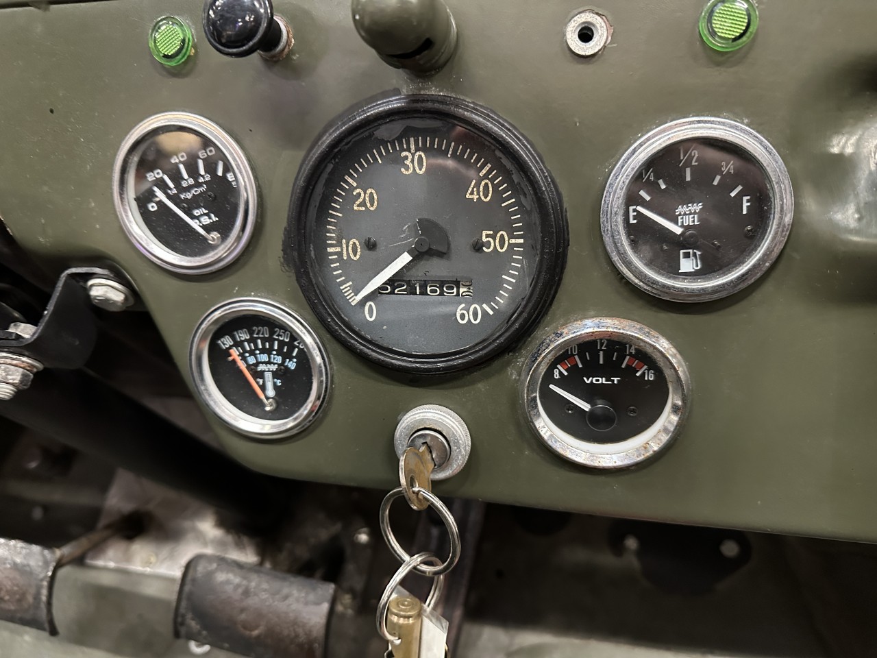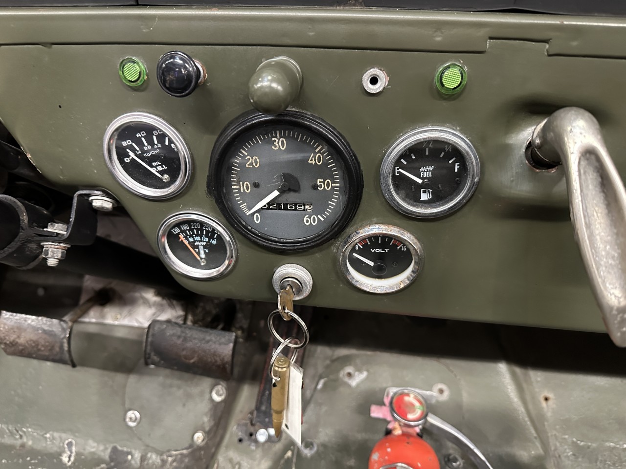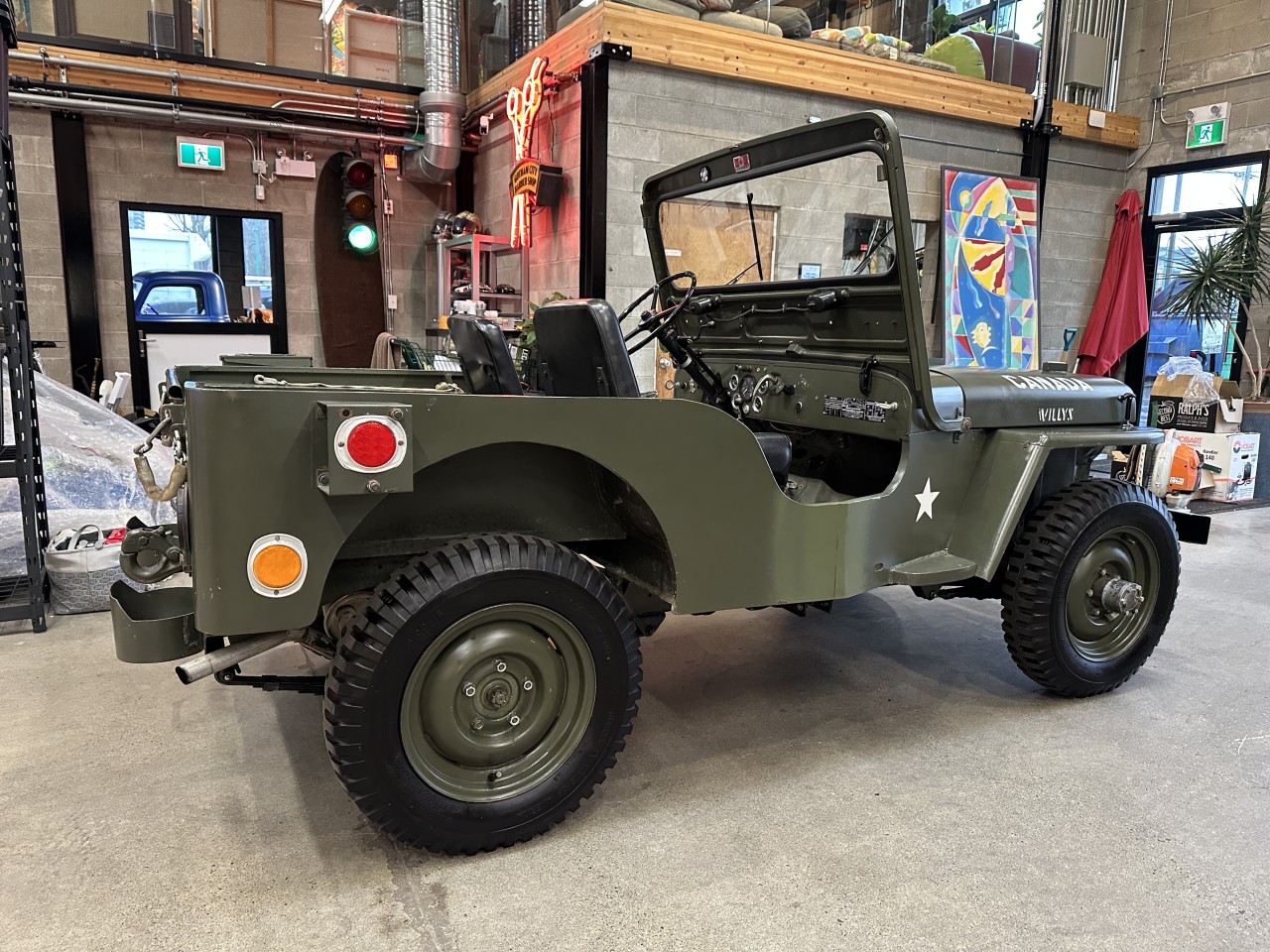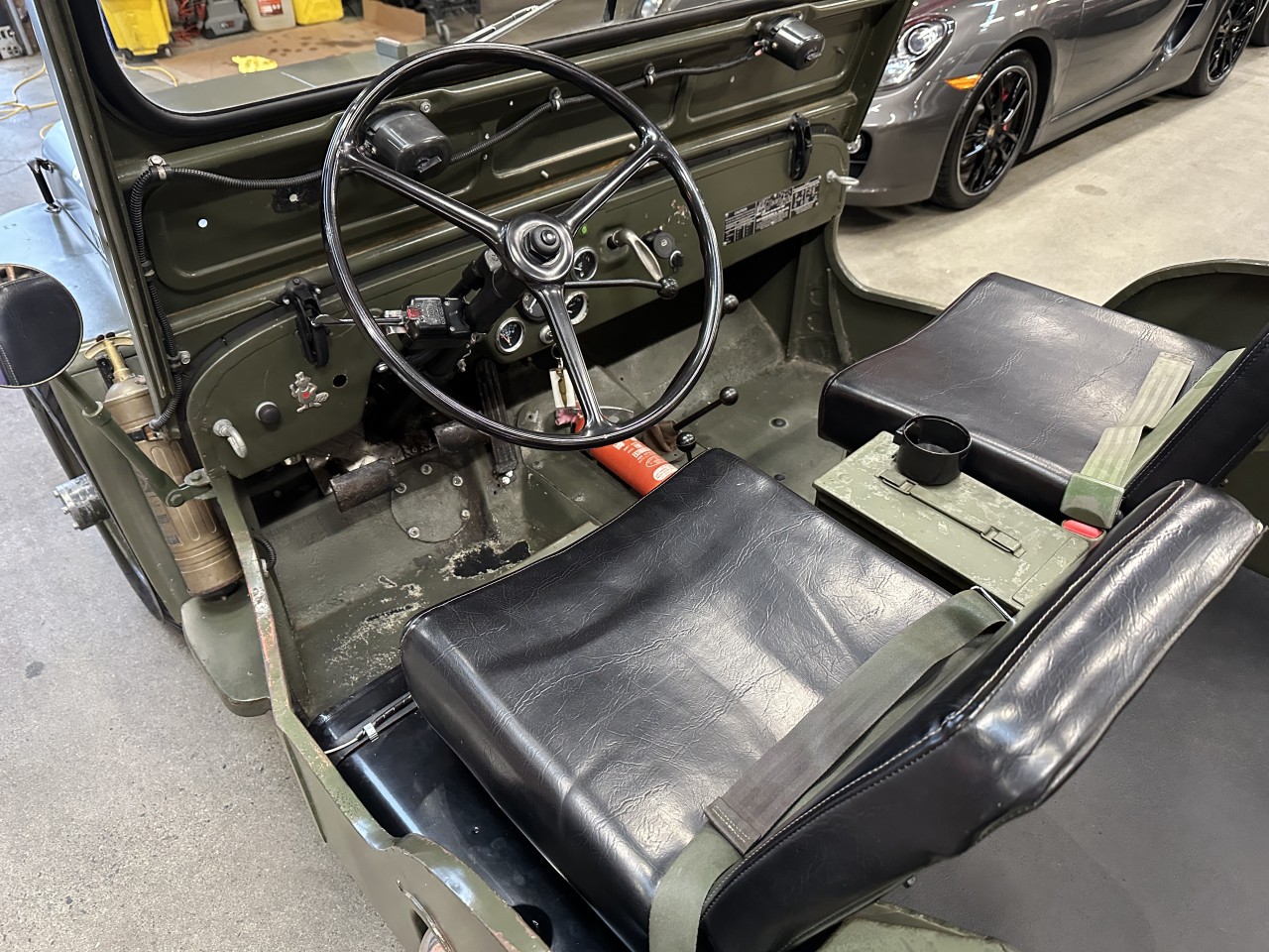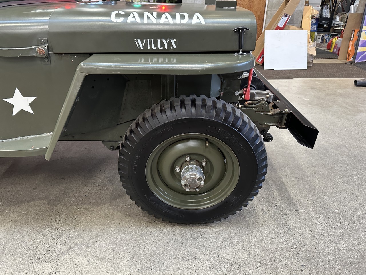 1946 Willys-Overland CJ-2A. 52,200 Miles Shown (5 Digit ODO). Featuring Twin front seats, Windshield wipers, Custom winch mount front bumper, Tulsa 8000LB winch, Dual tail lights, Turn signals, Folding front windshield, Single side mirror, Drop-down tailgate, Dual range transfer case, Green 16" wheels. 135Ci L-head inline 4 cylinder mated to a 3 on the tree manual transmission rated by the factory new at 60hp / 106lb-ft.