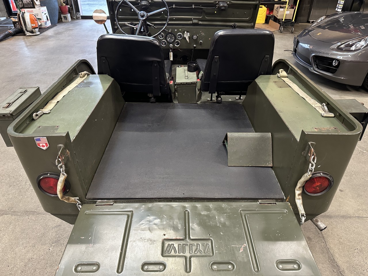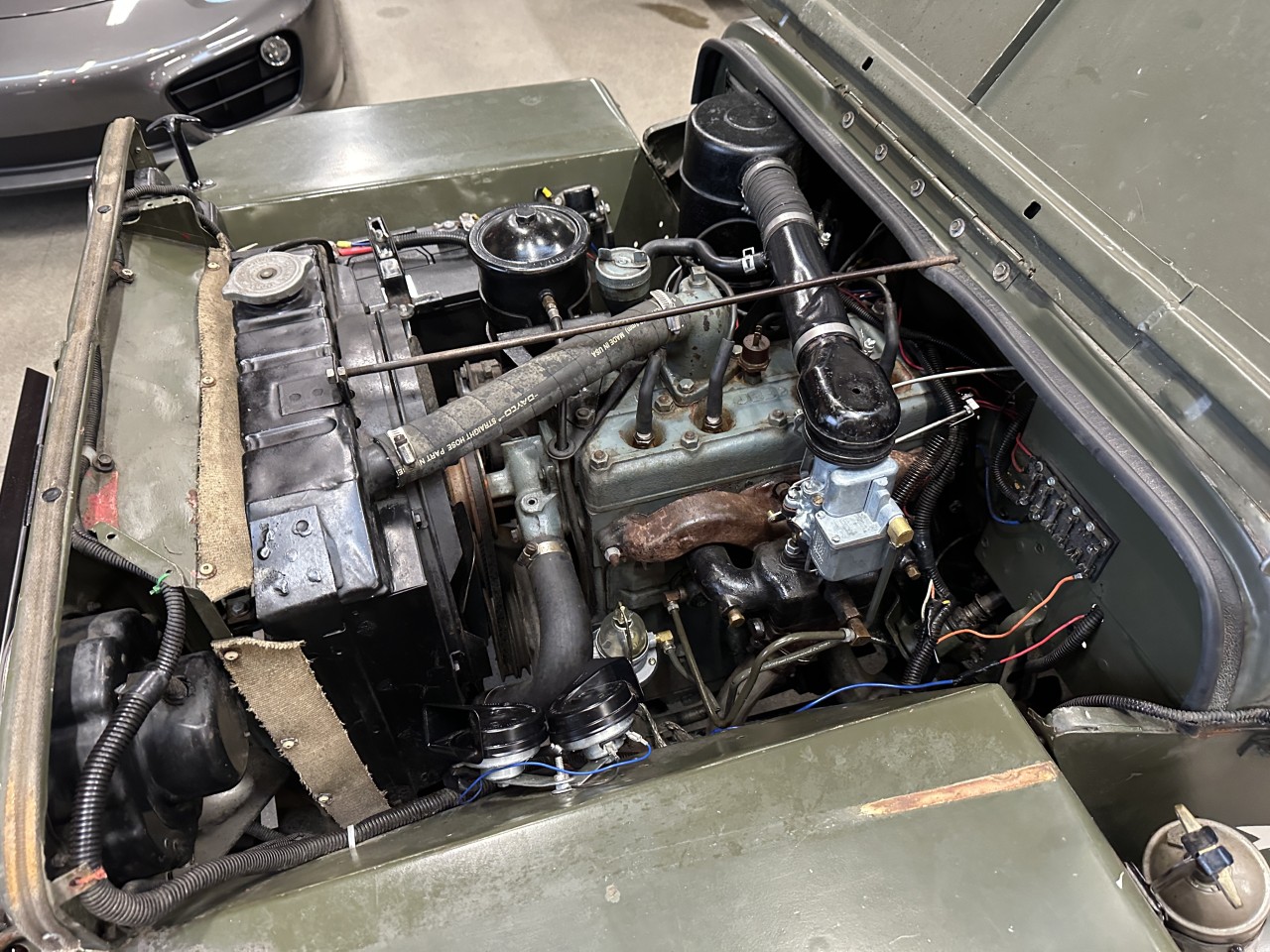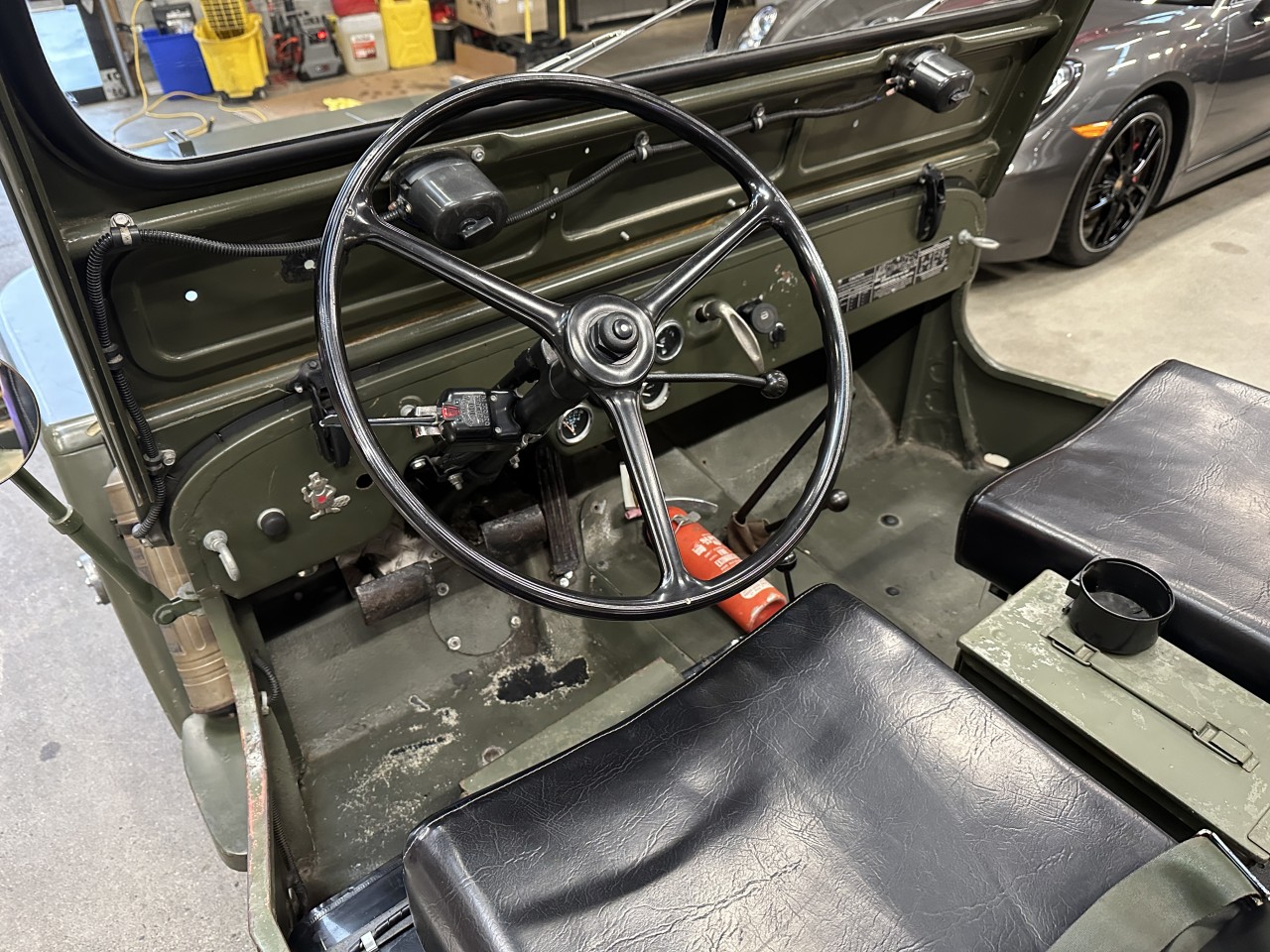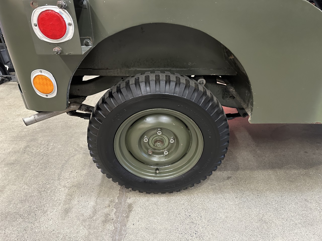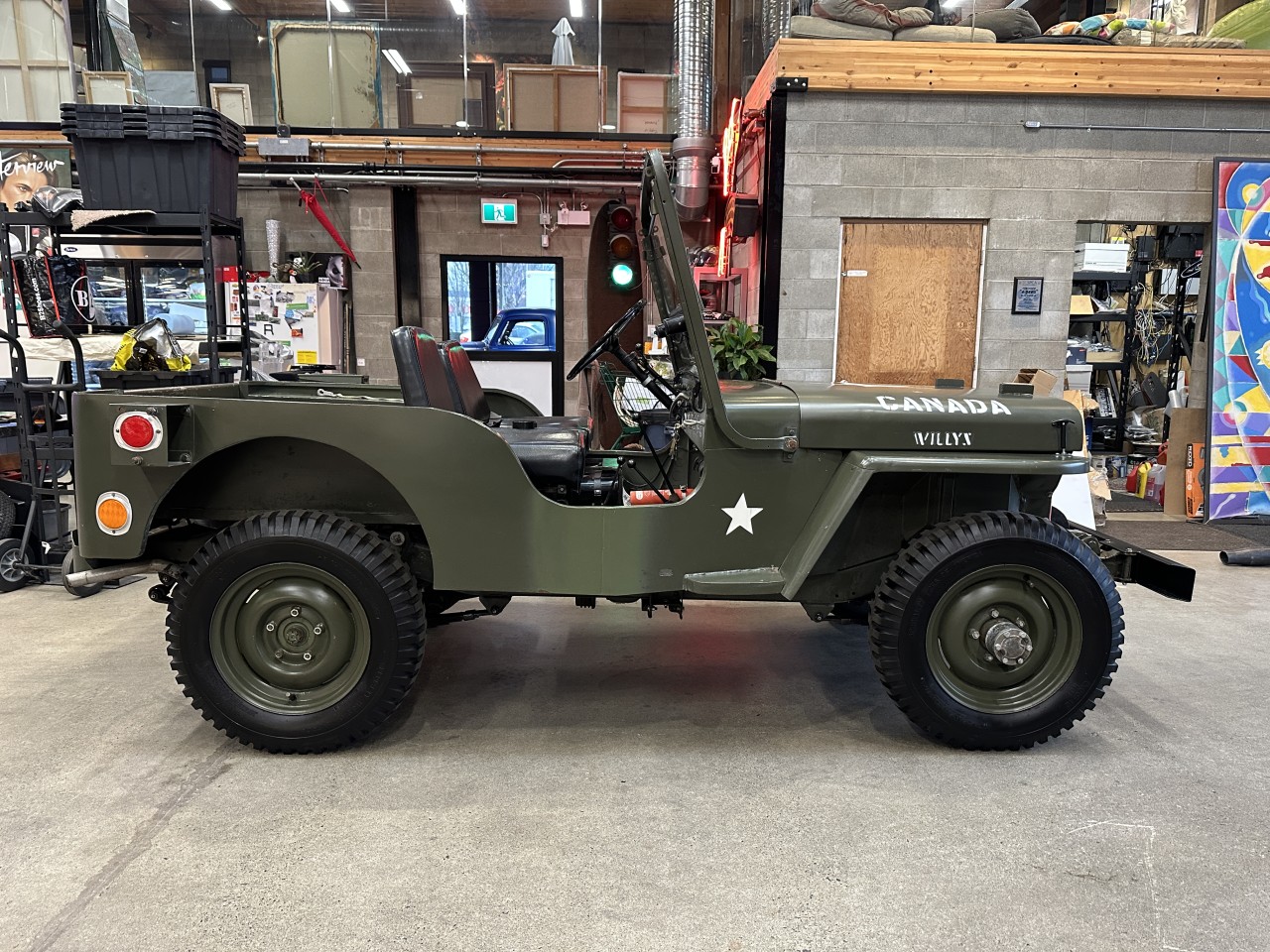 1946 Willys-Overland CJ-2A. 52,200 Miles Shown (5 Digit ODO). Featuring Twin front seats, Windshield wipers, Custom winch mount front bumper, Tulsa 8000LB winch, Dual tail lights, Turn signals, Folding front windshield, Single side mirror, Drop-down tailgate, Dual range transfer case, Green 16" wheels. 135Ci L-head inline 4 cylinder mated to a 3 on the tree manual transmission rated by the factory new at 60hp / 106lb-ft.