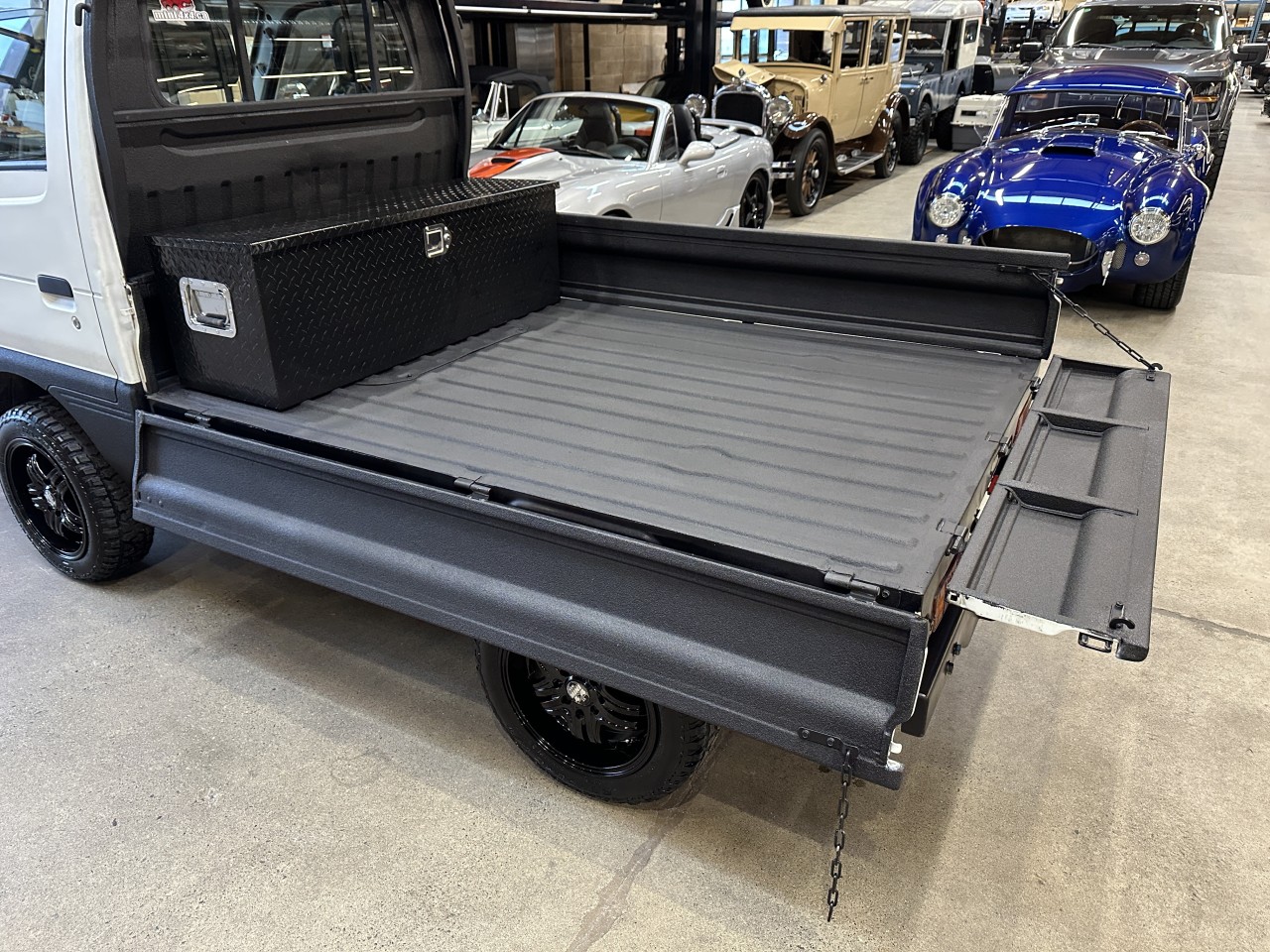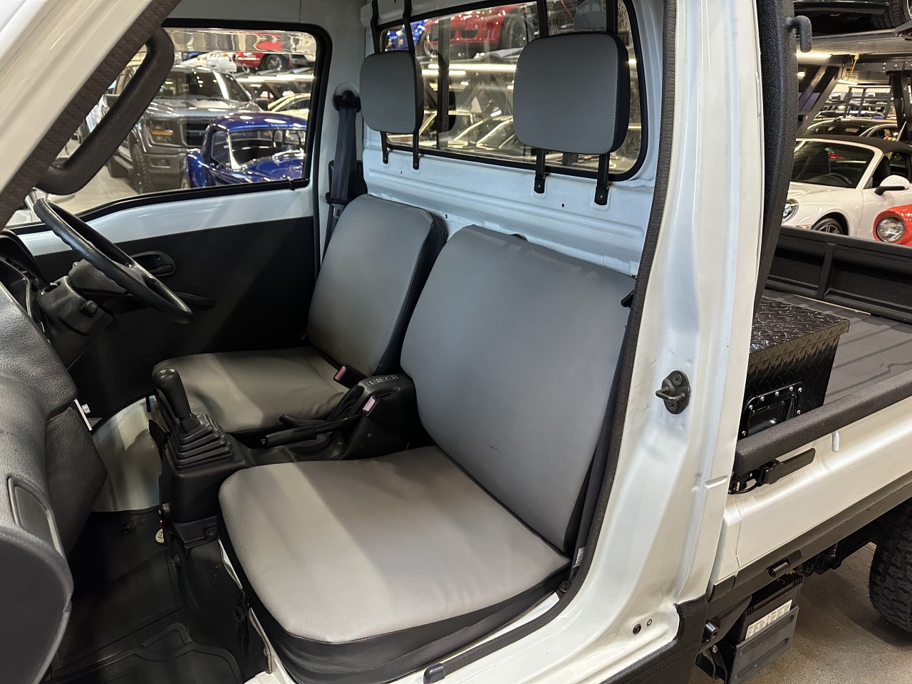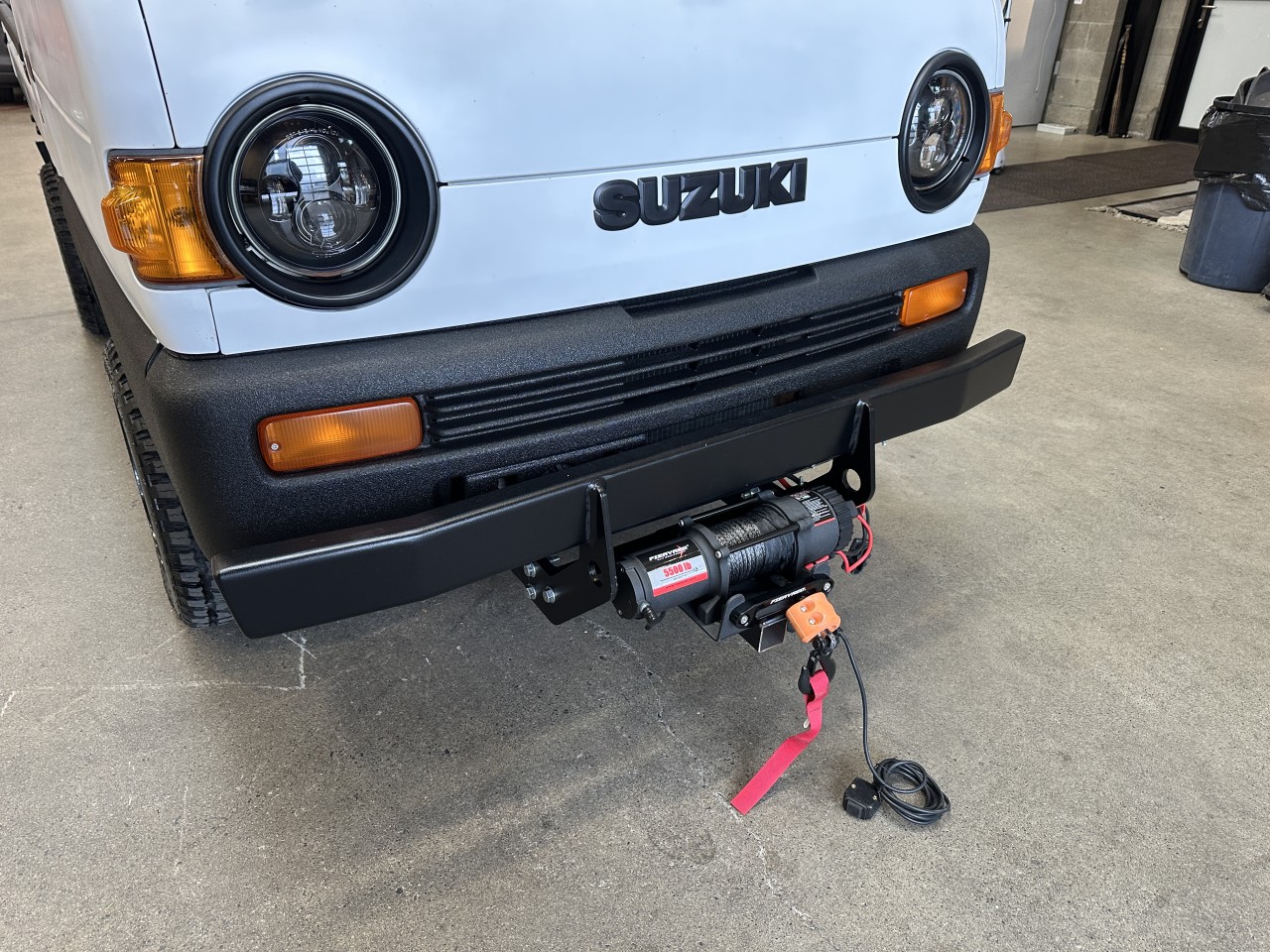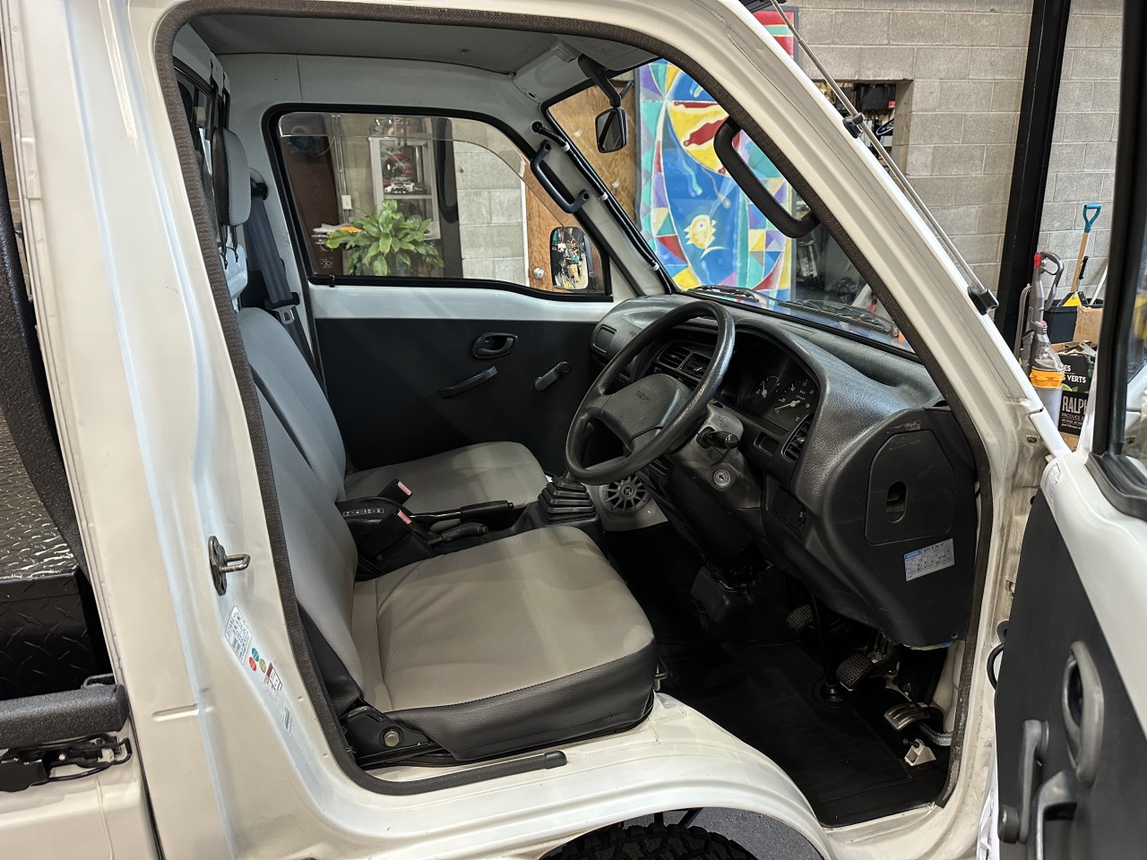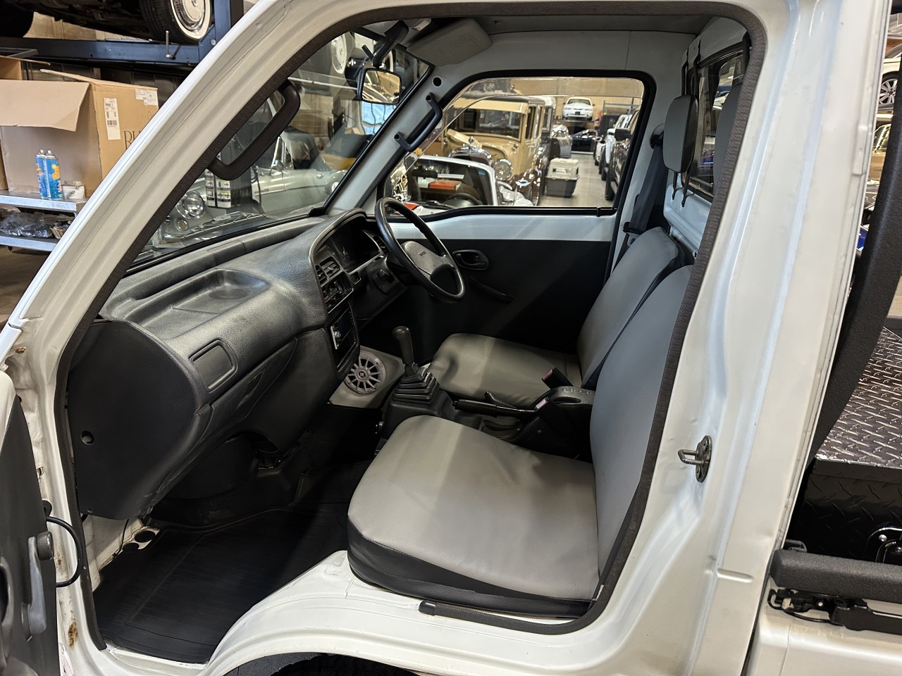 1996 Suzuki Carry 660 4WD Right Hand Drive. Well equipped with Grey / black vinyl seats, Touch screen head unit, Bluetooth, Bluetooth audio, Apple CarPlay, Android Auto, Boss component speakers, Compustar alarm system, Back up camera, Roof rack, Box liner on box / lower body panels / back of cab / rear rack / cargo carrier rack, Black checker plate storage box, Rear LED spot lights, LED Front light bar, LED Headlights, Front and rear steel bumpers with hitch mount for winch, Fieryred 5500lb winch, Suspension lift, 14" Black Mini4x4.ca wheels. 657cc Carbureted 3 cylinder mated to a 4 speed manual transmission rated by the factory at 42hp / 42lb-ft. Well maintained and just serviced. Leasing and financing available. All trades accepted.