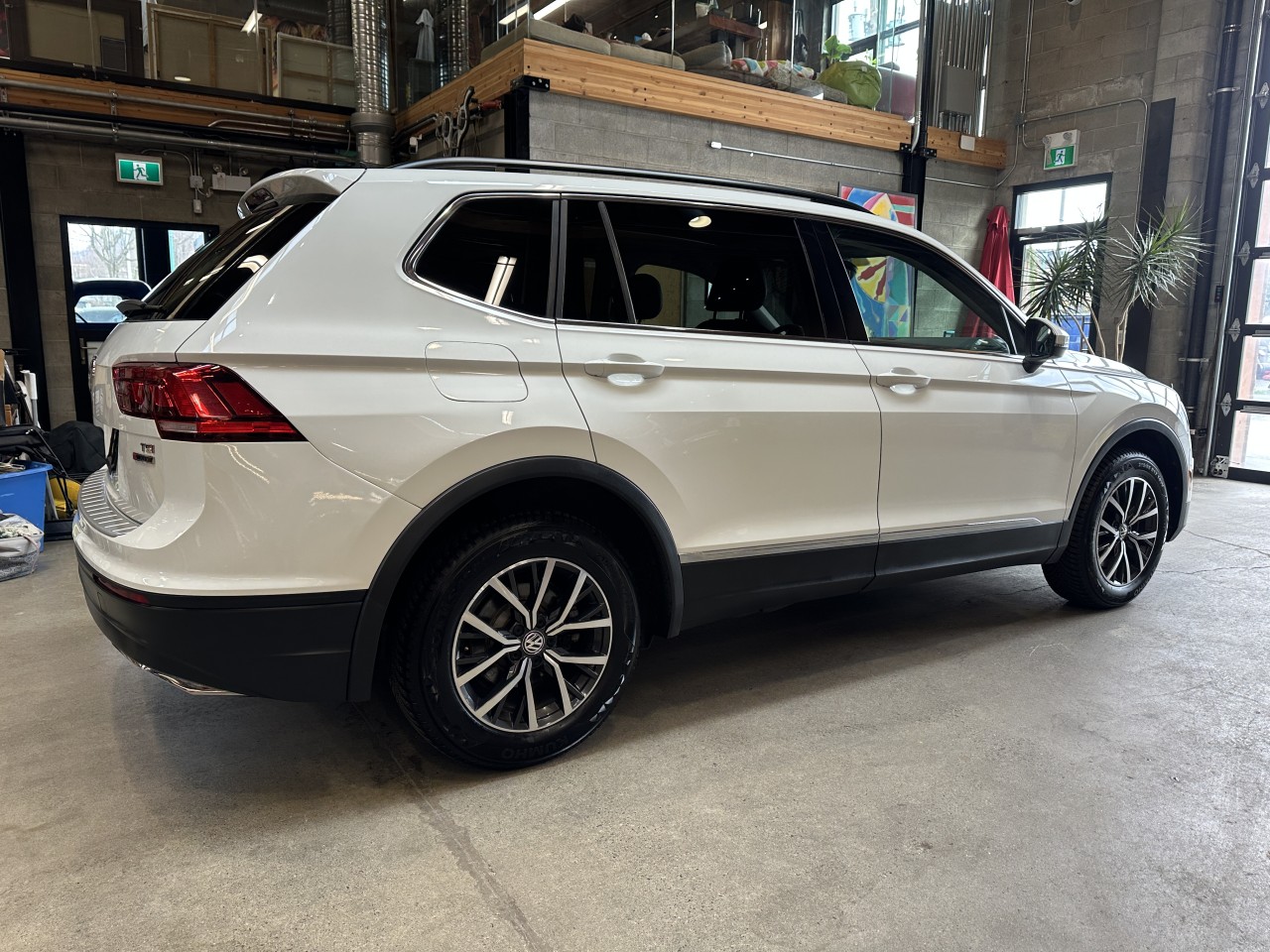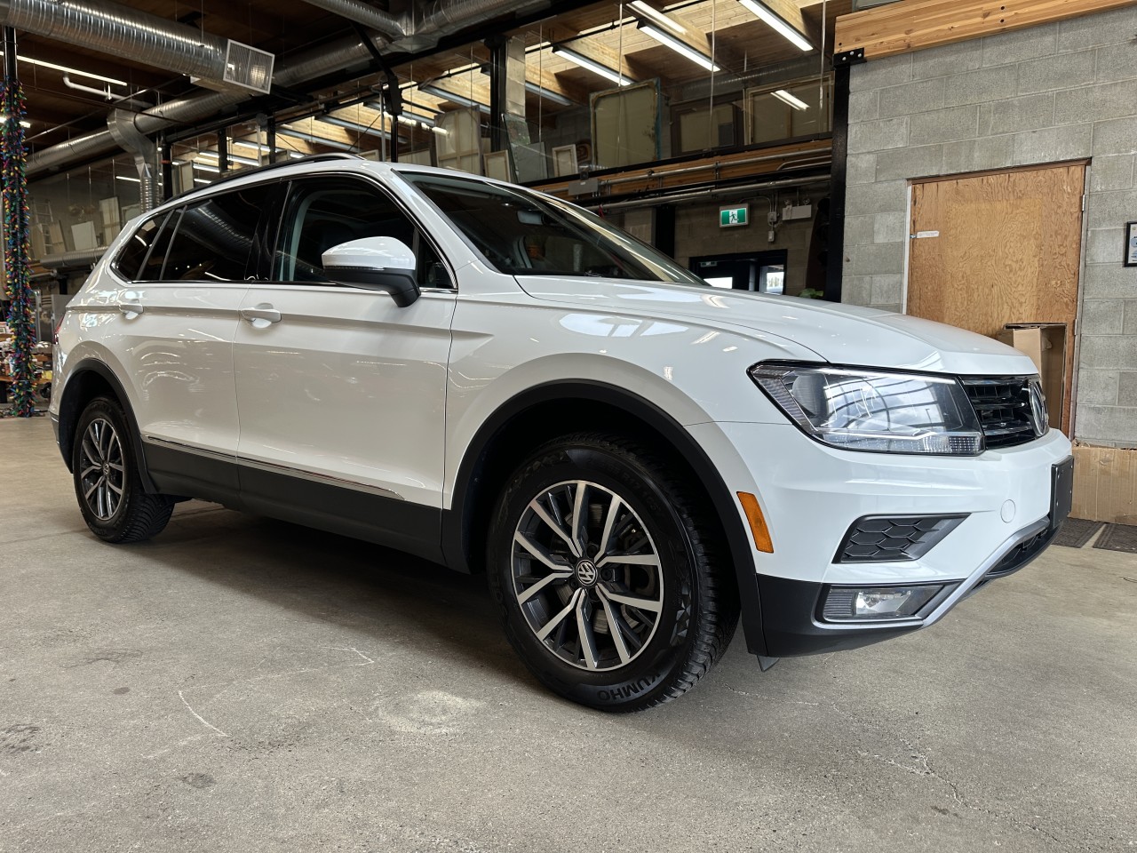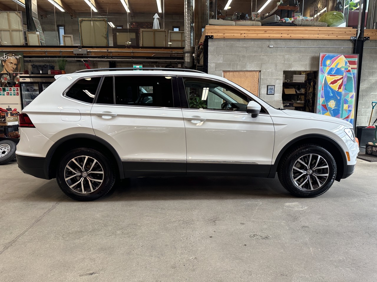 A local Volkswagen Tiguan Comfortline 4Motion 7 Passenger. Well equipped with Discover Media Navigation Package, Third Row Package and Panoramic Power Sunroof. Including Heated front leatherette seats, Power driver's seat, Dual zone climate control, Navigation, Satellite radio, Aux input, Dual usb inputs, SD Card slot, Bluetooth, Bluetooth audio, Apple CarPlay, Android Auto, Steering wheel controls, Tilt / telescopic steering wheel, Power windows, Power door locks, Power mirrors, Blind spot assist, Rear traffic assist, Front assist, Cruise control, Keyless touch entry and locking, Keyless push button ignition, Drive mode select, All weather floor mats, Back up camera, LED Running lights, Fog lamps, 17" Alloy wheels. 2.0L Turbocharged inline 4 cylinder mated to a 8 speed shiftable automatic transmission rated by the factory at 184hp / 221lb-ft. A 1 year warranty is included in the purchase price of this vehicle. Well maintained and just serviced. Leasing and financing available. All trades accepted.