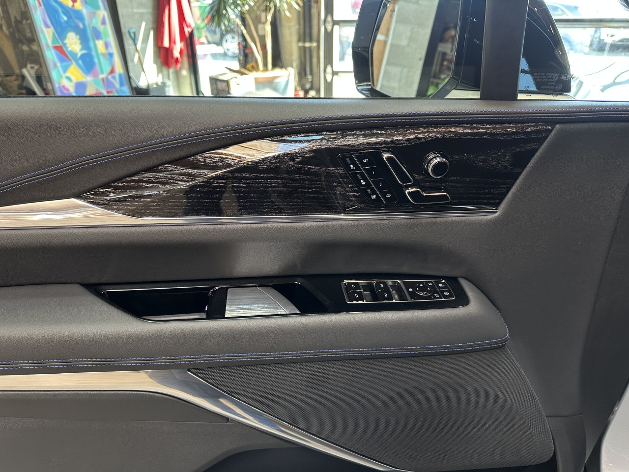 A local accident free Cadillac Escalade IQ AWD Sport 1. Well equipped with Heated and ventilated power front Inteluxe seats, Heated second row bucket seats, Fixed panoramic moonroof, 5 zone climate control, Heads up display, Navigation, Satellite radio, Usb input, Alexa, Bluetooth, Bluetooth audio, Apple CarPlay, Android Auto, Wifi hotspot, App suite, Steering wheel controls, Heated steering wheel, Power tilt / telescopic steering wheel, Pillar-to-pillar 55" LED curved display, Power windows, Power door locks, Power folding mirrors, Blind spot monitoring, Lane assistance, Enhanced automatic emergency braking, Pedestrian braking, Forward collision alert, Lane change assist, Rear cross traffic brake, Super cruise, Rear wheel steering, Arrival mode, Dual wireless phone chargers, Drive mode select, Wood trim, Power folding second and third row seats, Power tailgate, Power front trunk, 360 Degree cameras and parking sensors, Auto park assist, Trailer hitch, Running boards, Black roof, LED Headlights, Height adjustable air suspension, 24" 7-Spoke alloy with diamond cut faces. Front & Rear PMSM electric motors mated to a 1 speed automatic transmission rated at 750p / 785lb-ft. Balance of full factory warranty. Well maintained and just serviced. Leasing and financing available. All trades accepted.