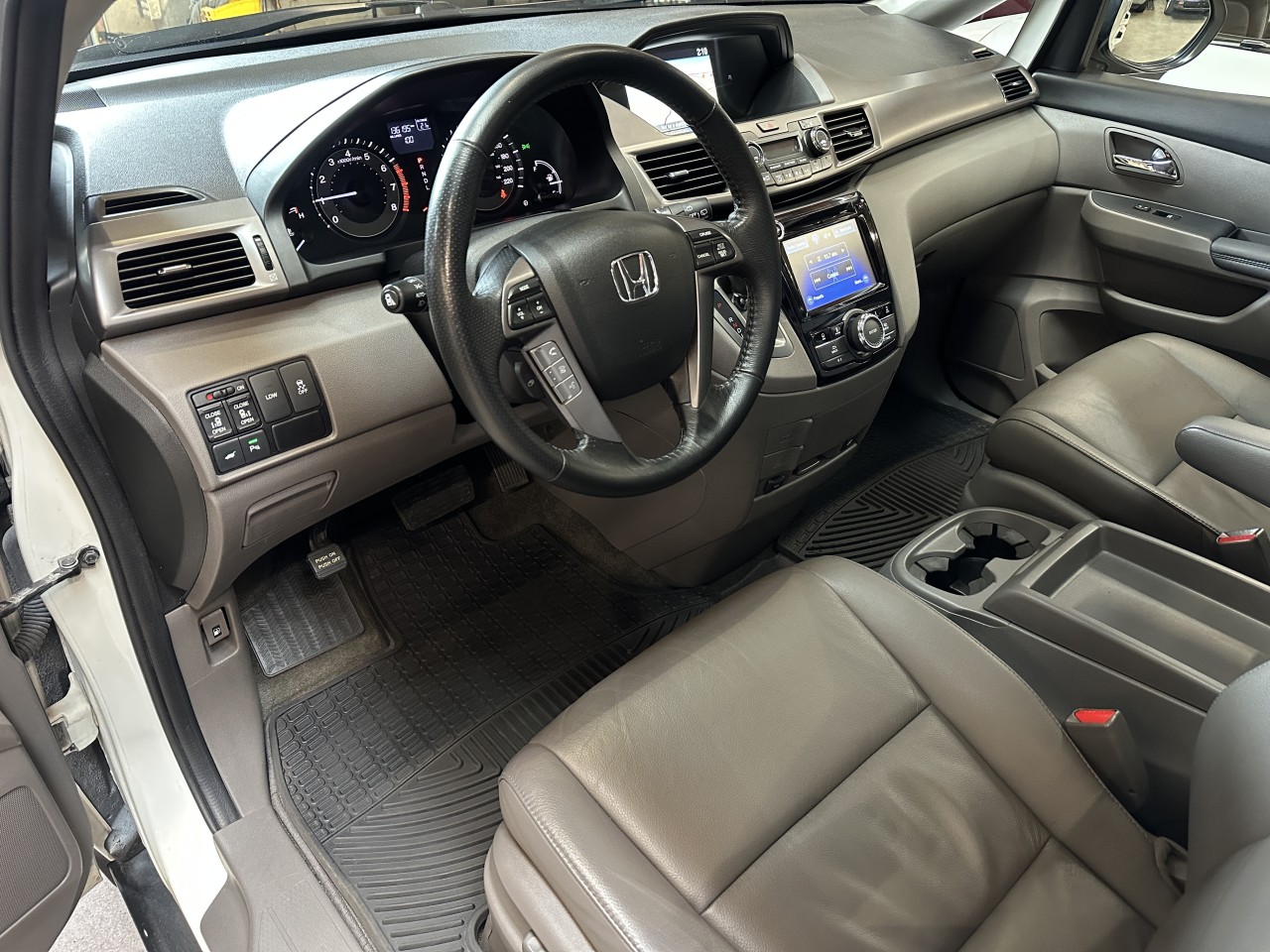 A local Honda Odyssey Odyssey EX-L w/Navi. Well equipped with Heated power front leather seats, Power tilt moonroof, Three zone climate control, Navigation, Satellite radio, Aux input, Usb input, Ipod input, Hard drive data, Bluetooth, Bluetooth audio, Steering wheel controls, Tilt / telescopic steering wheel, Power windows, Power door locks, Power mirrors, Cruise control, Keyless touch entry and locking, Keyless push button ignition, Power sliding side doors, Rear side window sunshades, Power tailgate, Back up camera, Front and rear parking sensors, Projector headlamps, 17" Alloy wheels. 3.5L V6 mated to a 6 speed automatic transmission rated by the factory at 248hp / 250lb-ft. A 1 year warranty is included in the purchase price of this vehicle. Well maintained and just serviced. Leasing and financing available. All trades accepted.